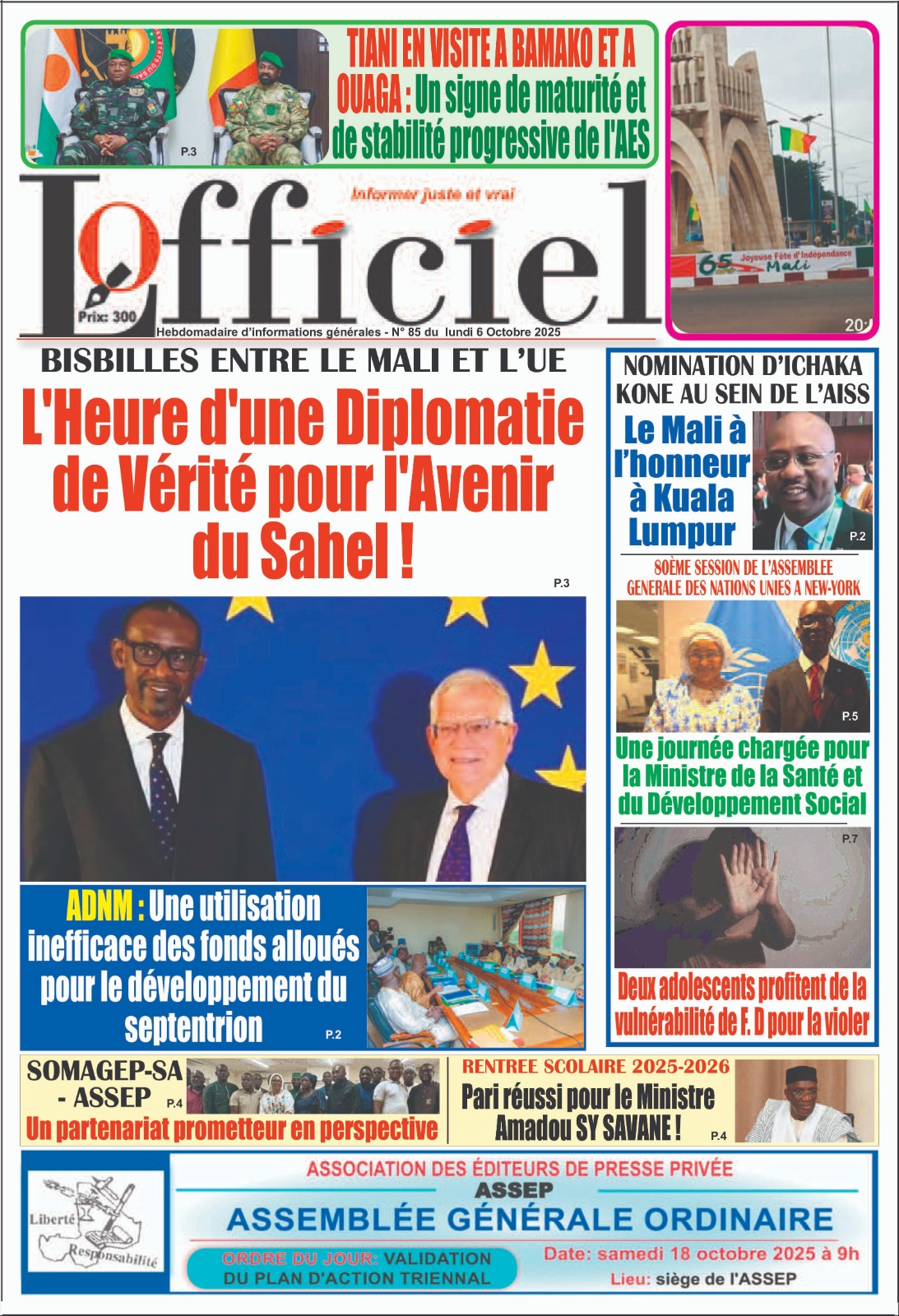 Photos. La revue de presse du Mali du lundi 06 octobre 2025