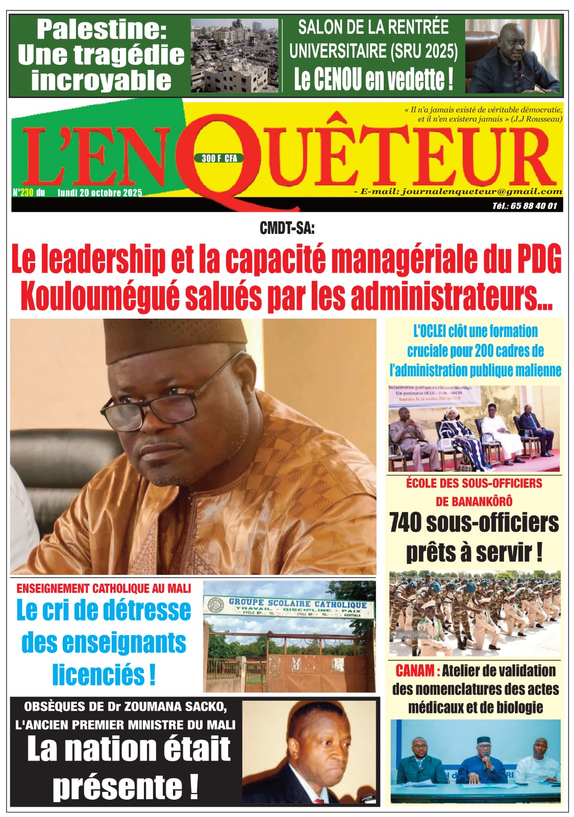 Photos. La revue de presse du Mali du lundi 20 octobre 2025