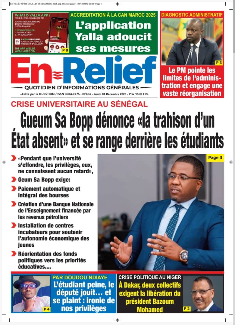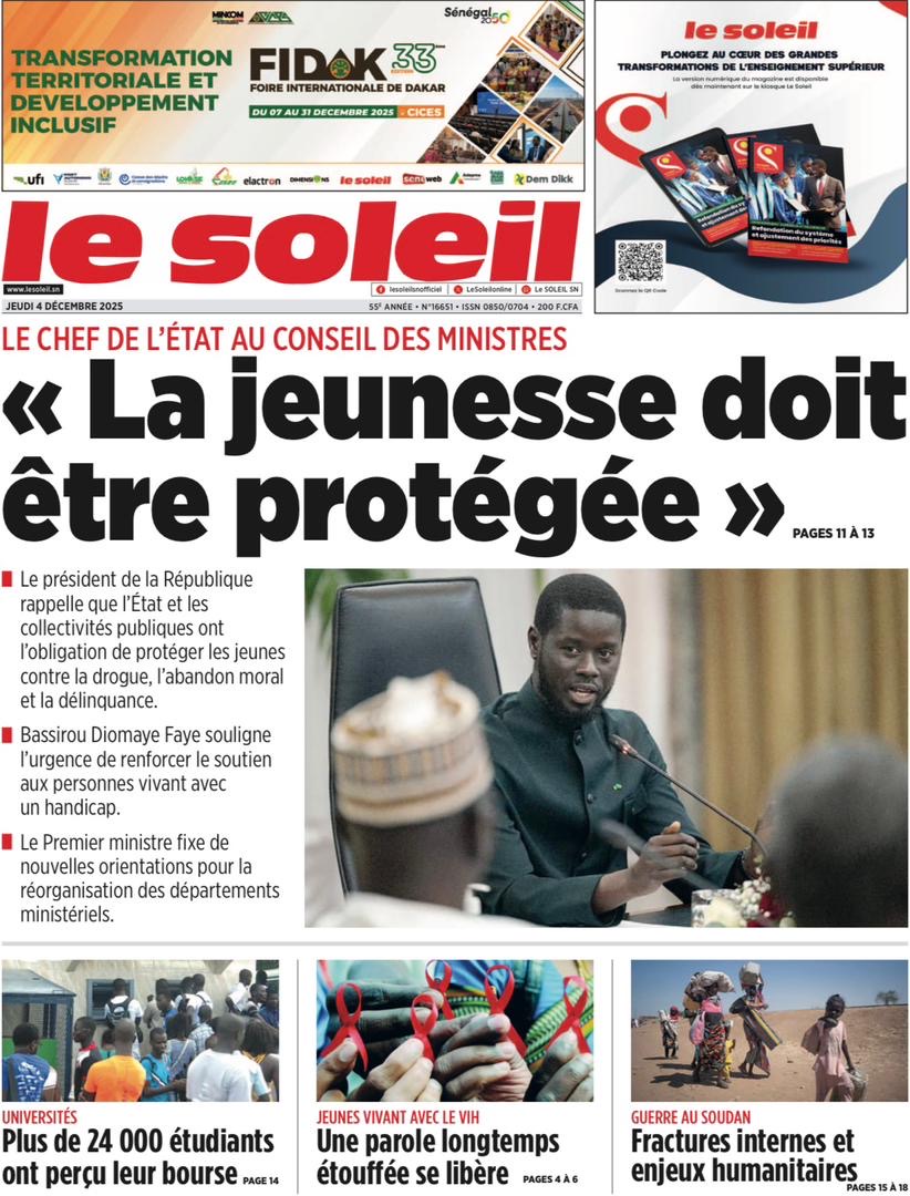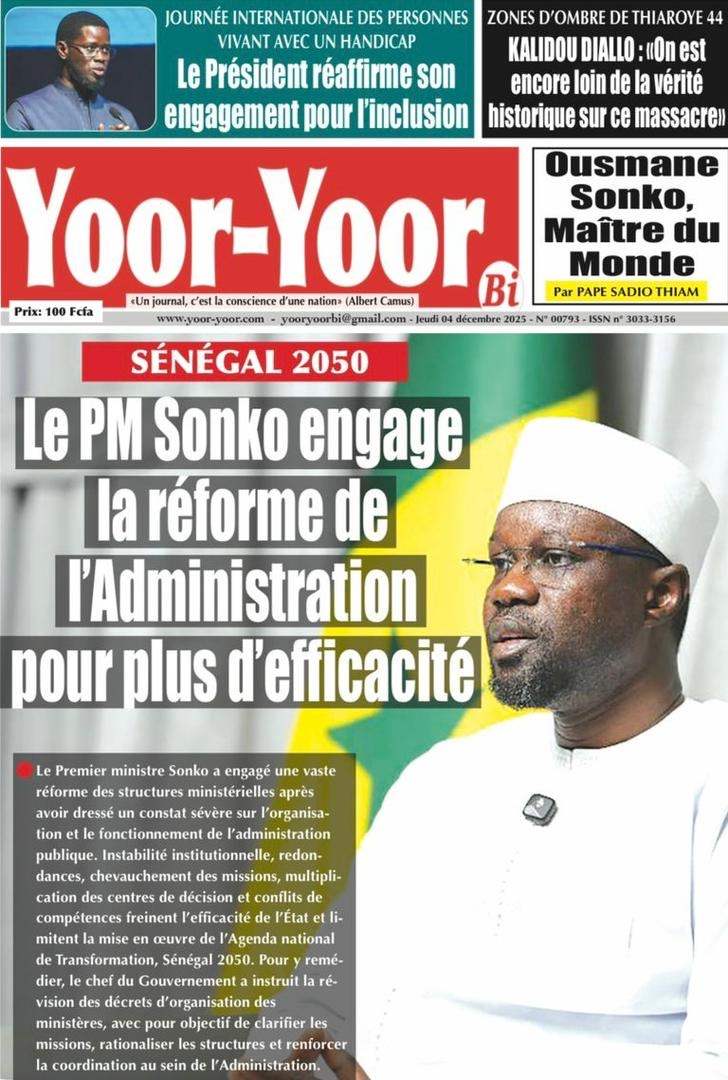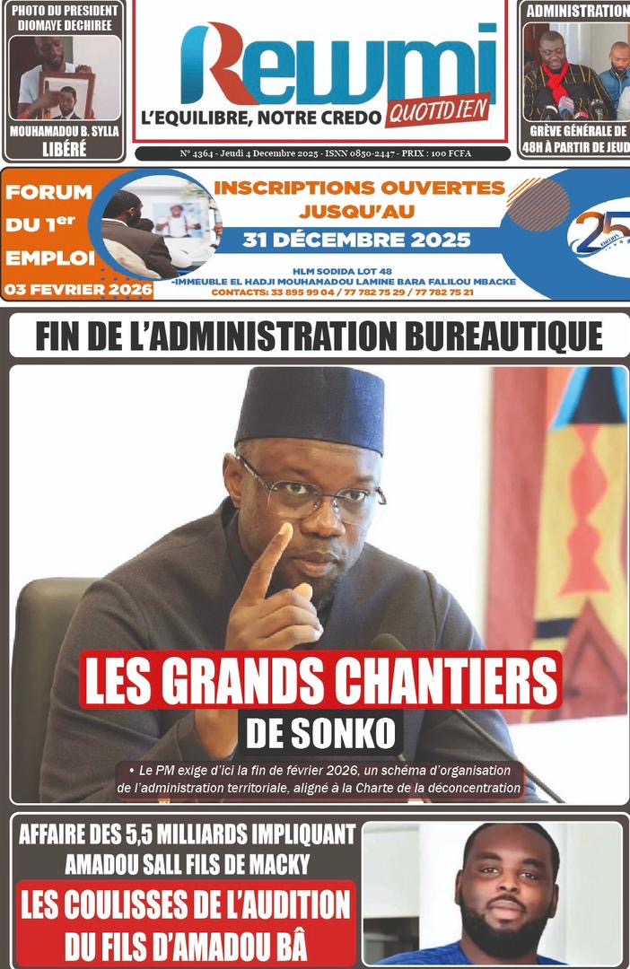 La revue de presse sénégalaise du jeudi 04 décembre 2025