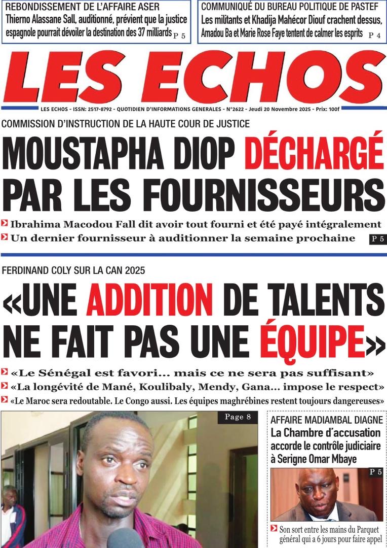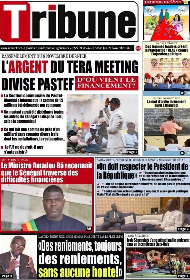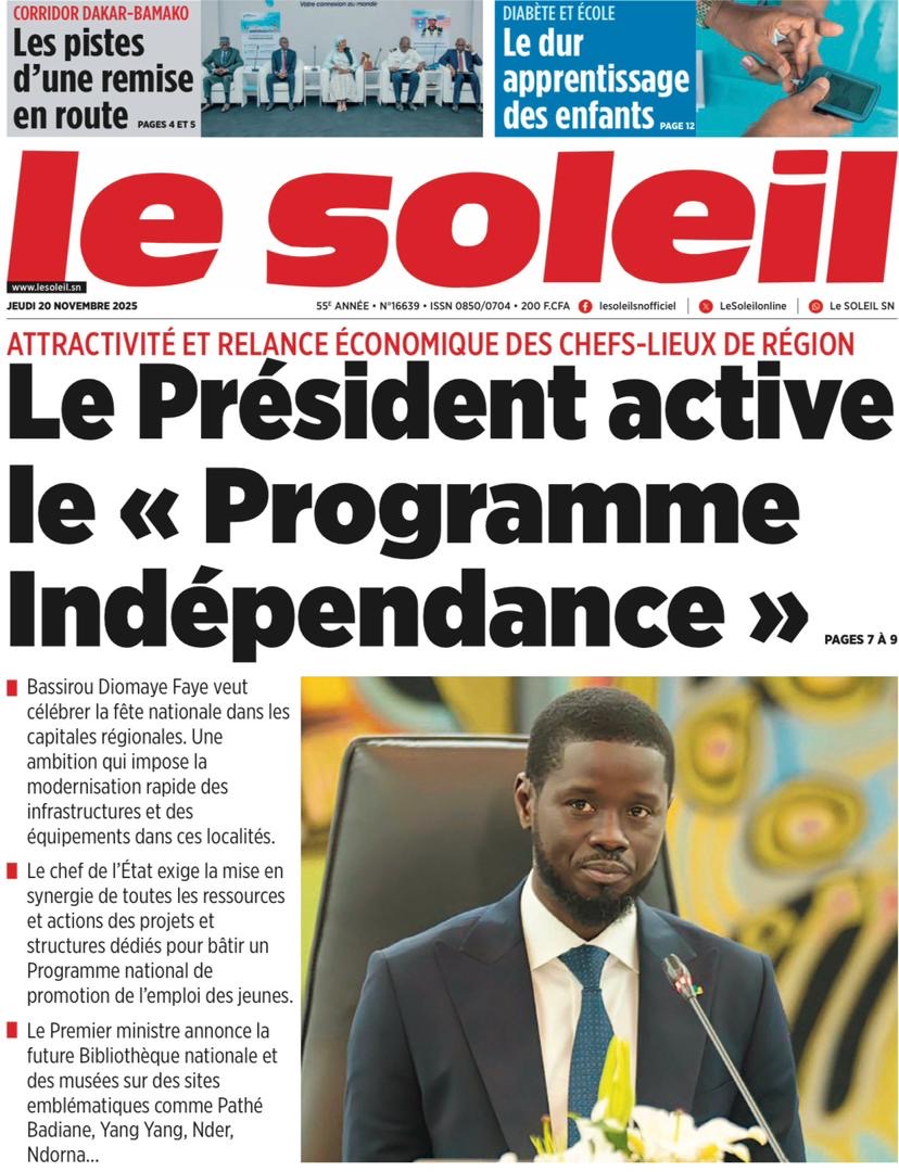 La revue de presse sénégalaise du jeudi 20 novembre 2025
