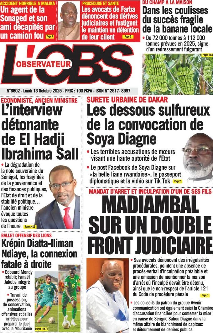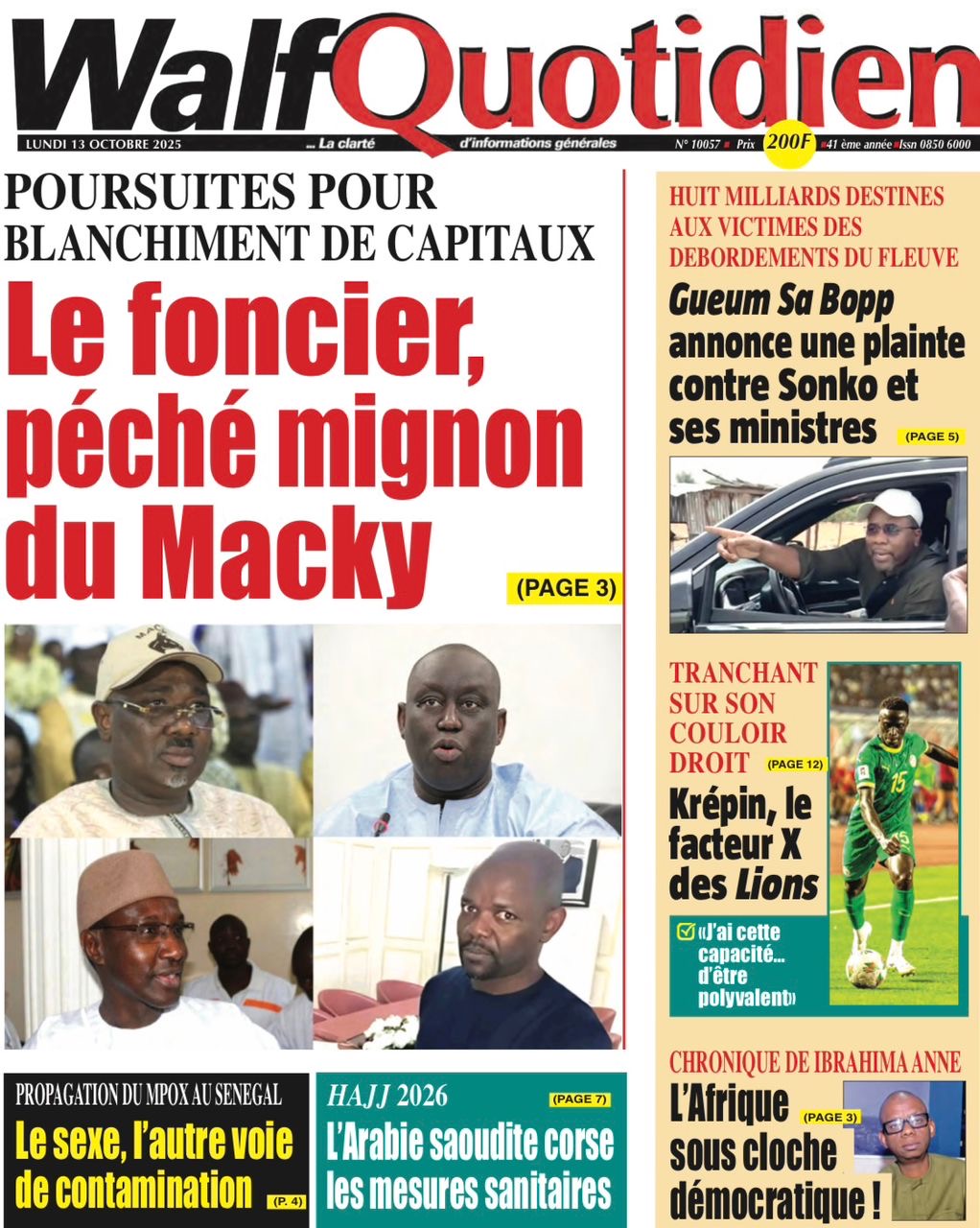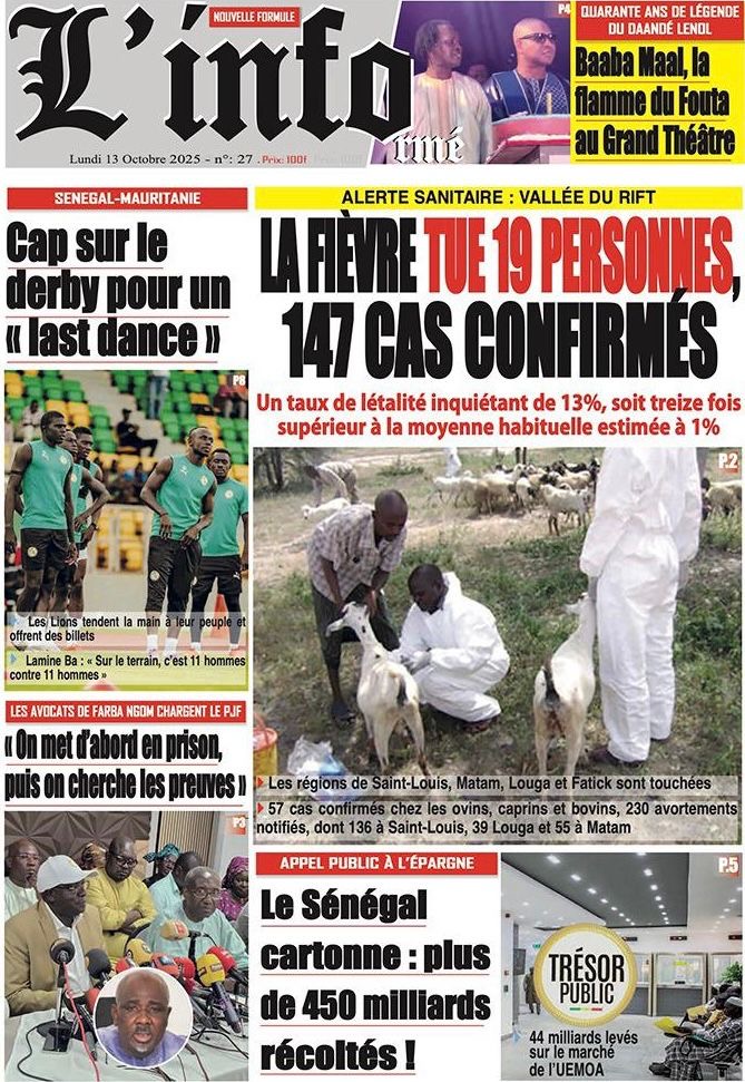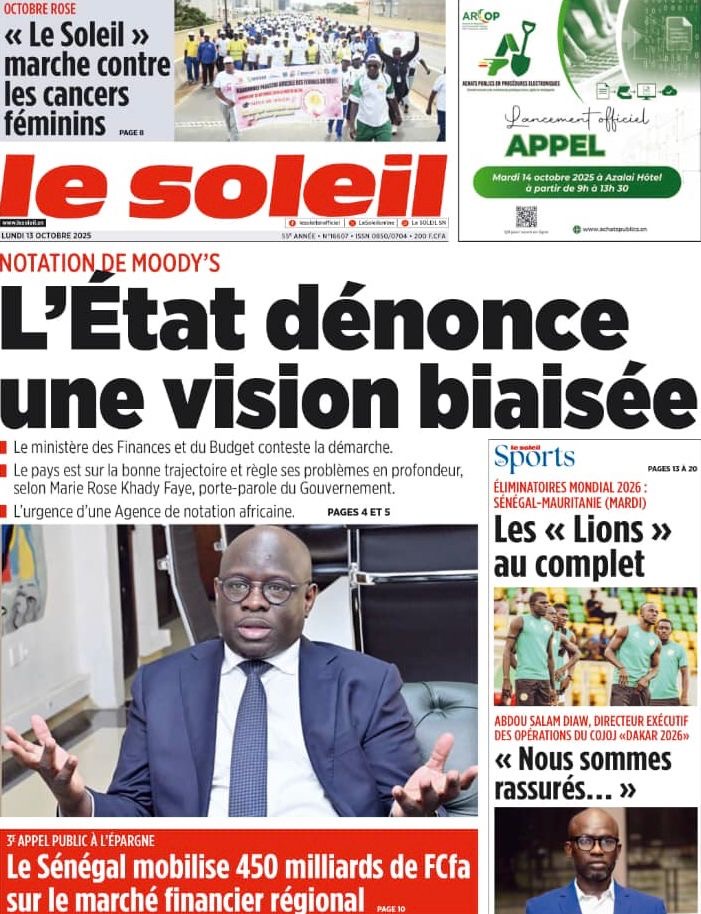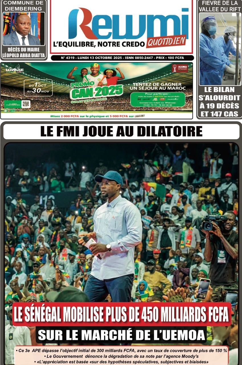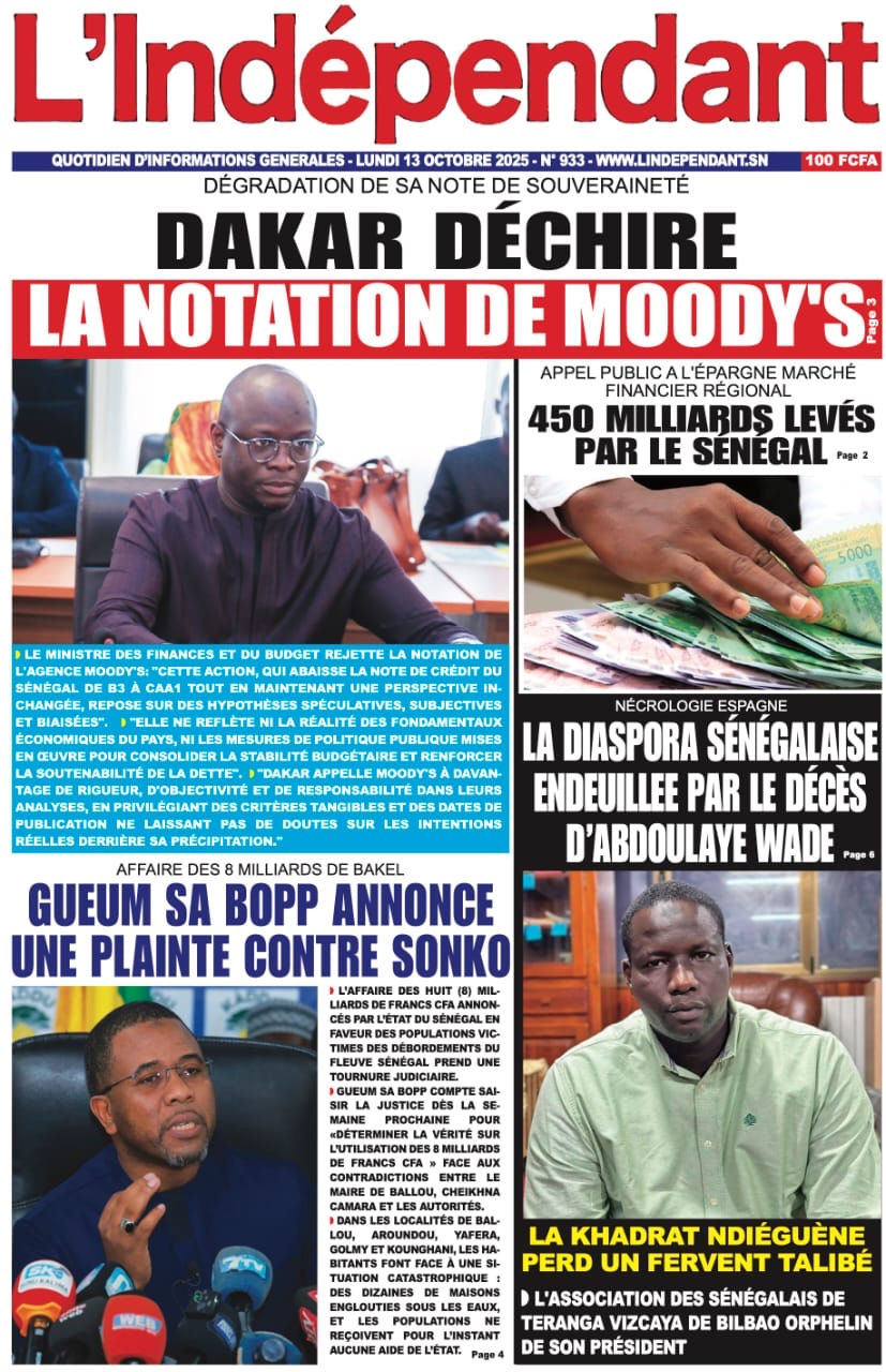 La revue de presse sénégalaise du lundi 13 octobre 2025