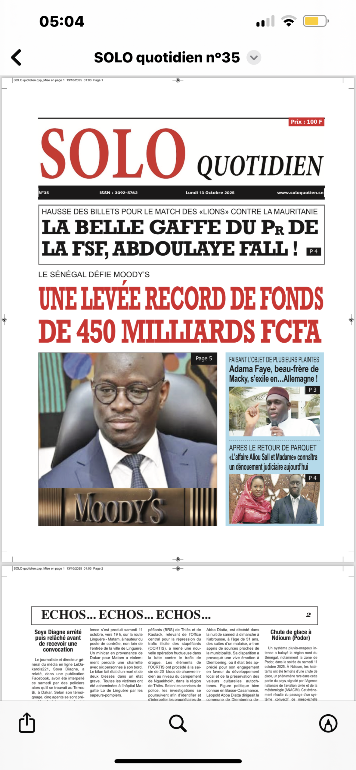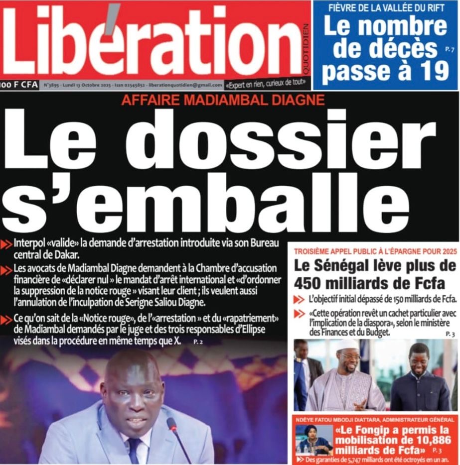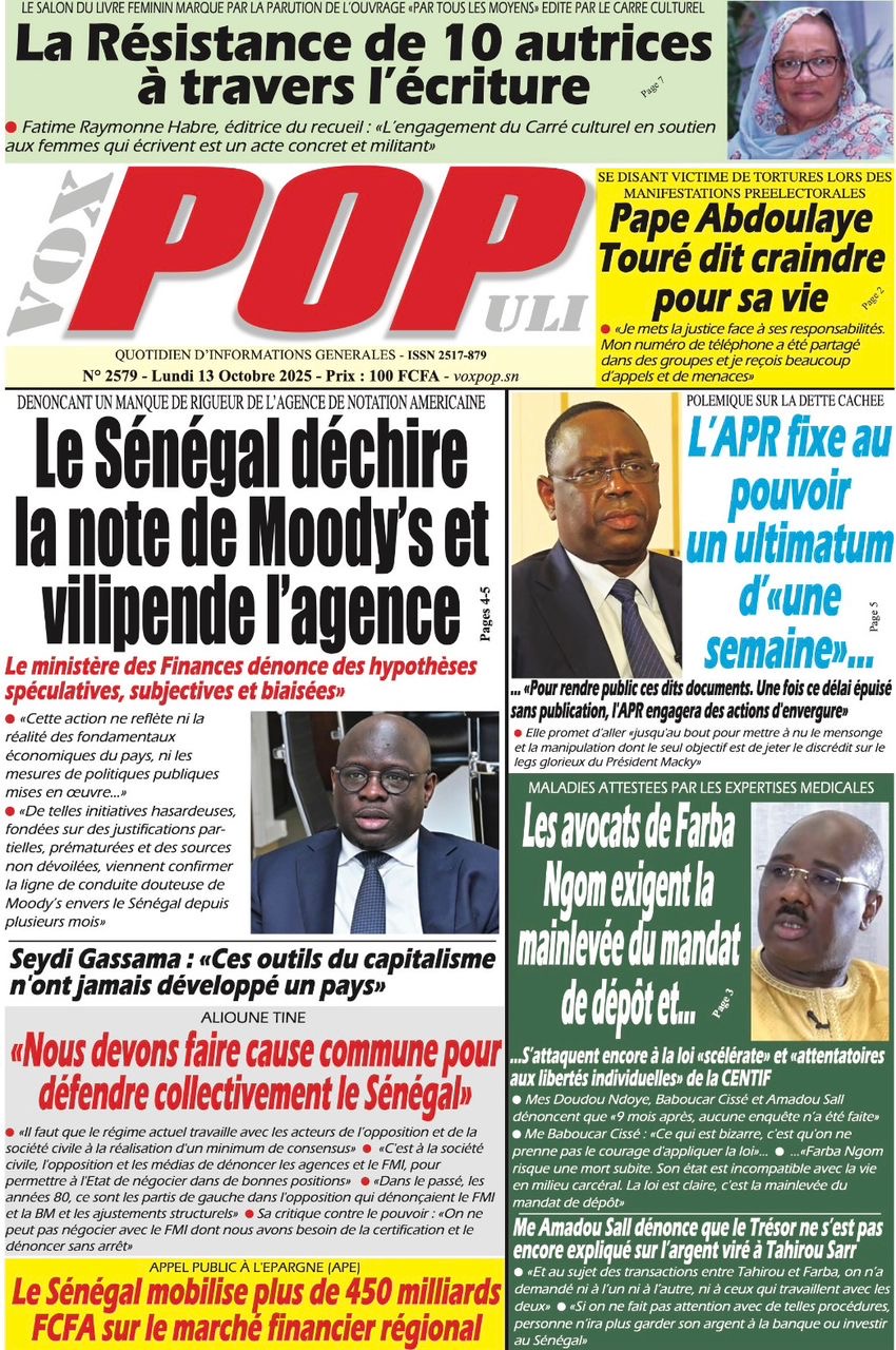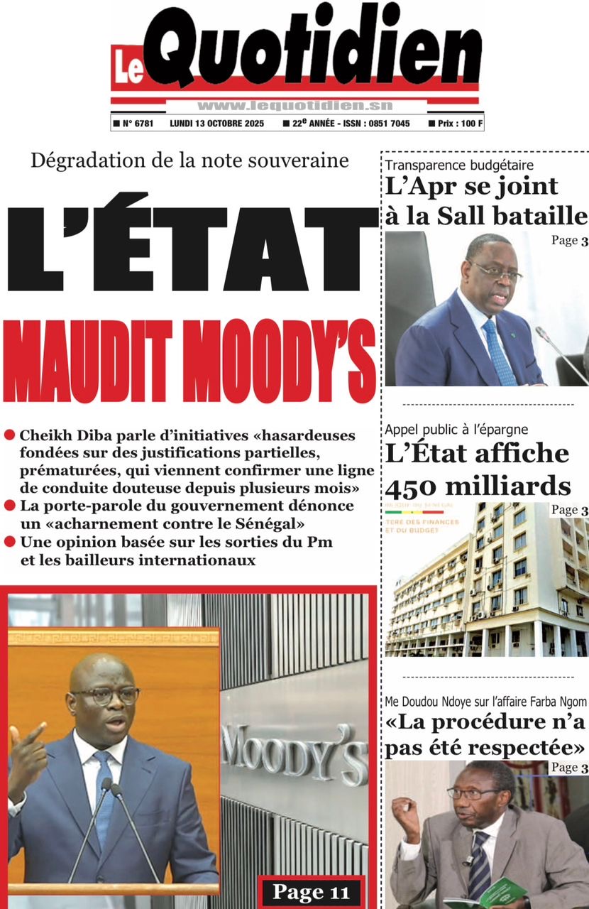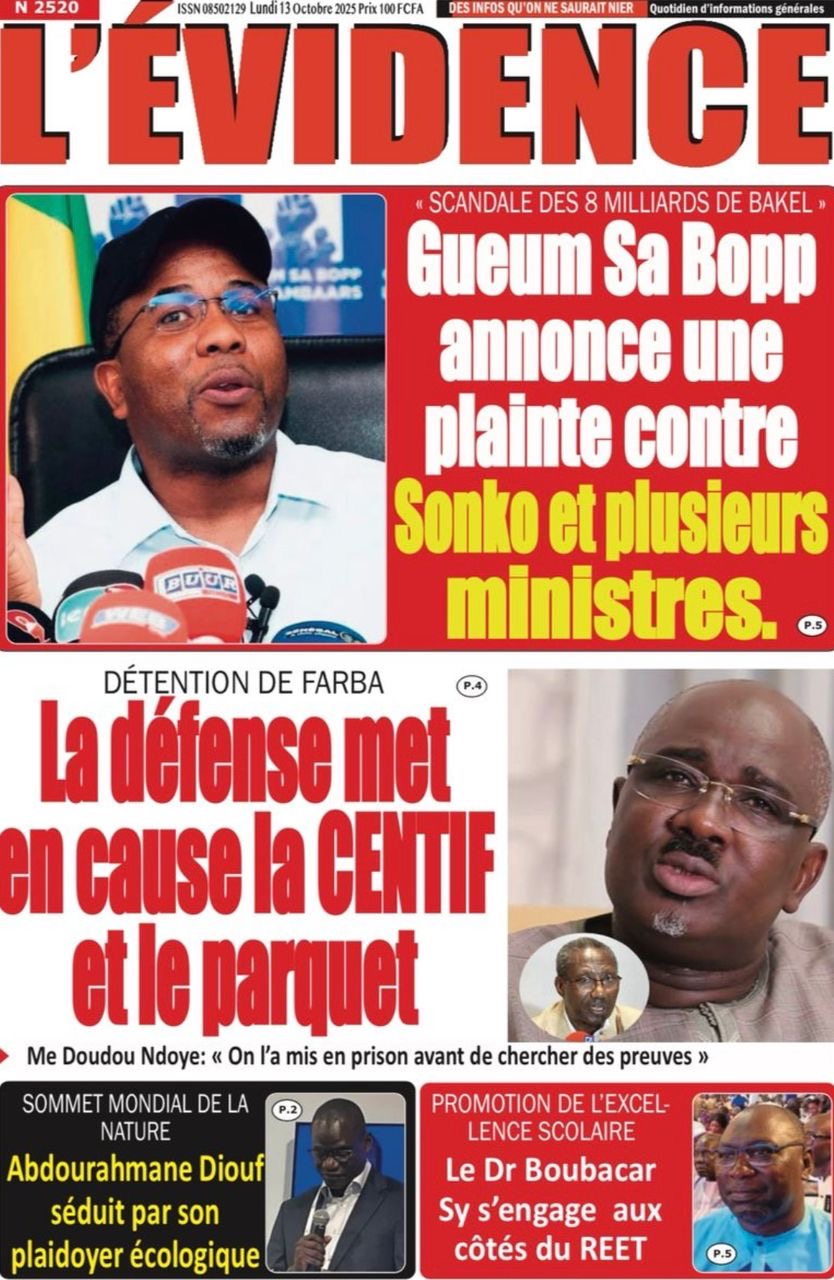 La revue de presse sénégalaise du lundi 13 octobre 2025