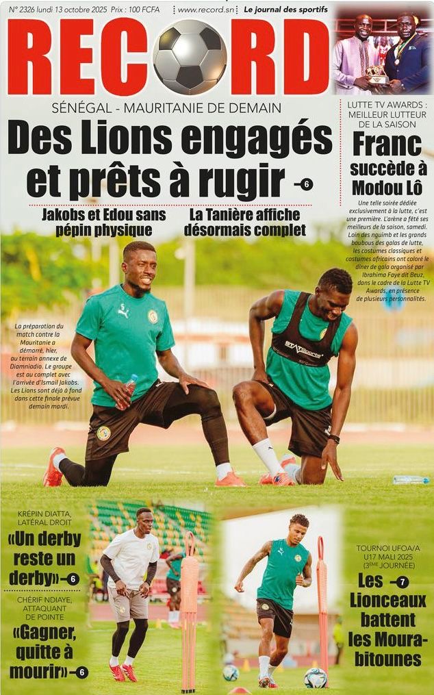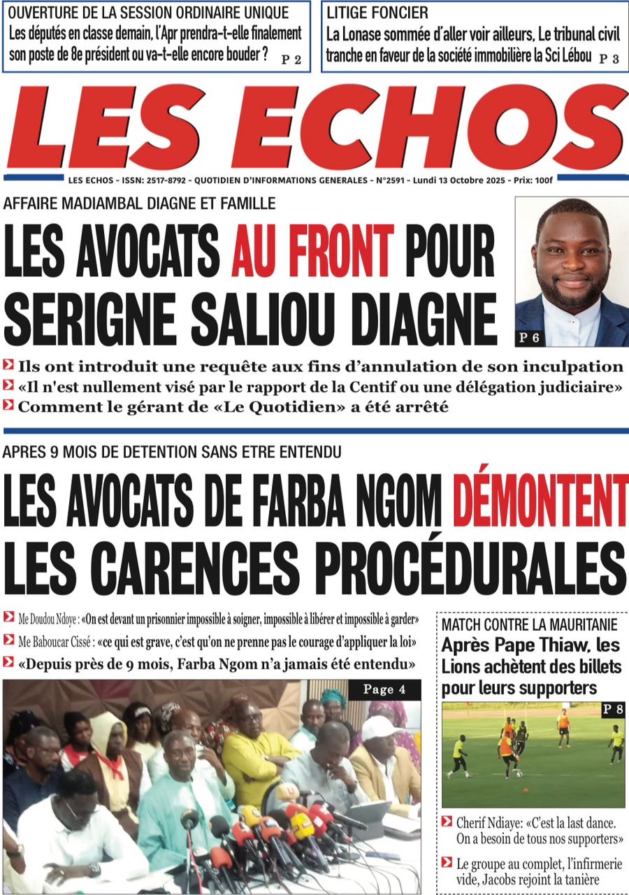 Photos. La revue de presse sénégalaise du lundi 13 octobre 2025