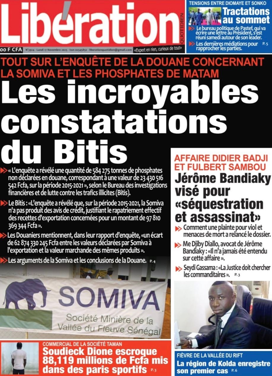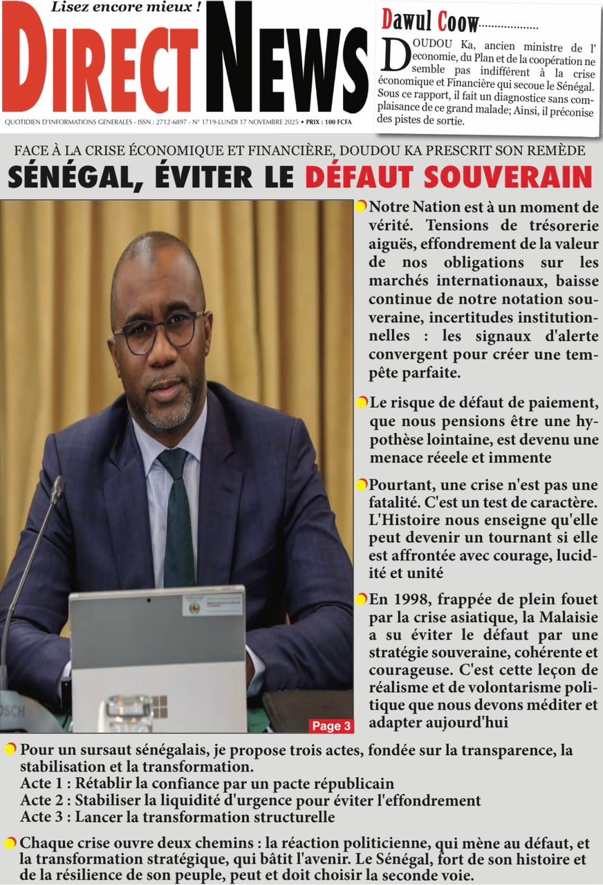 La revue de presse sénégalaise du lundi 17 novembre 2025