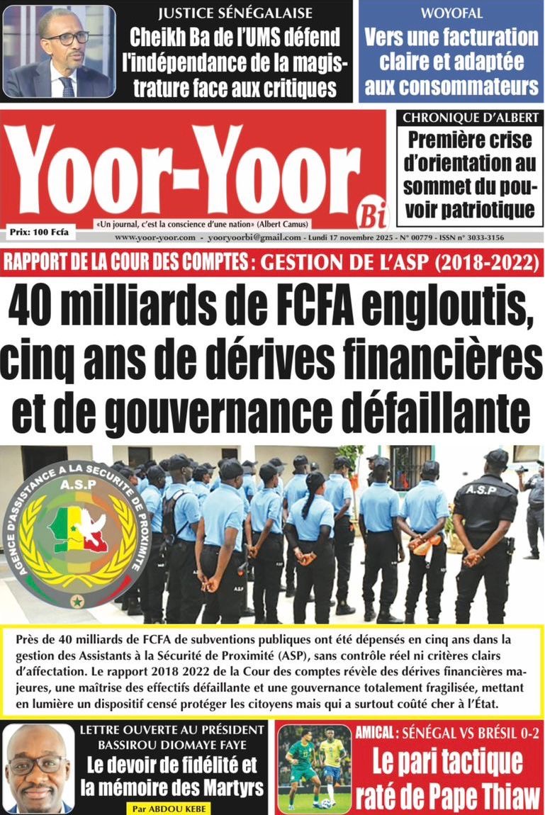 Photos. La revue de presse sénégalaise du lundi 17 novembre 2025