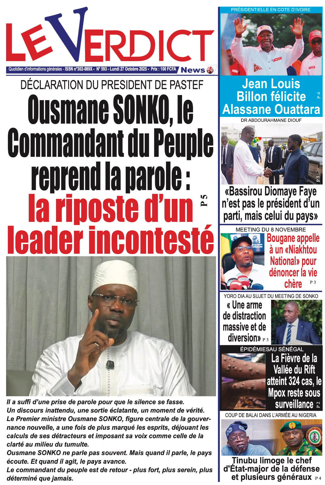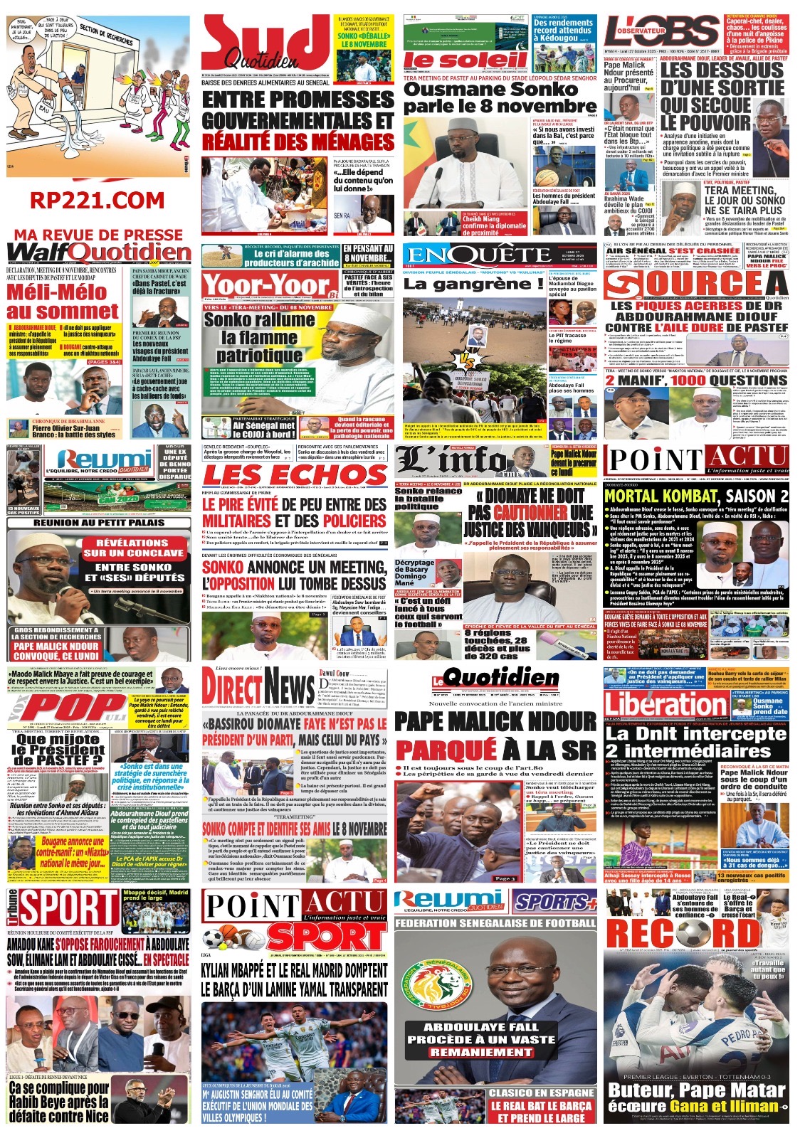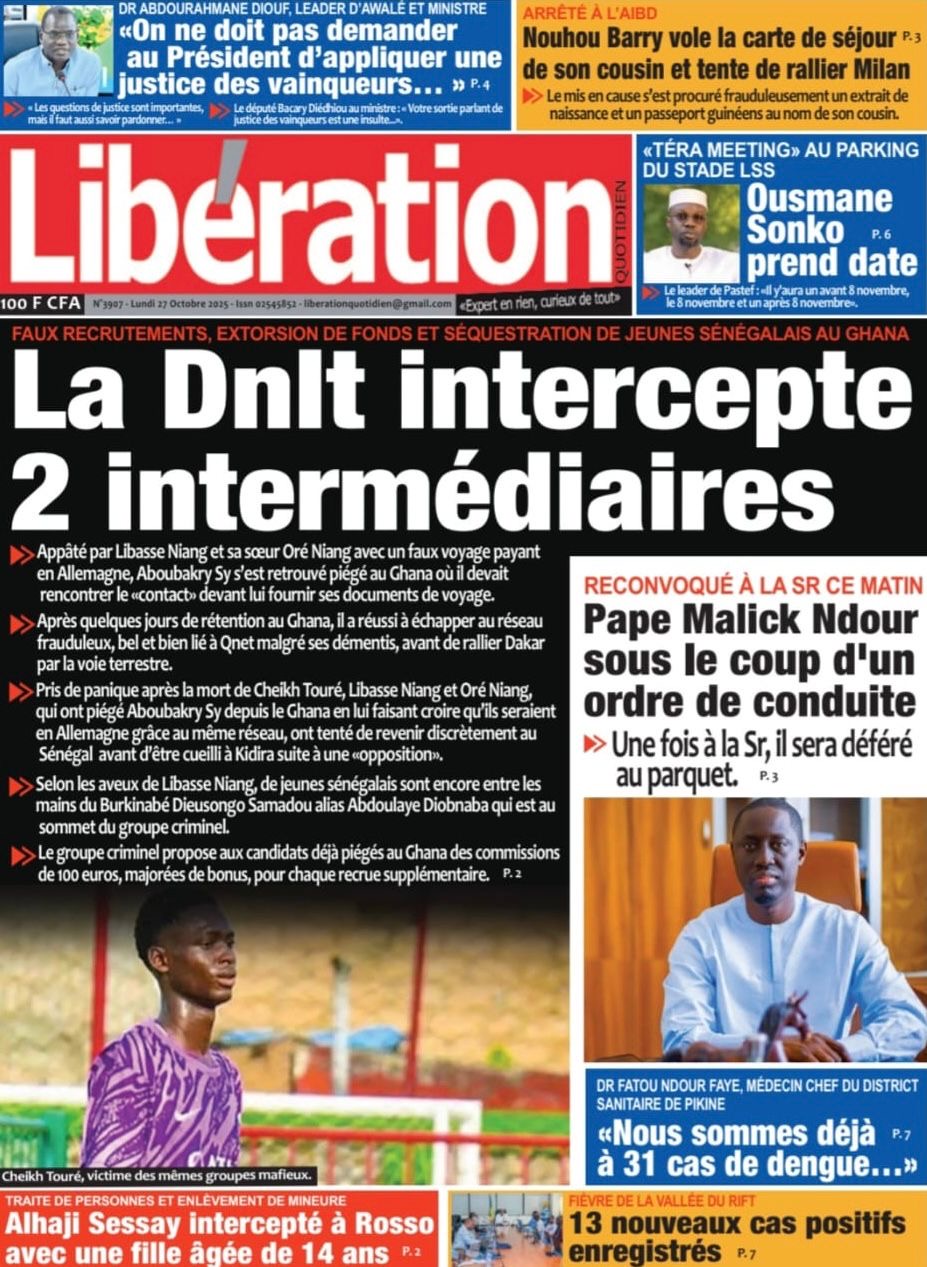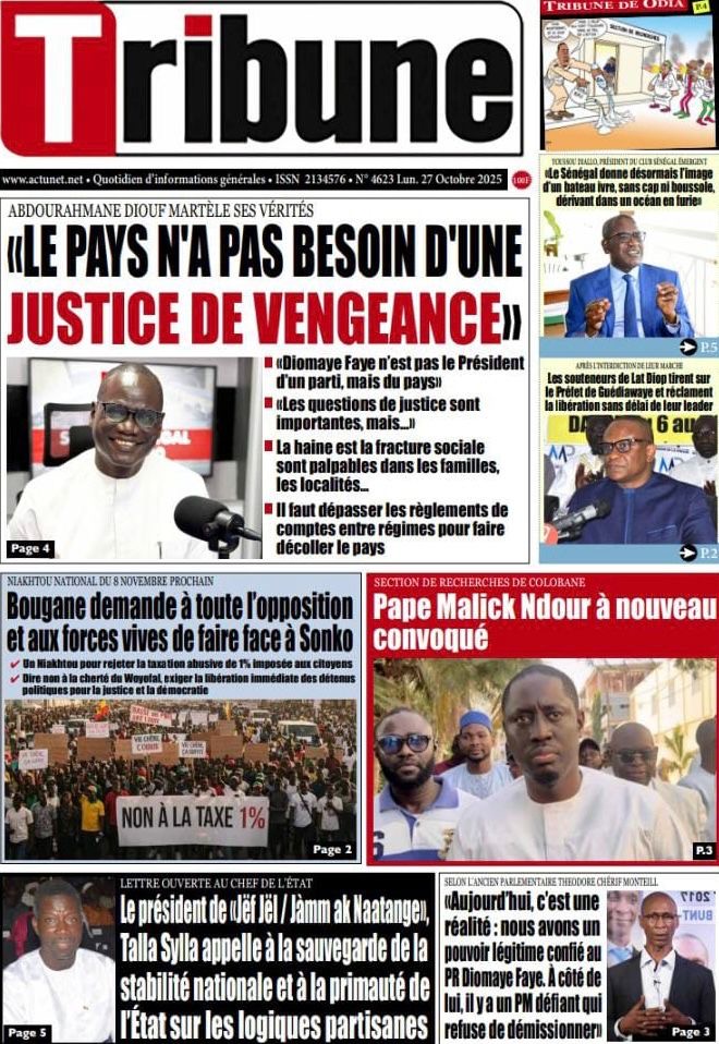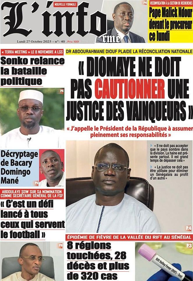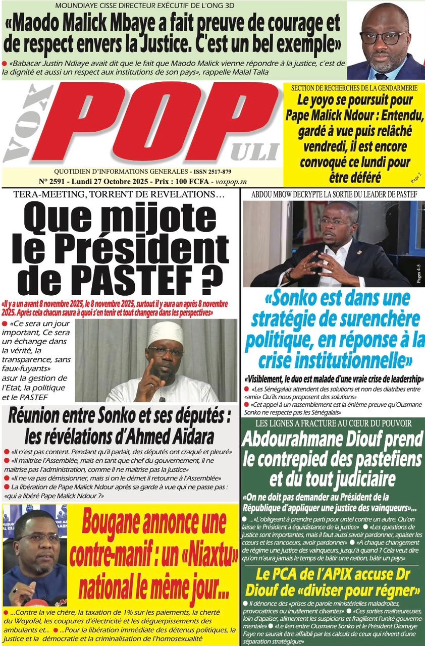 La revue de presse sénégalaise du lundi 27 octobre 2025
