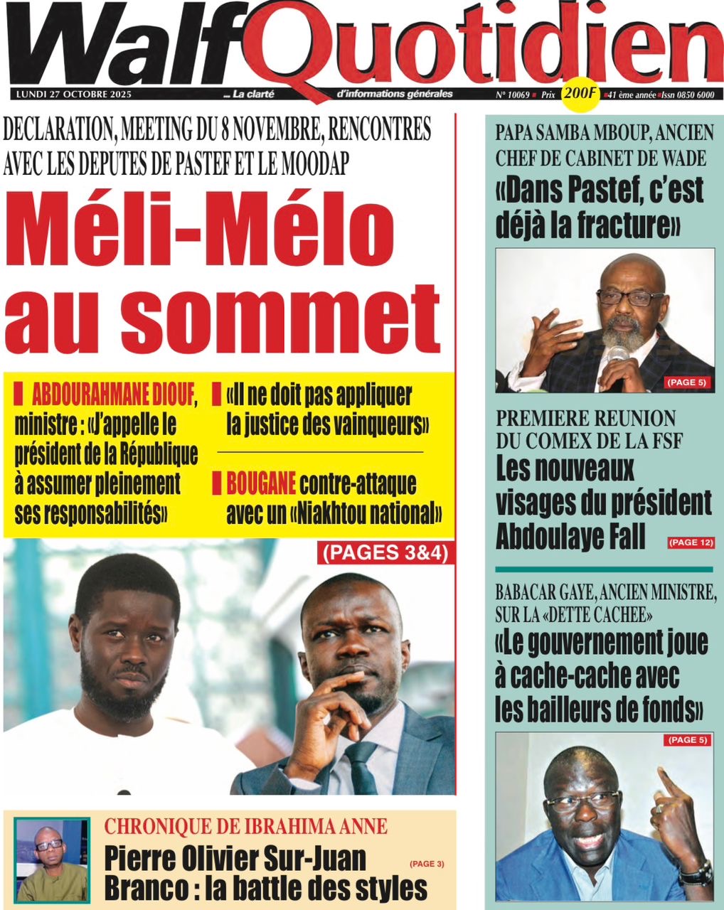Photos. La revue de presse sénégalaise du lundi 27 octobre 2025