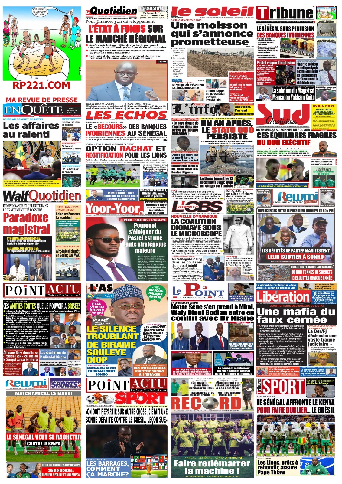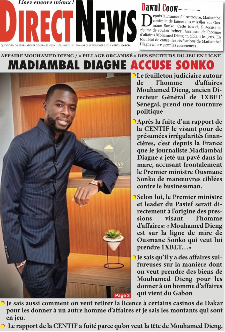 Mardi 18 novembre 2025 : la revue de presse sénégalaise