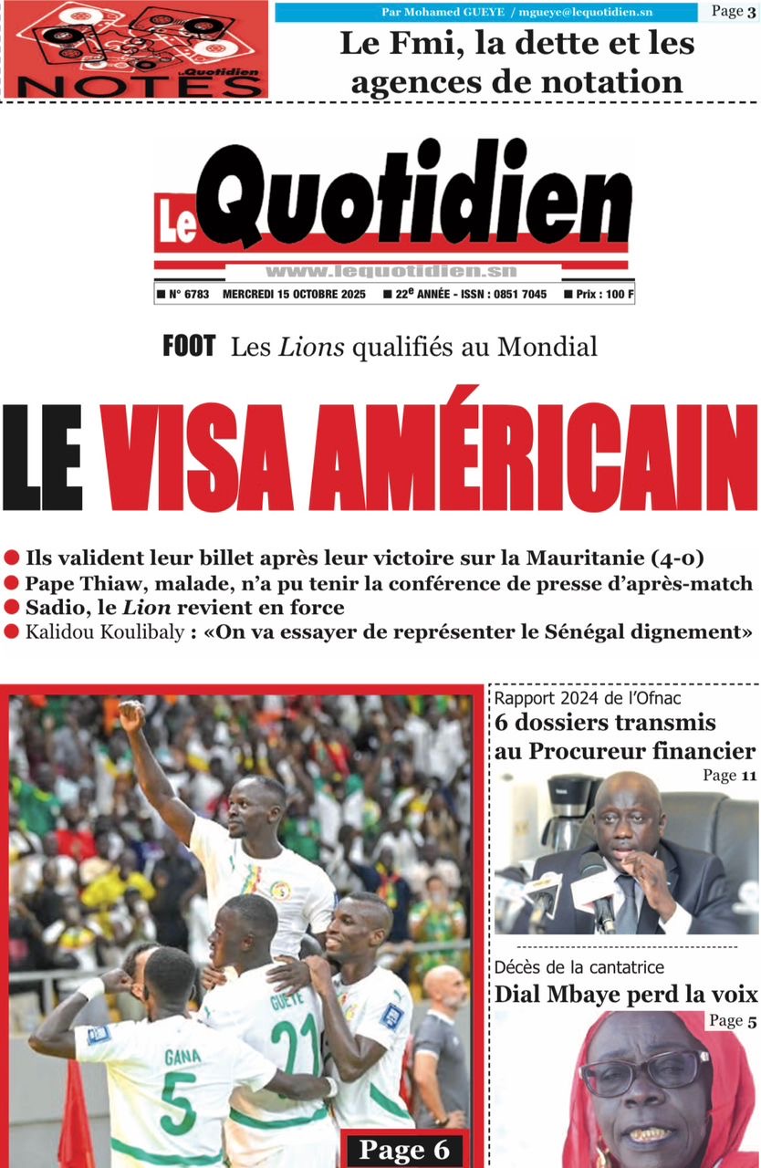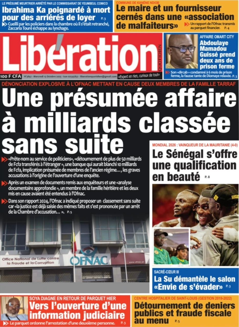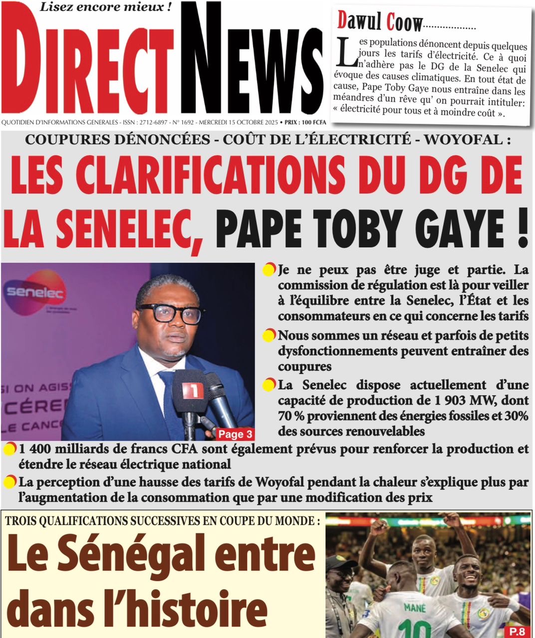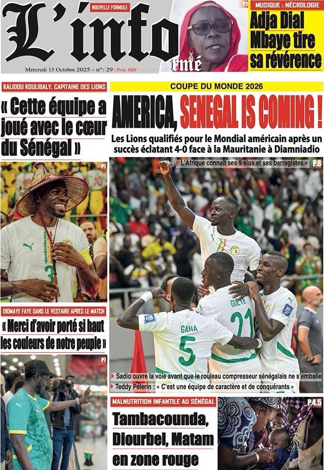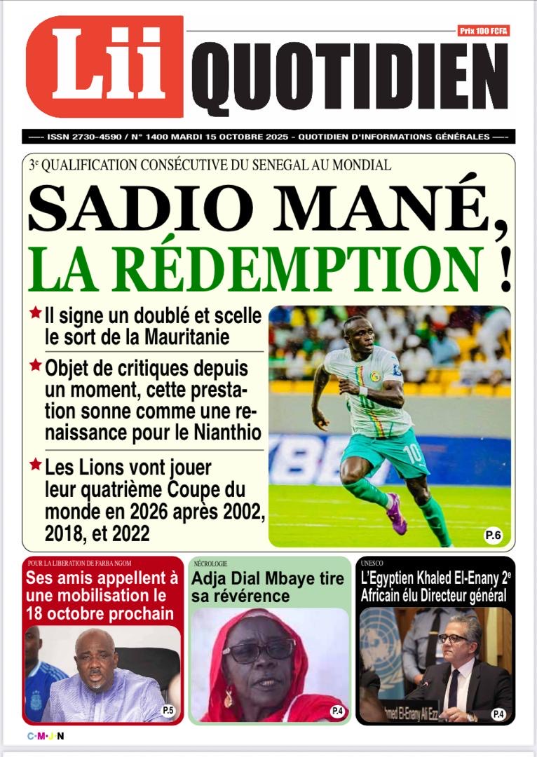 La revue de presse sénégalaise du mercredi 15 octobre 2025
