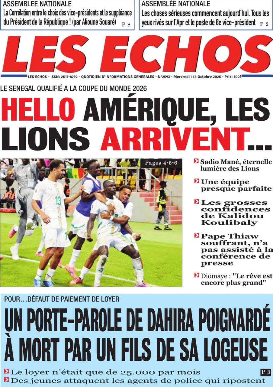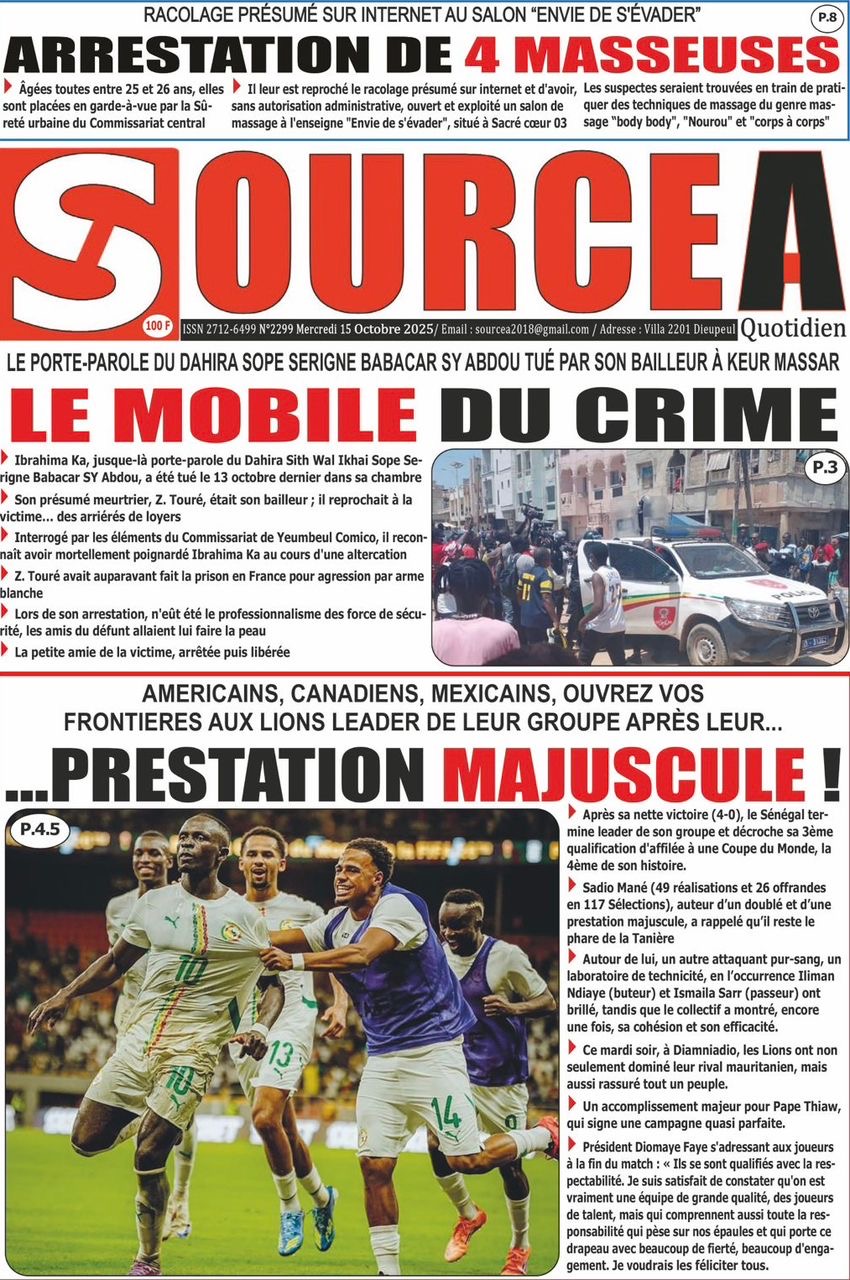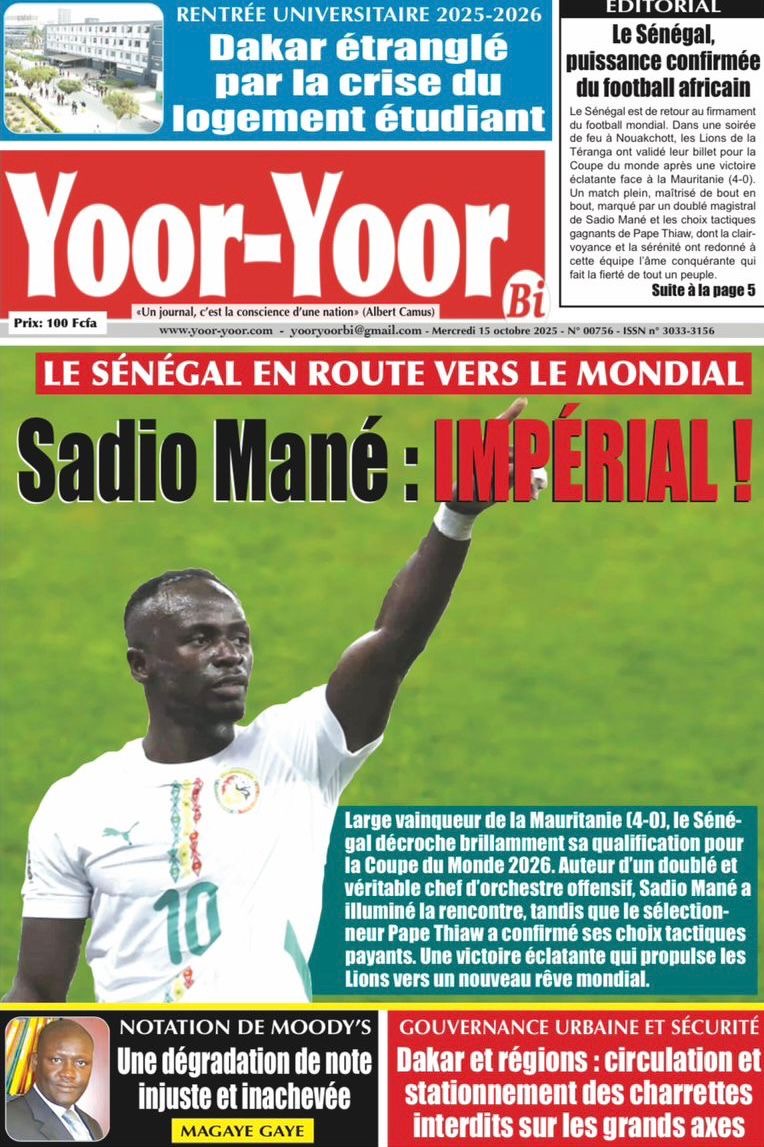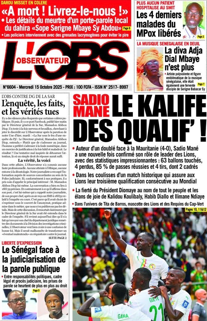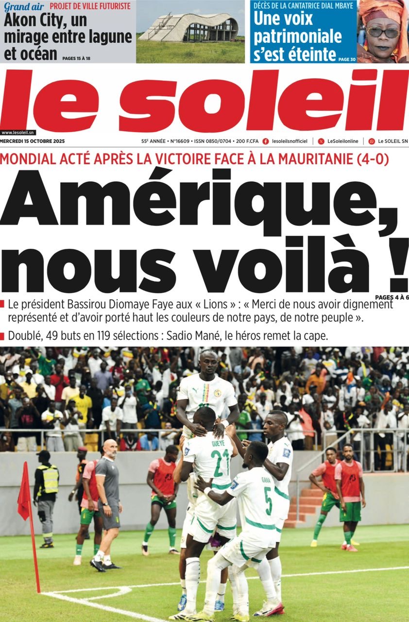 La revue de presse sénégalaise du mercredi 15 octobre 2025