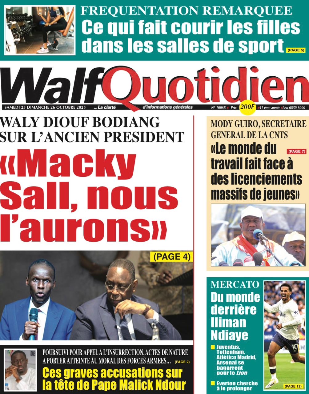 Photos. La revue de presse sénégalaise du samedi 25 octobre 2025