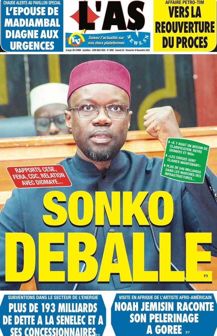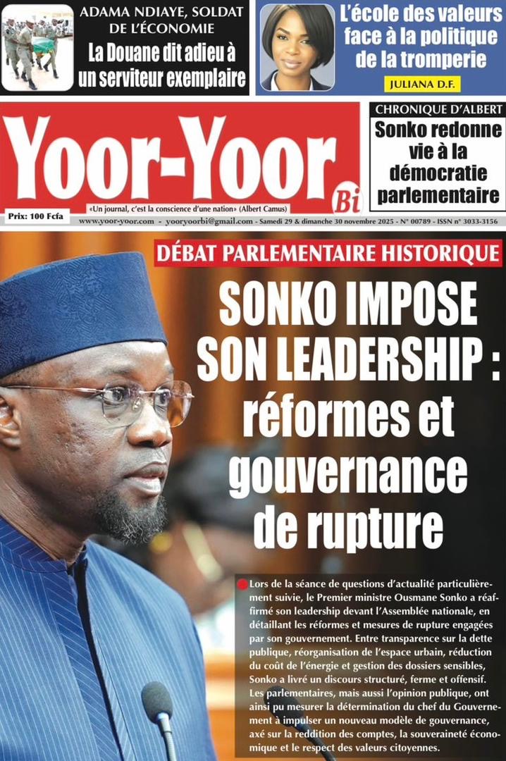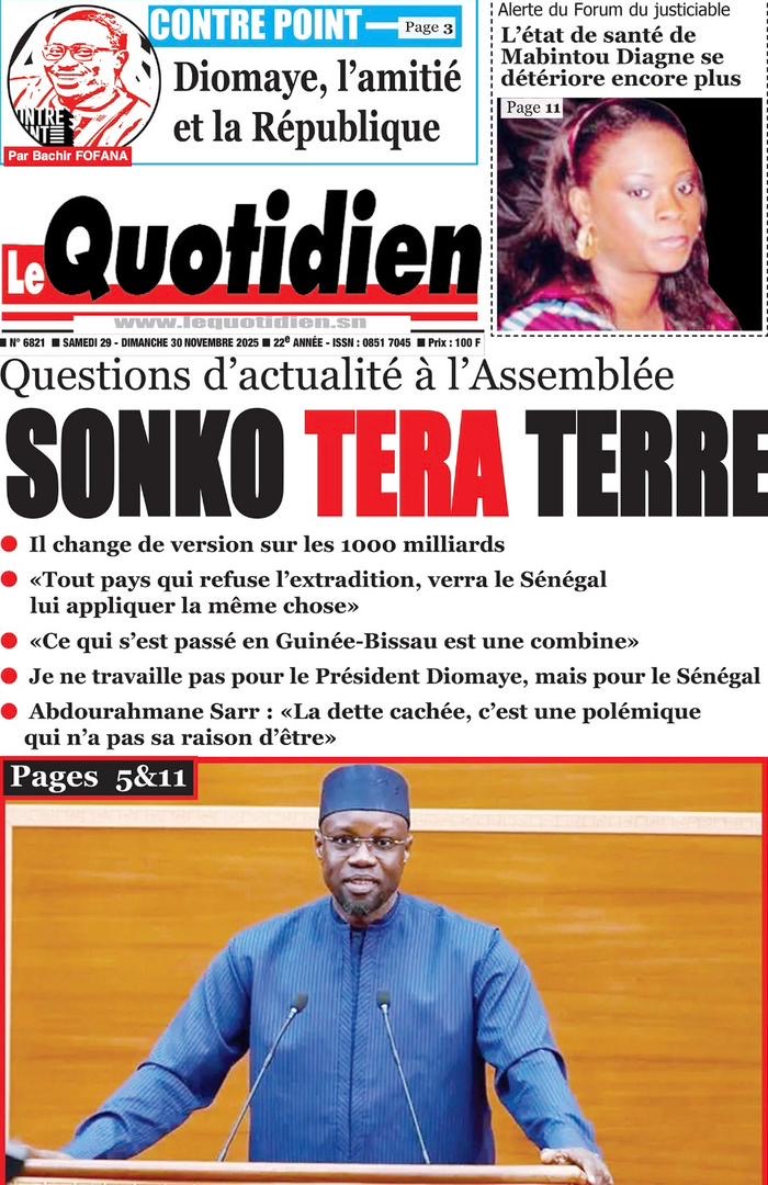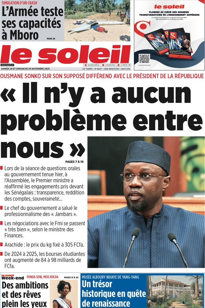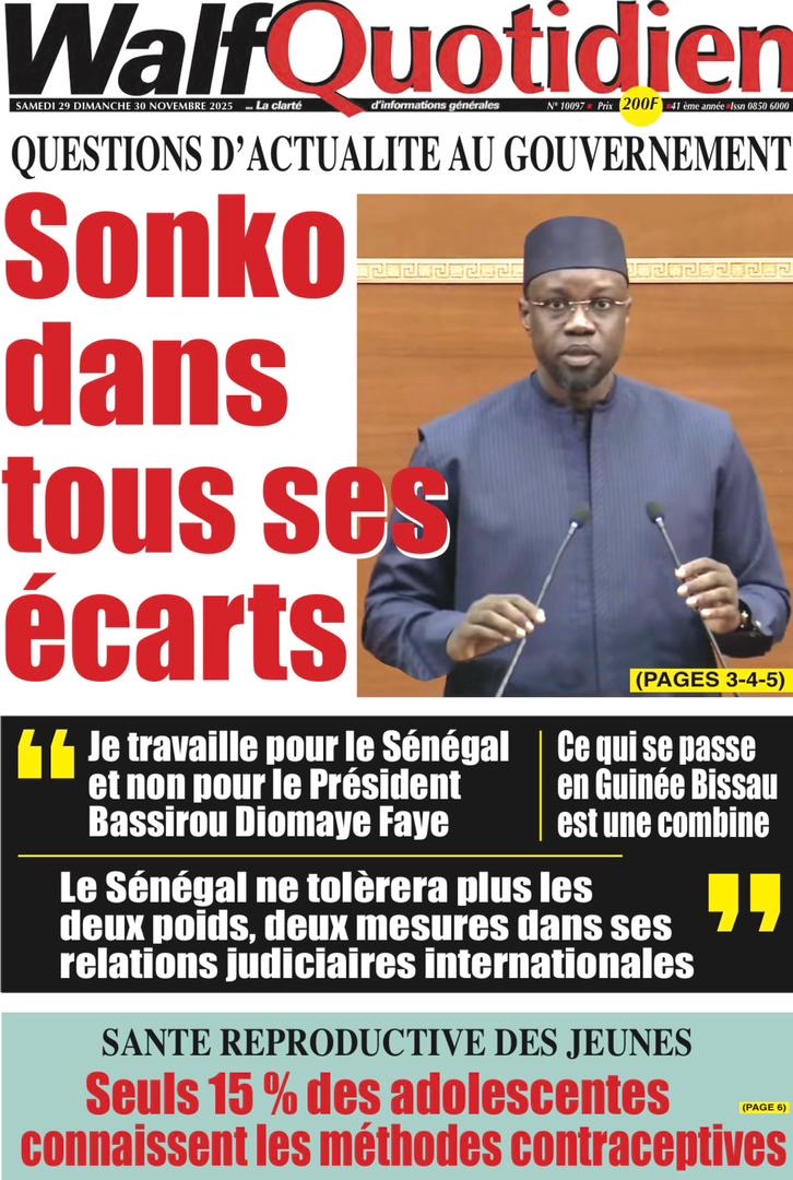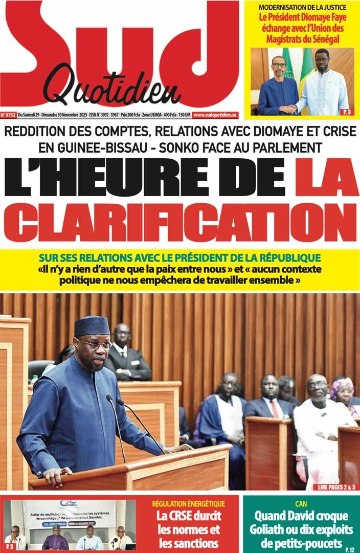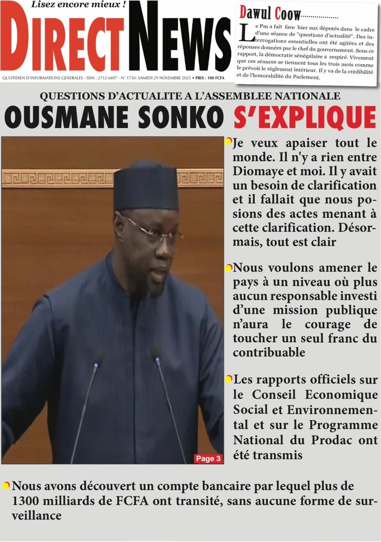 La revue de presse sénégalaise du samedi 29 novembre 2025 est dominée par le face à face du Premier ministre Ousmane Sonko avec les députés.
