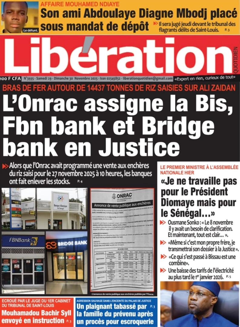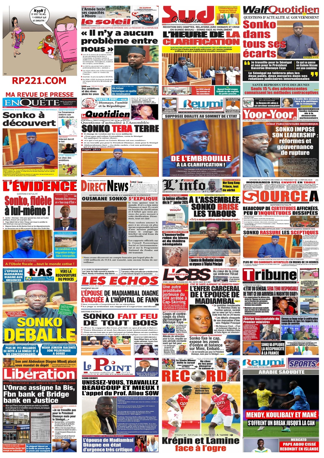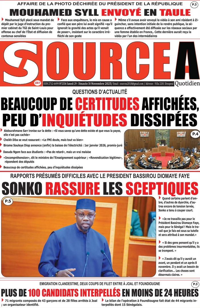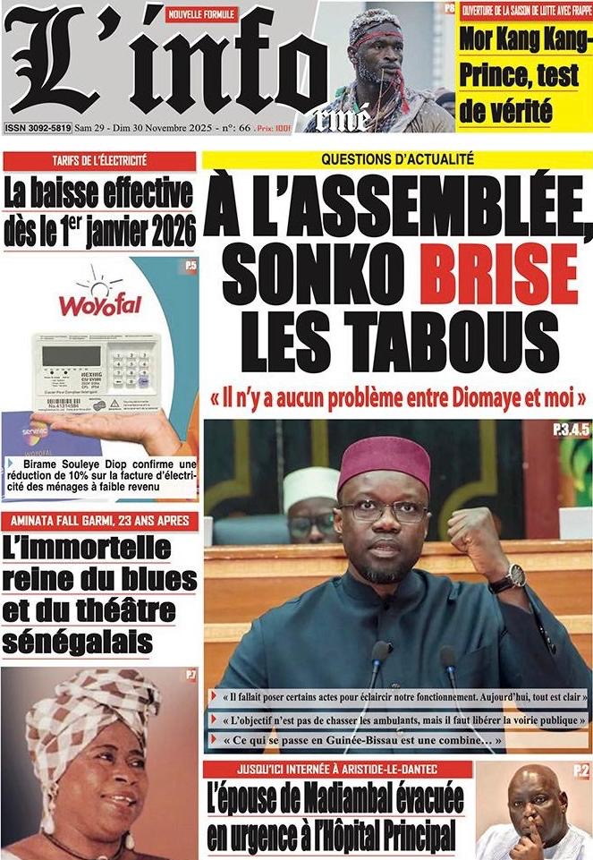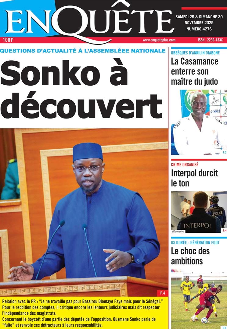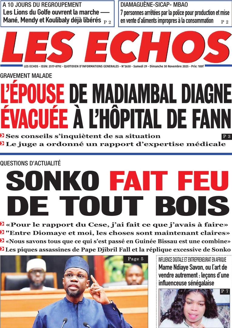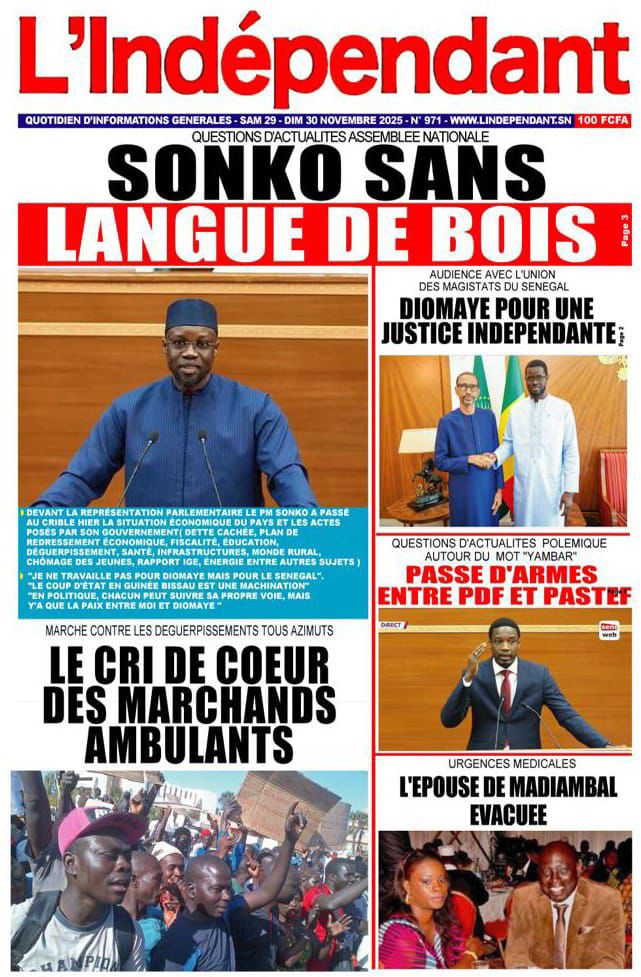 La revue de presse sénégalaise du samedi 29 novembre 2025 est dominée par le face à face du Premier ministre Ousmane Sonko avec les députés.