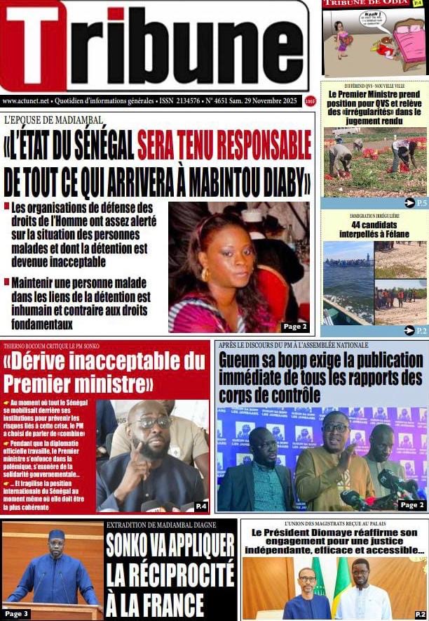 La revue de presse sénégalaise du samedi 29 novembre 2025