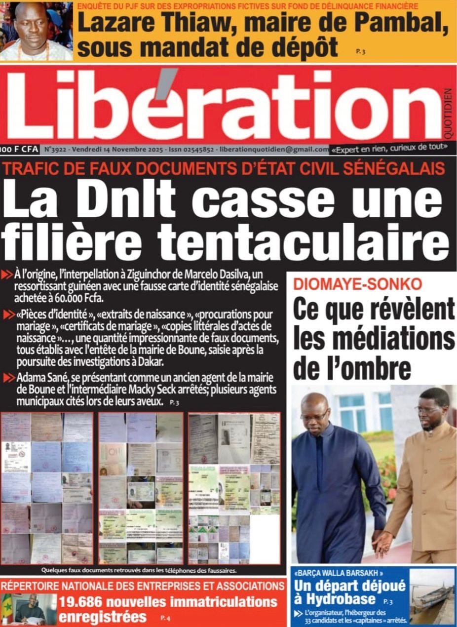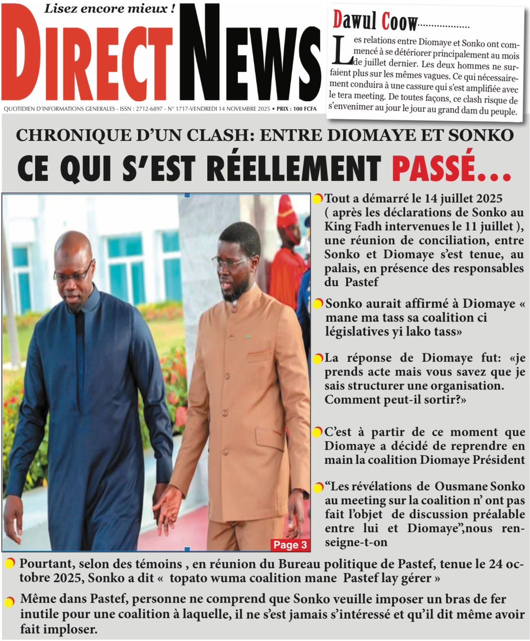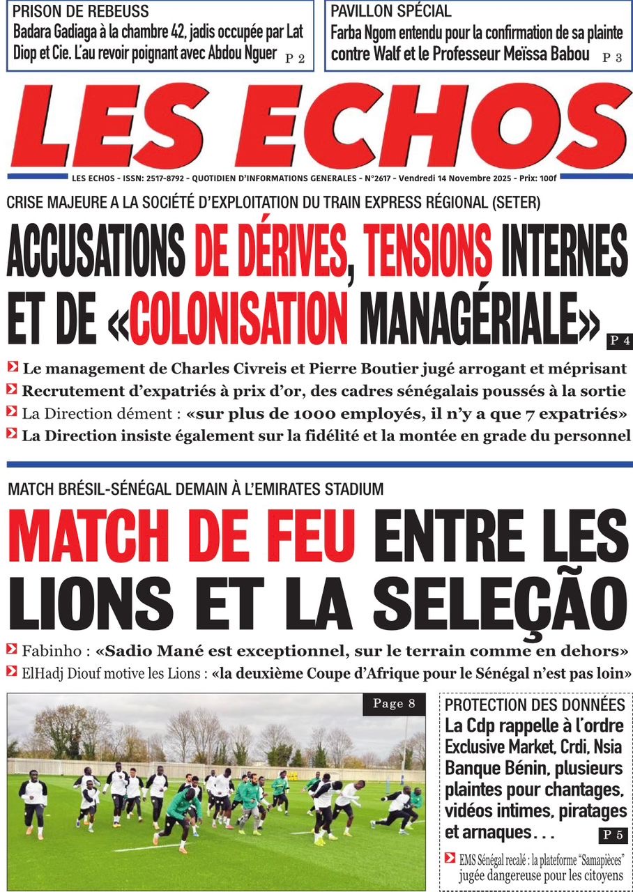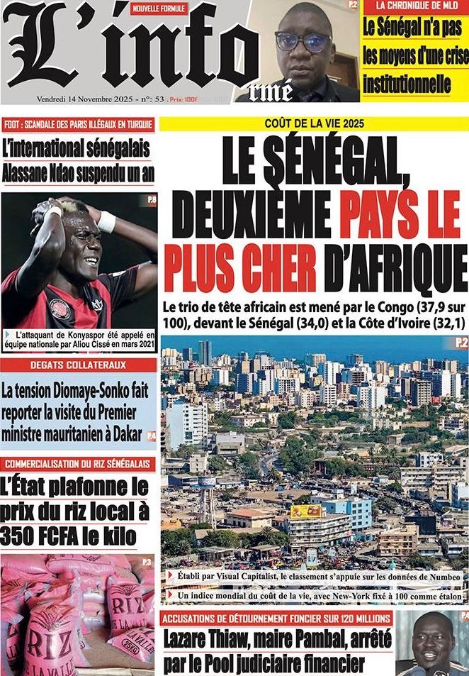 La revue de presse sénégalaise du vendredi 14 novembre 2025