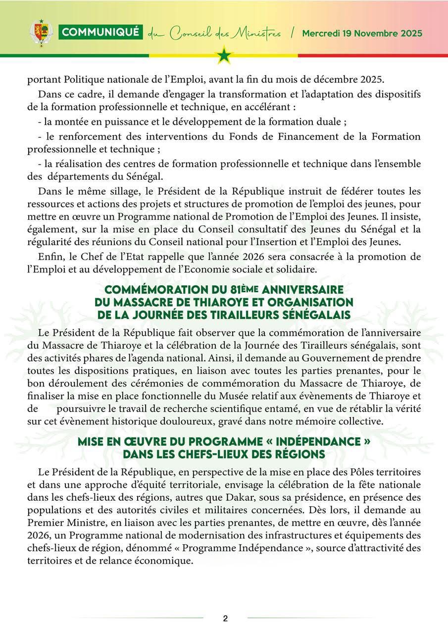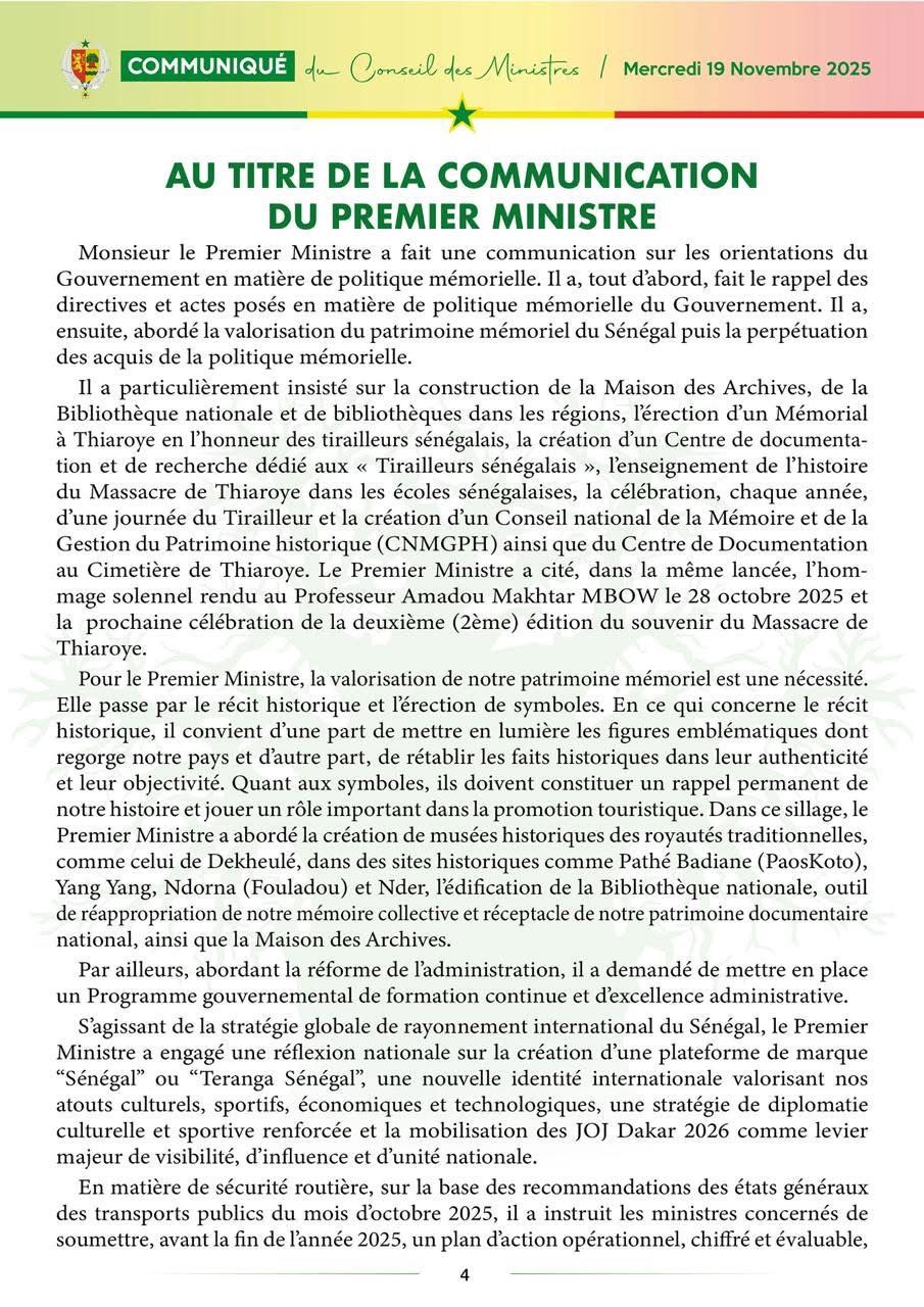 Le texte a été publié à l’issue de la réunion hebdomadaire tenue sous la conduite du Président Bassirou Diomaye Faye, ce mercredi 19 novembre.