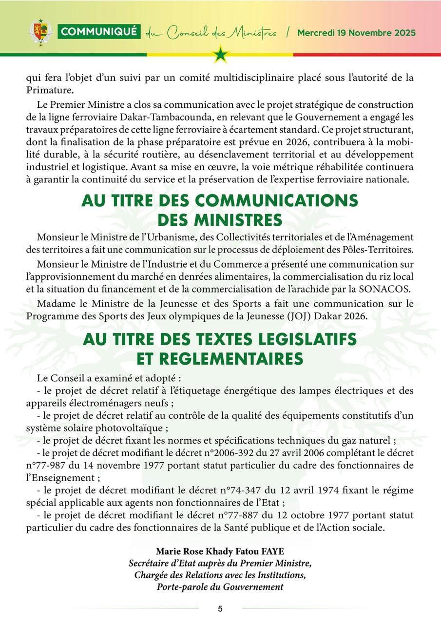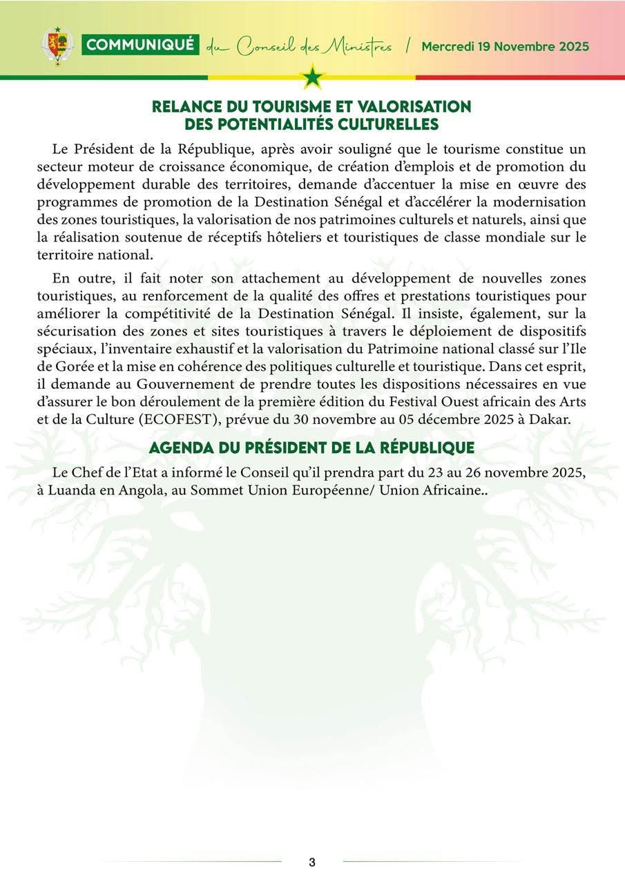 Le communiqué du Conseil des ministres, du mercredi 19 novembre 2025