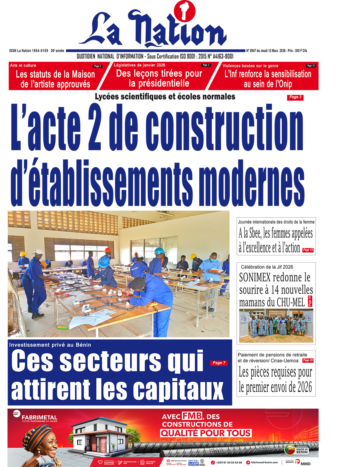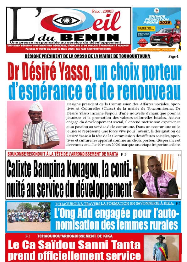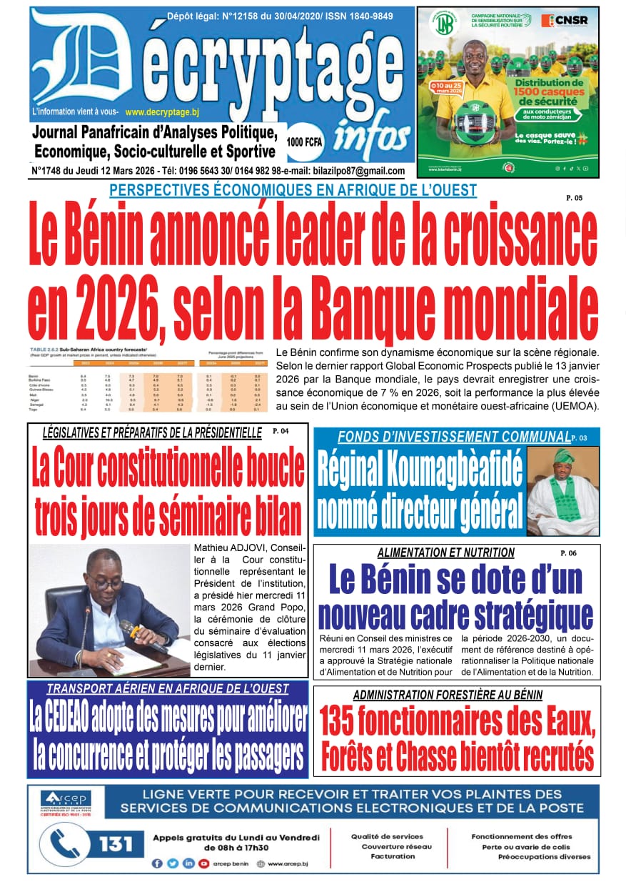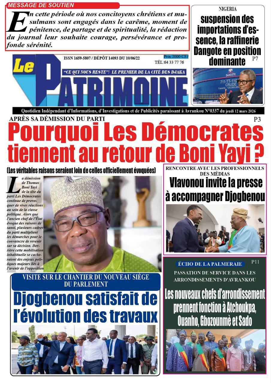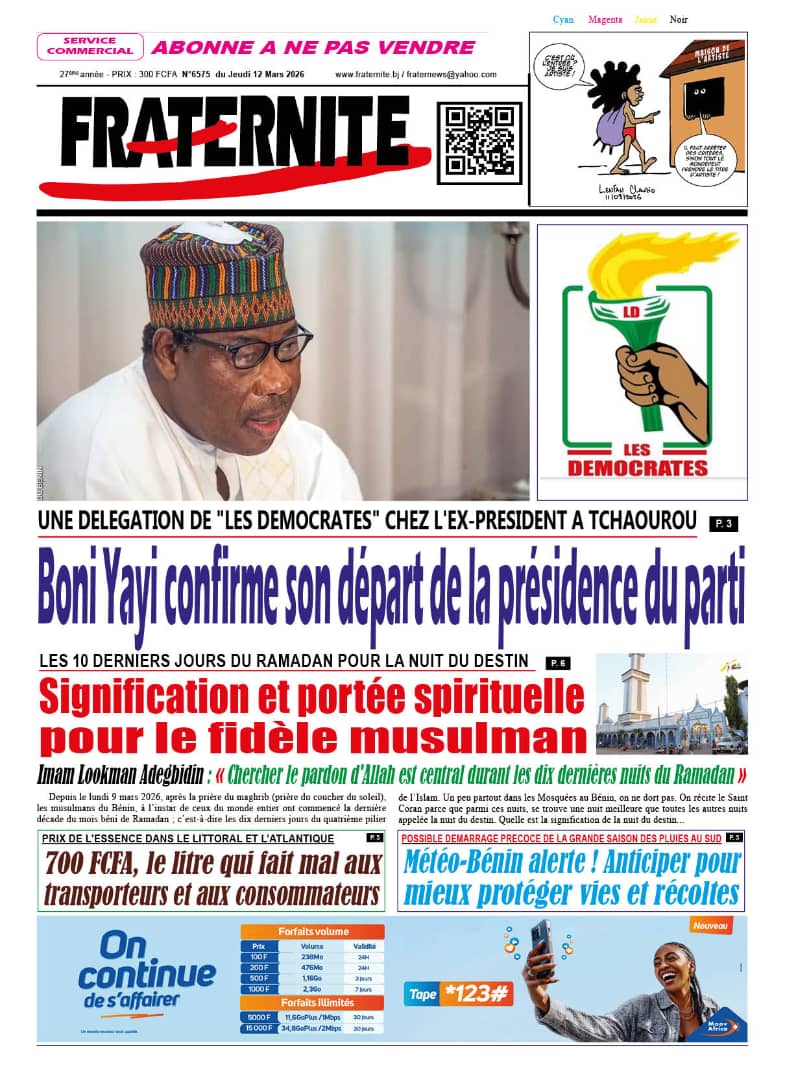 Bénin : les journaux du jeudi 12 mars 2026 Lire les UNES du Bénin