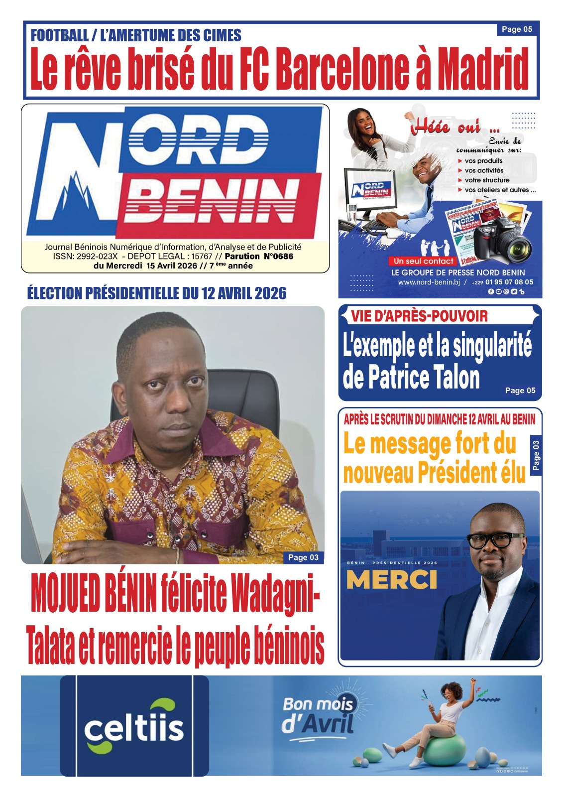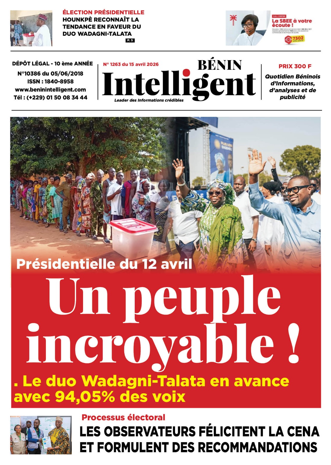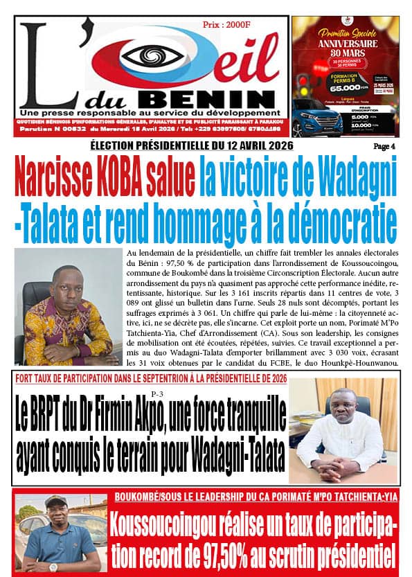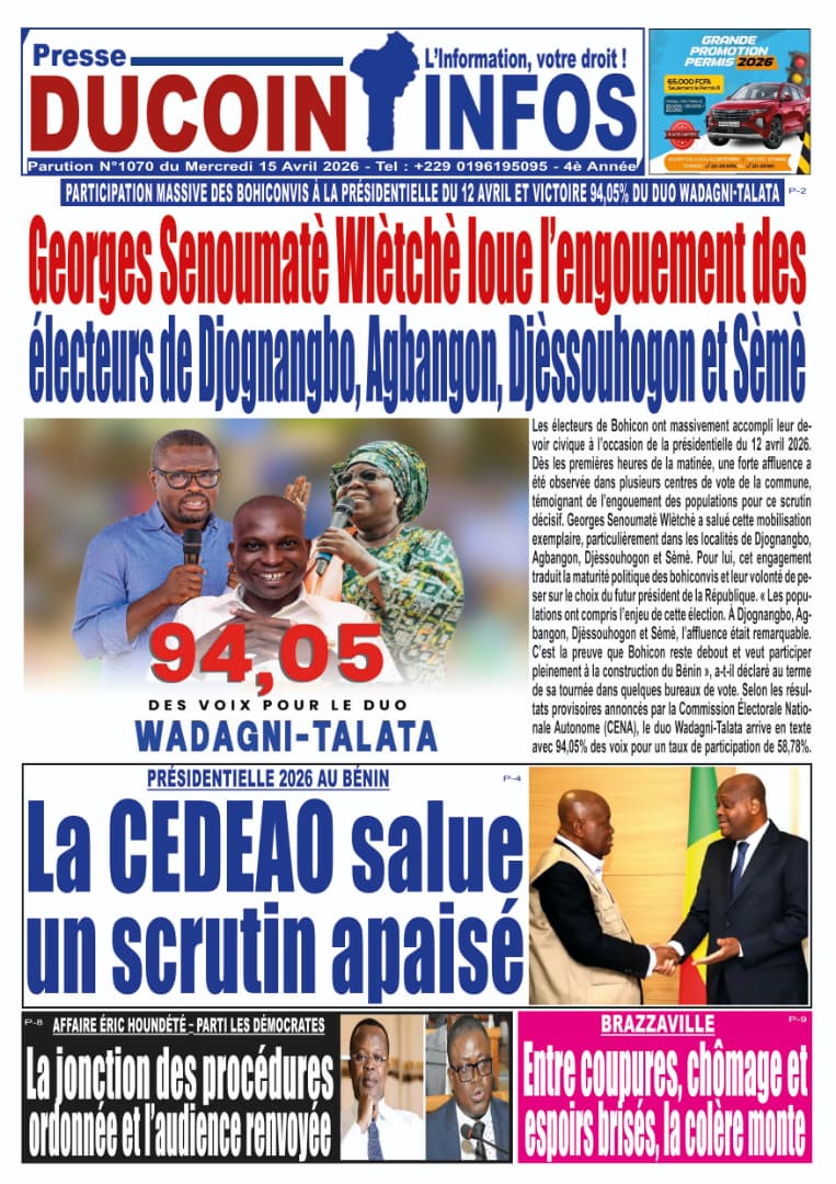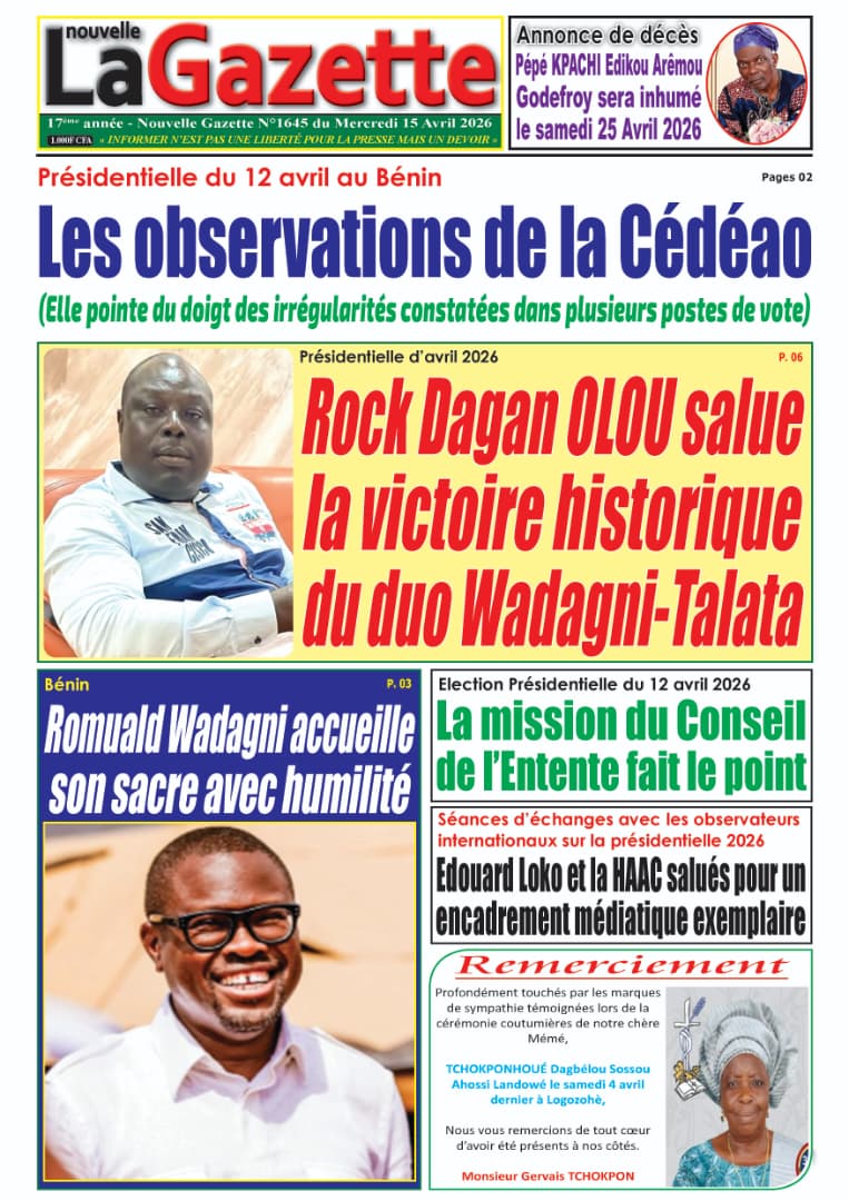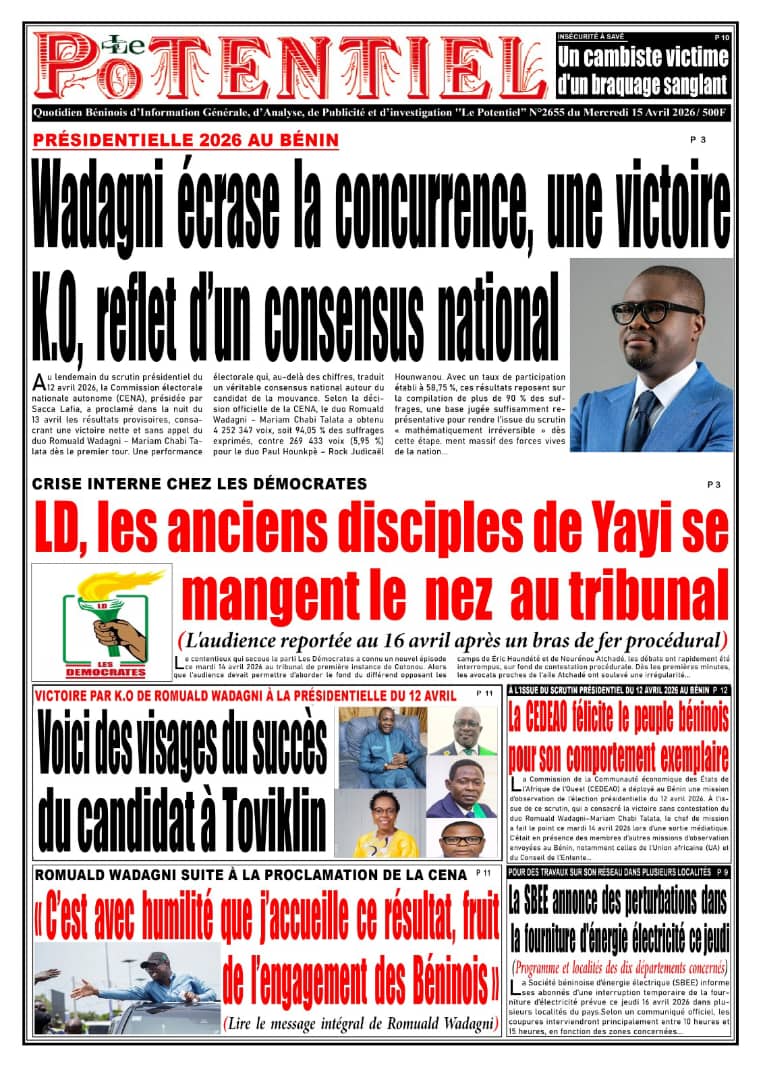 Bénin : Les journaux du mercredi 15 avril 2026