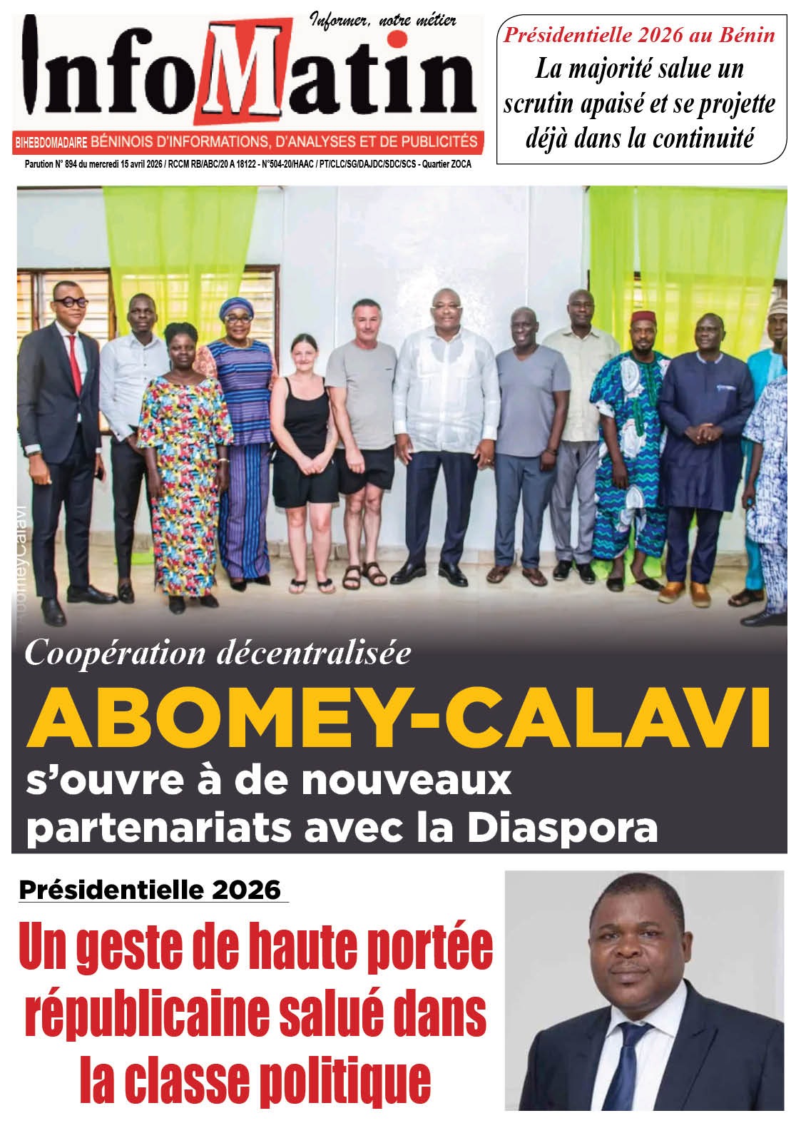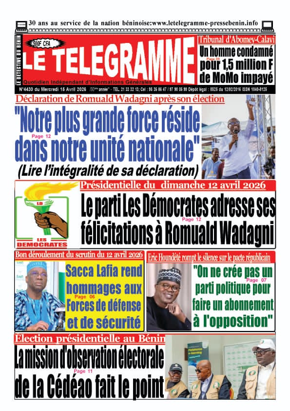 Photos. Les journaux béninois du mercredi 15 avril 2026