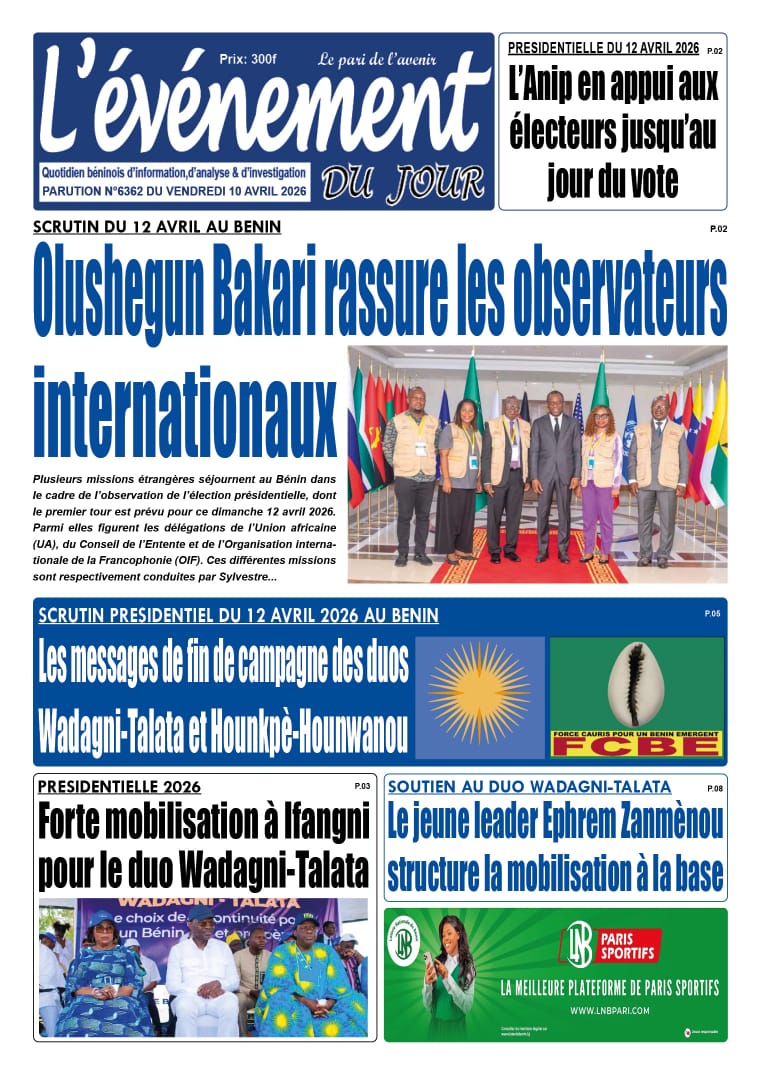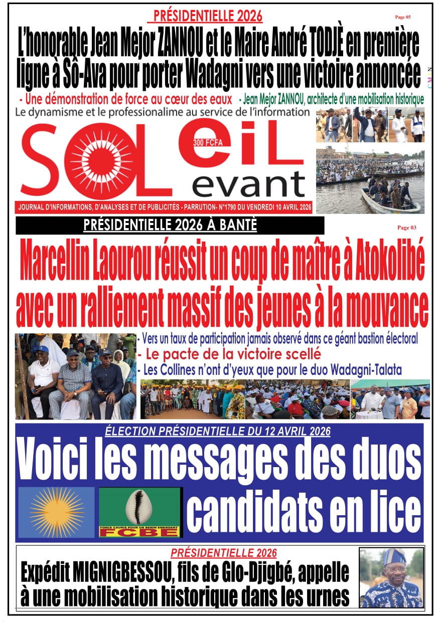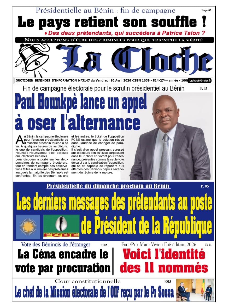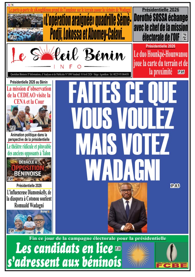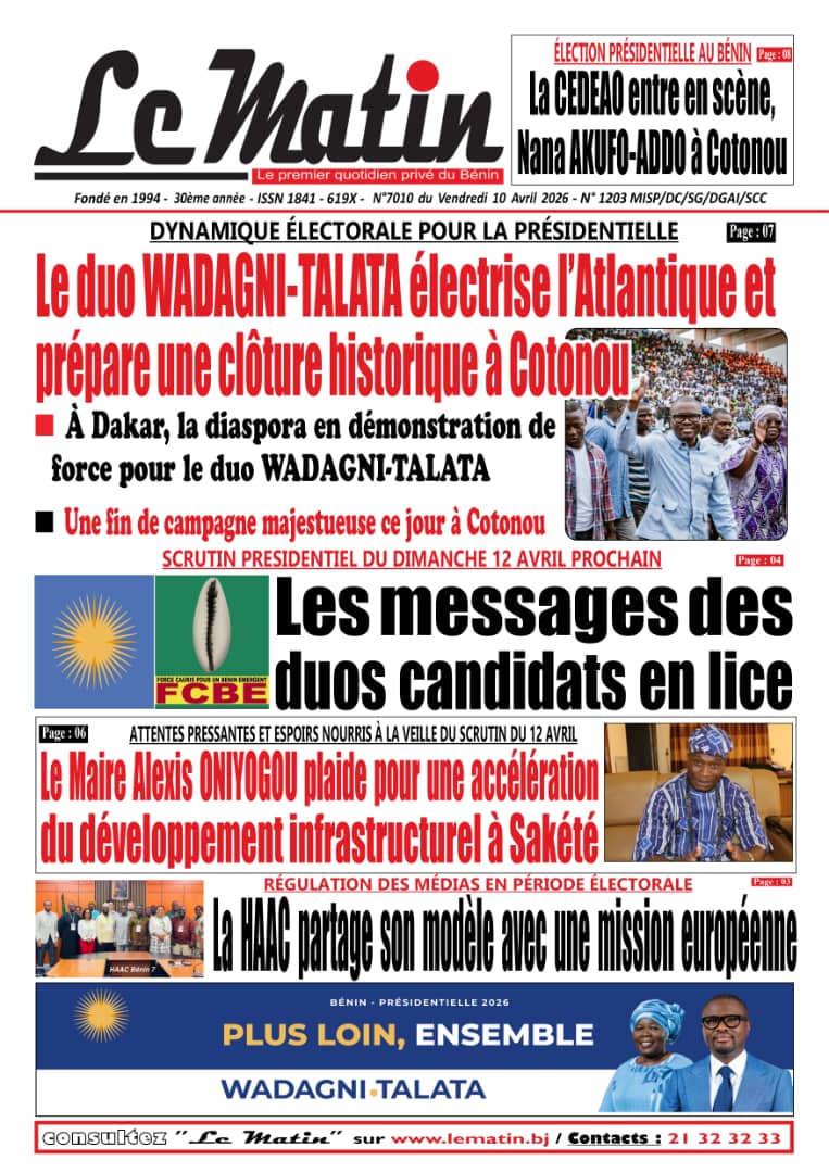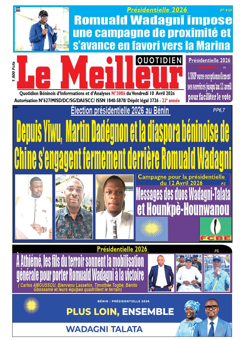 Bénin : les journaux du vendredi 10 avril 2026 Lire les UNES béninoises