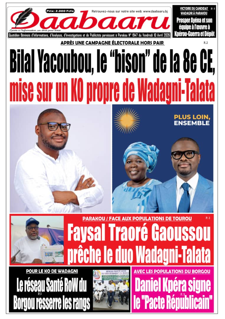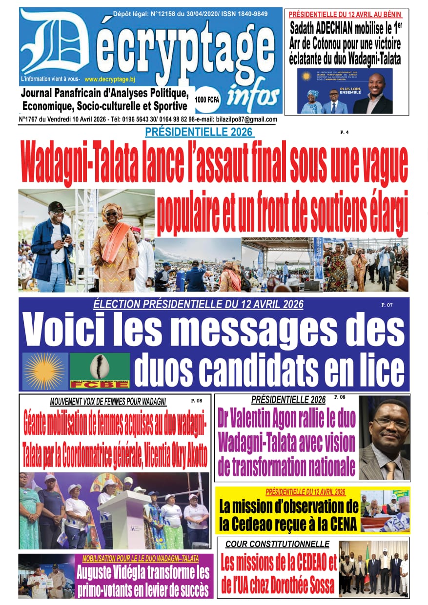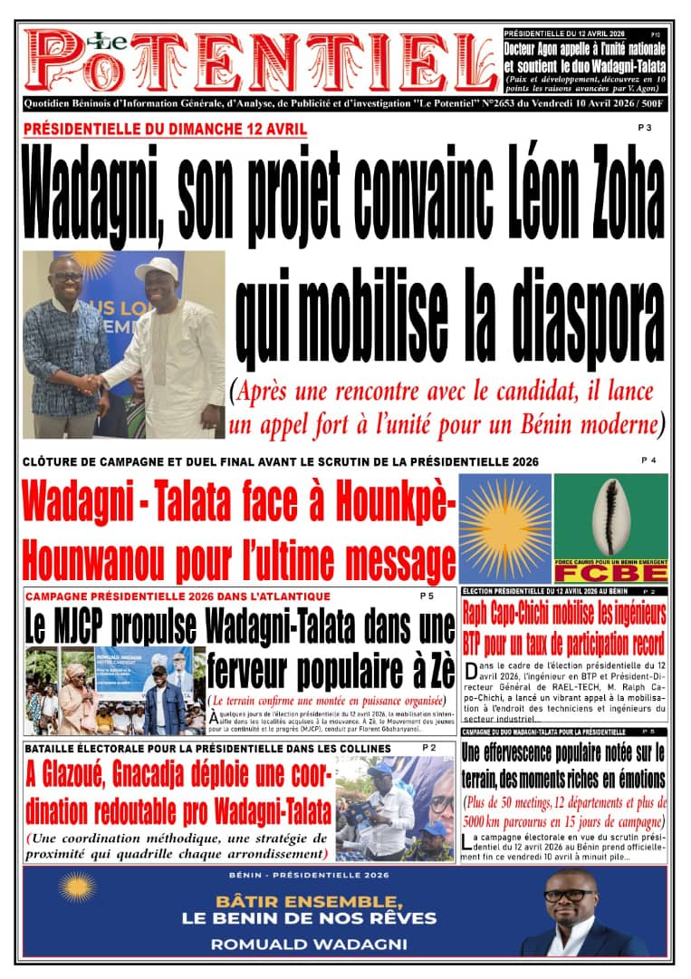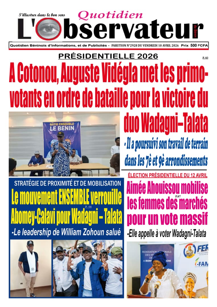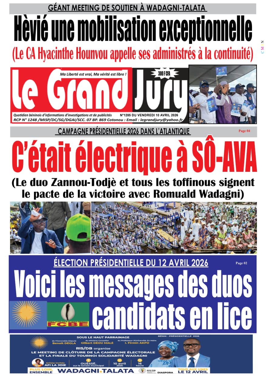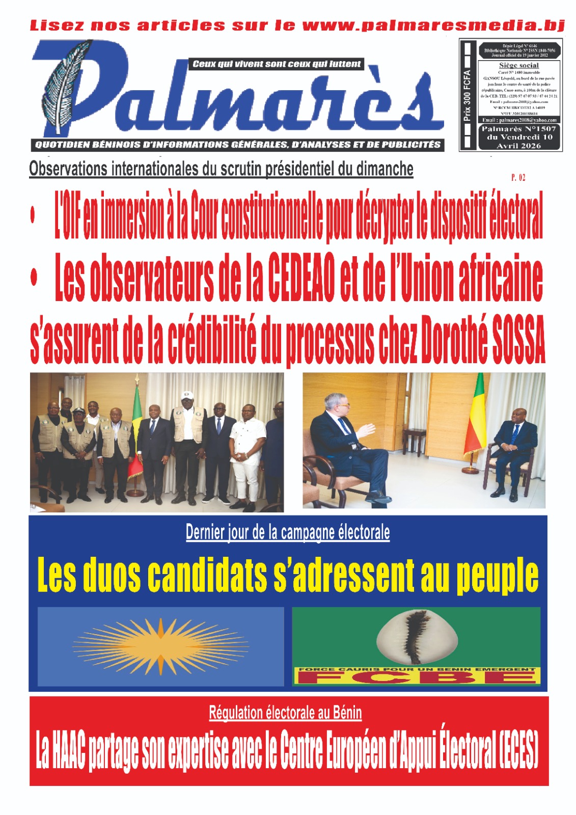 Bénin : les journaux du vendredi 10 avril 2026 Lire les UNES béninoises
