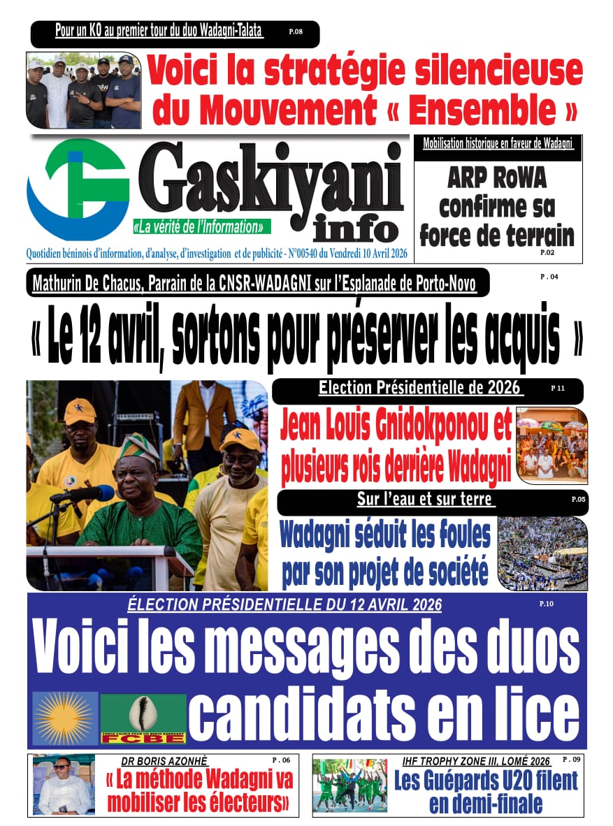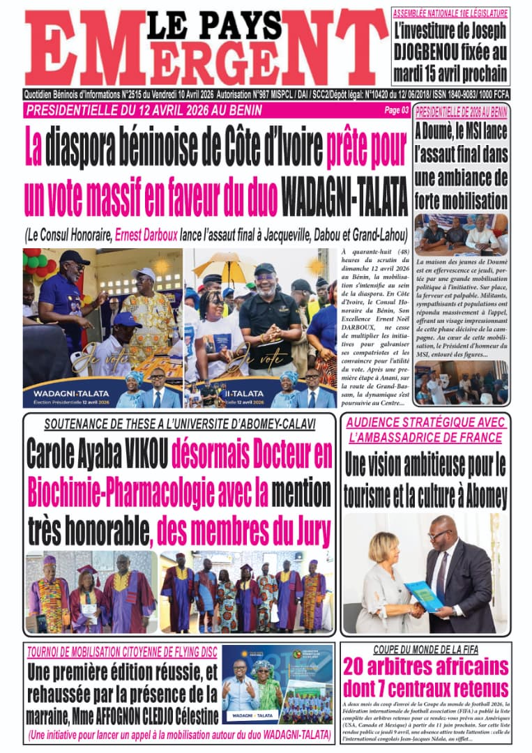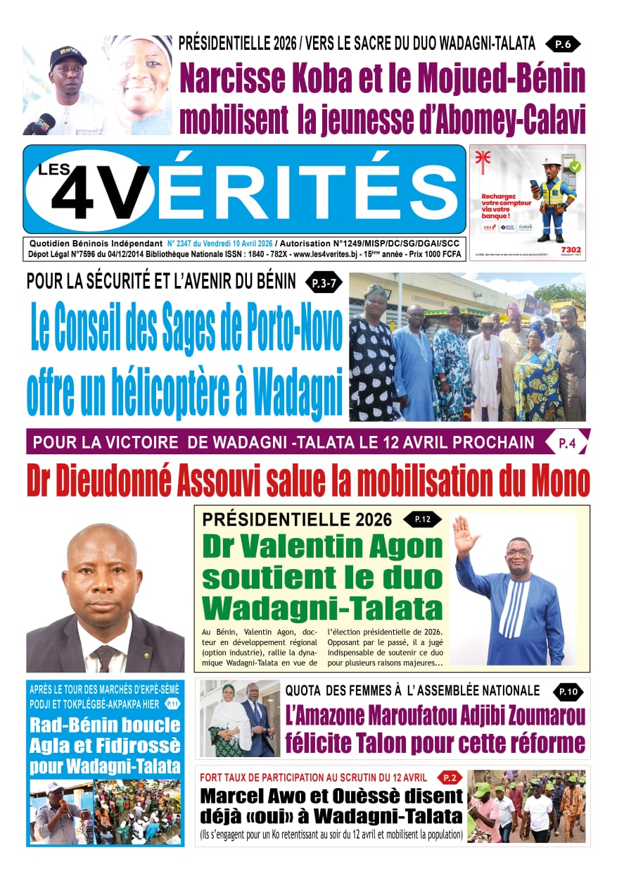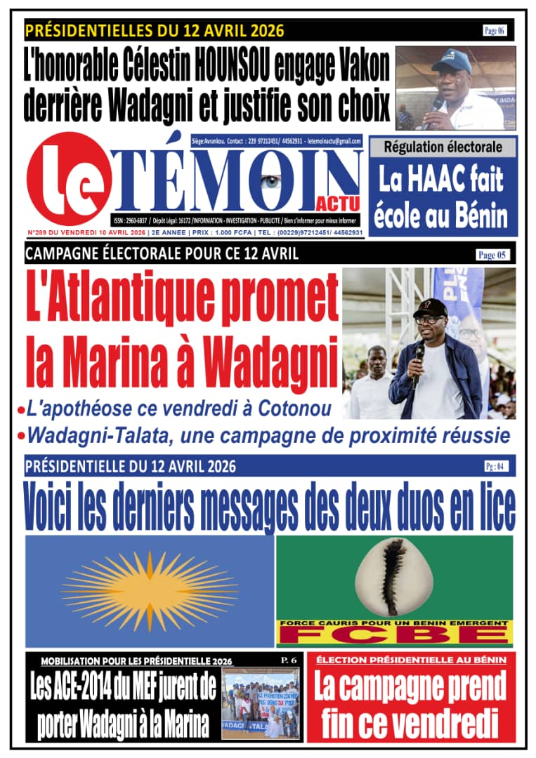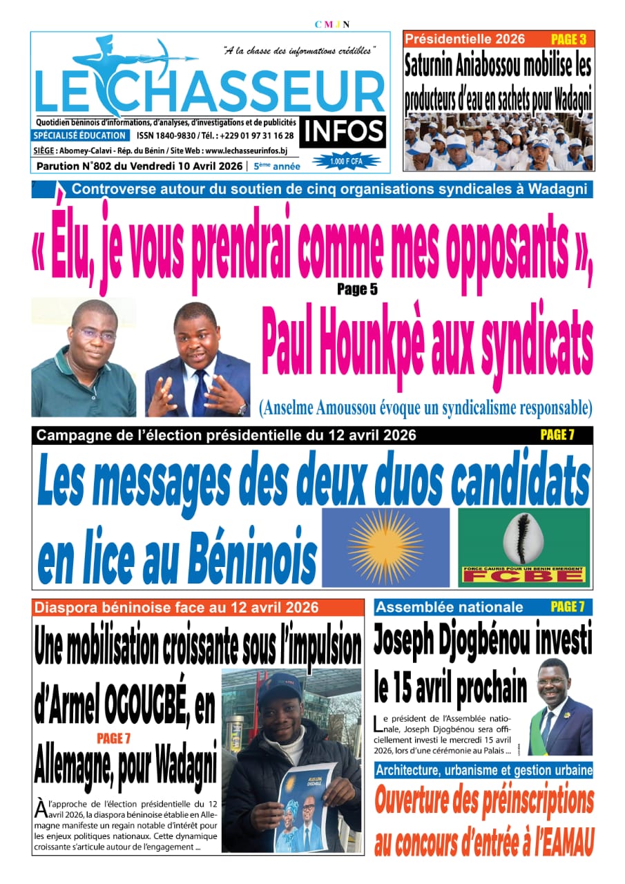 Bénin : les journaux du vendredi 10 avril 2026 Lire les UNES béninoises