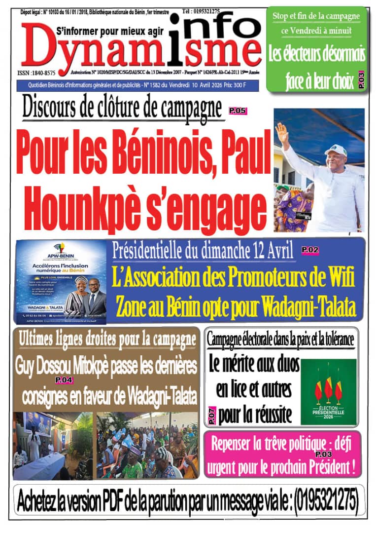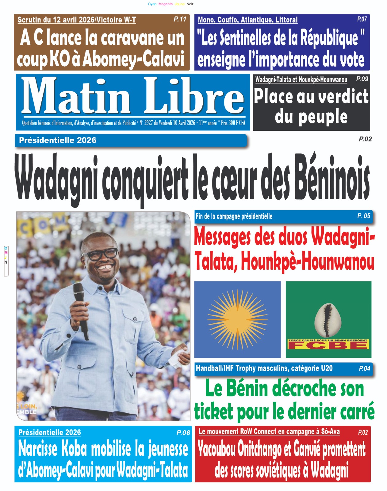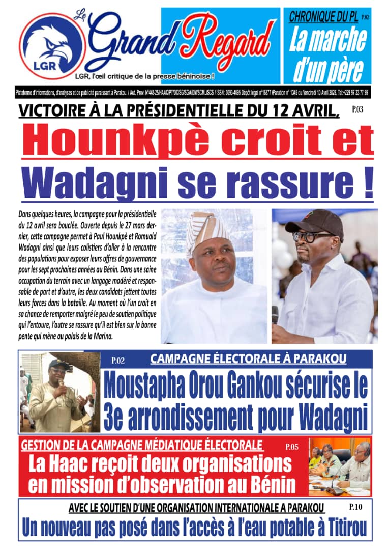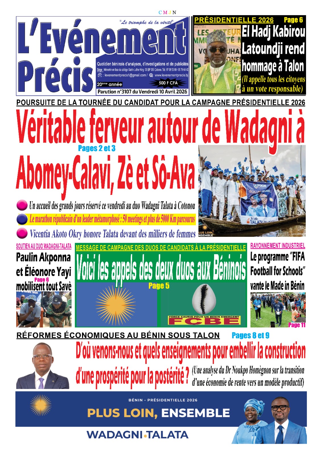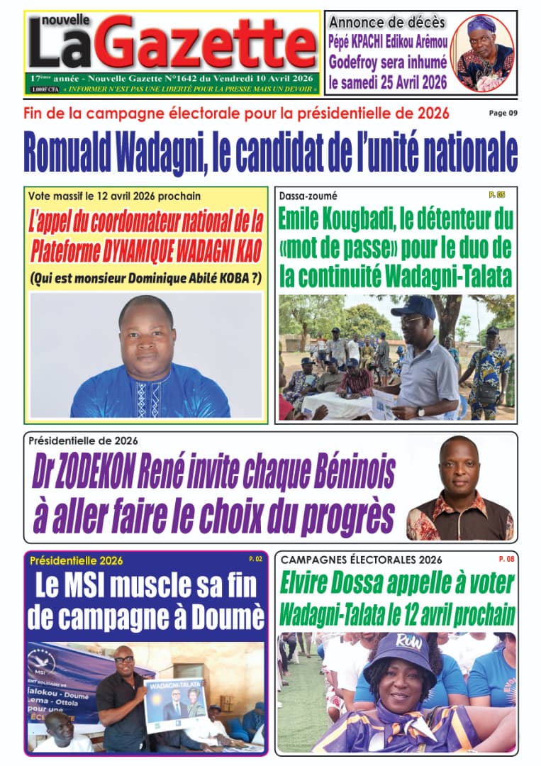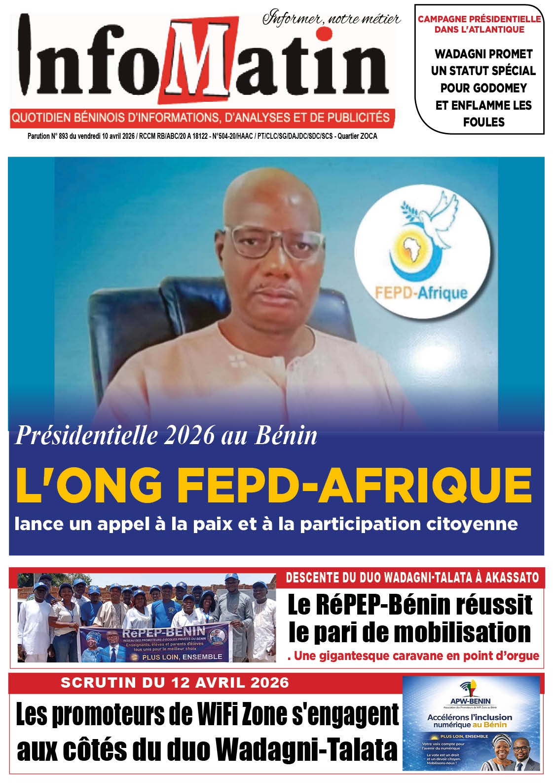 Bénin : les journaux du vendredi 10 avril 2026 Lire les UNES béninoises