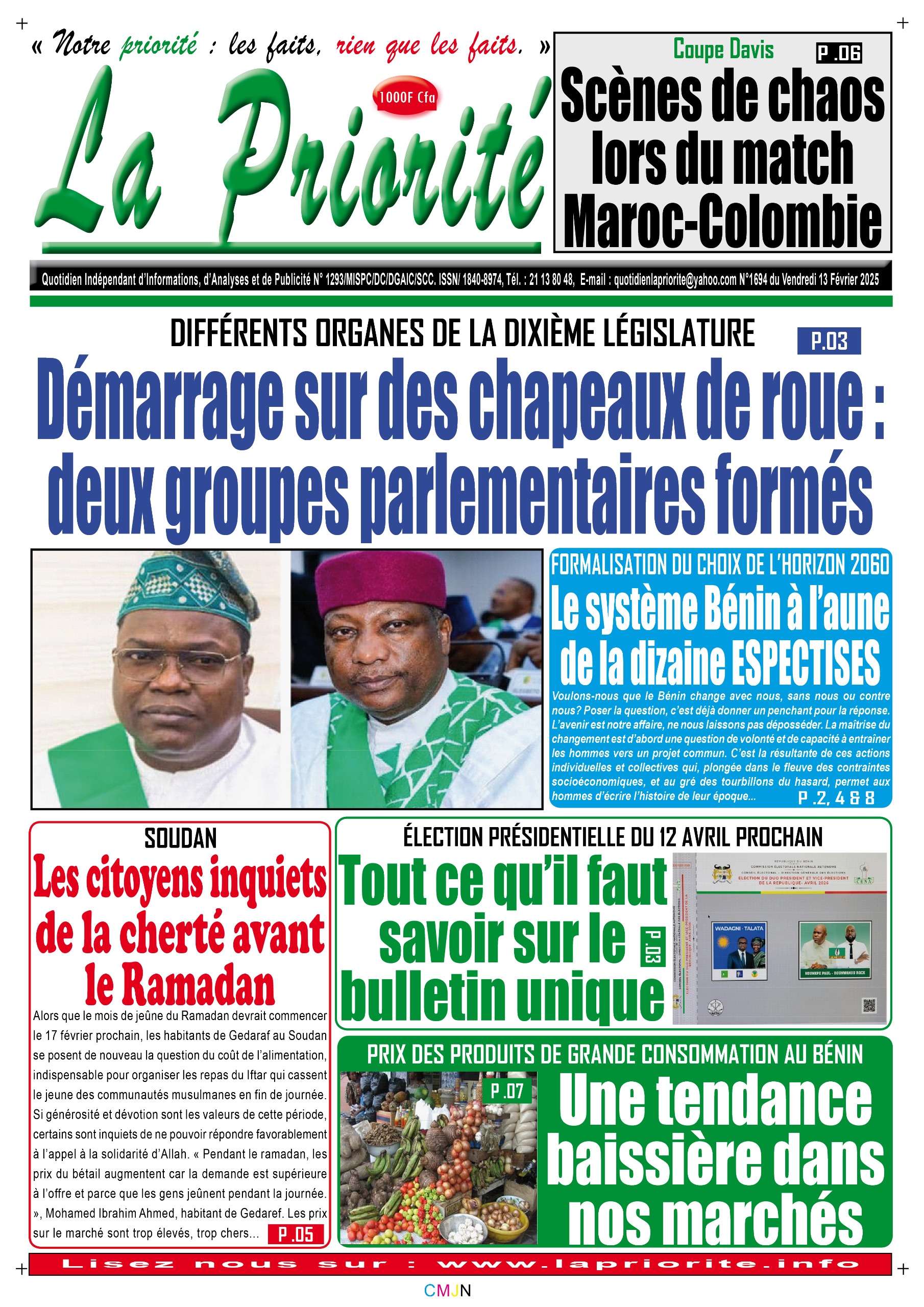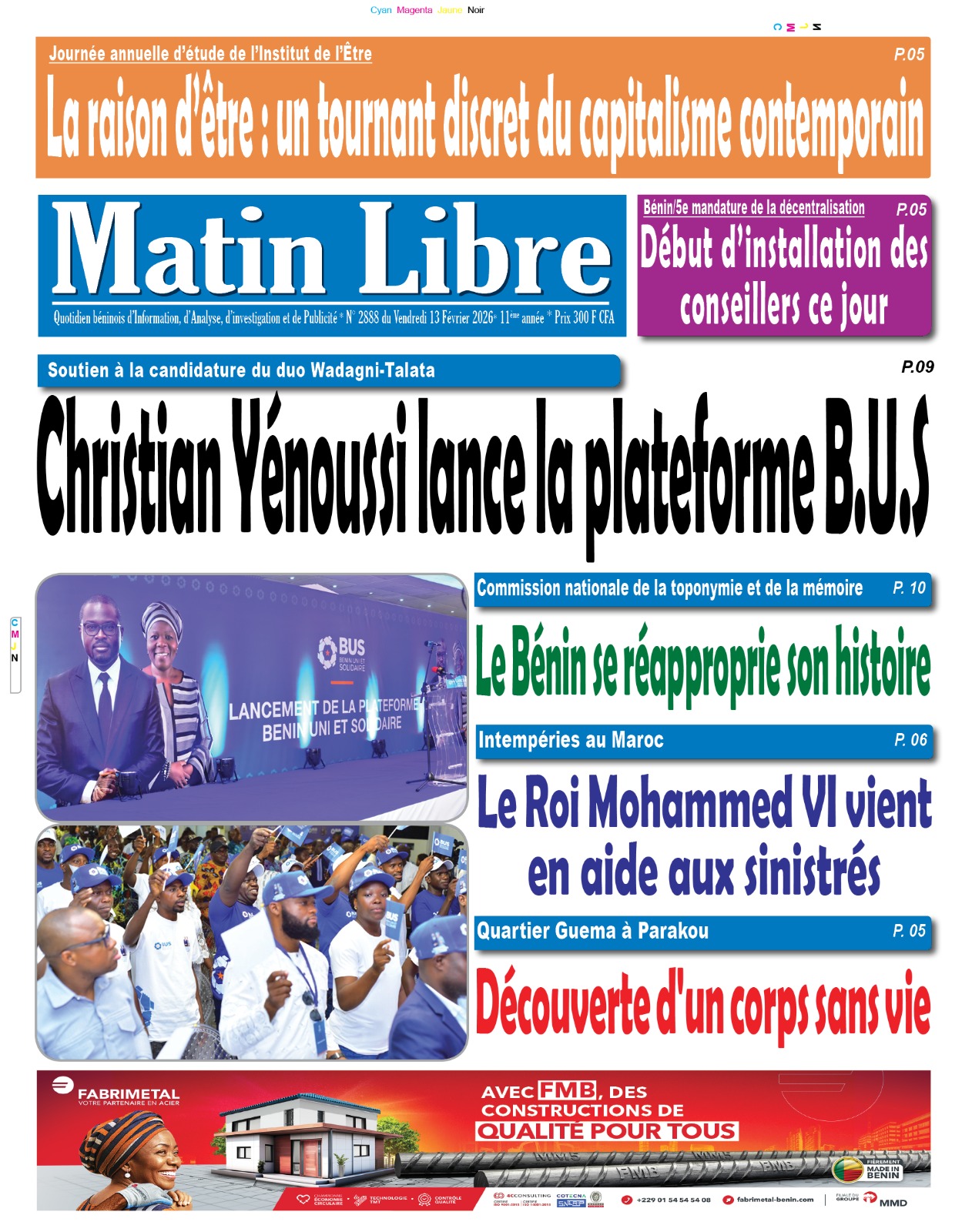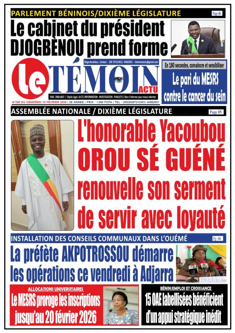 Bénin : les journaux du vendredi 13 février 2026