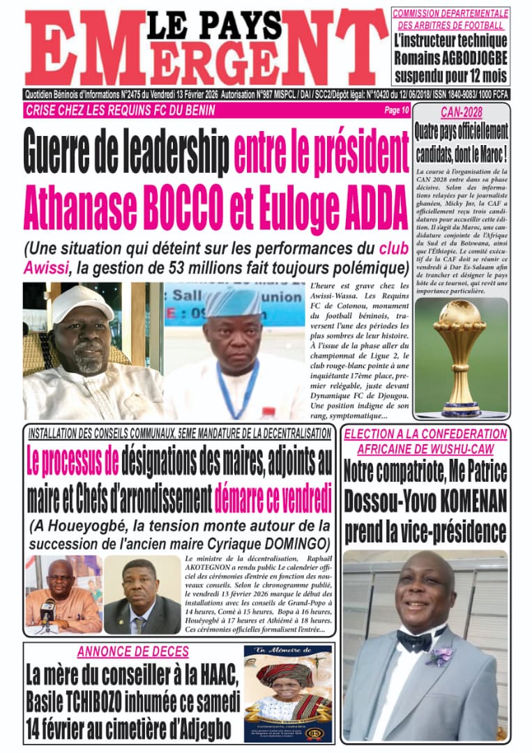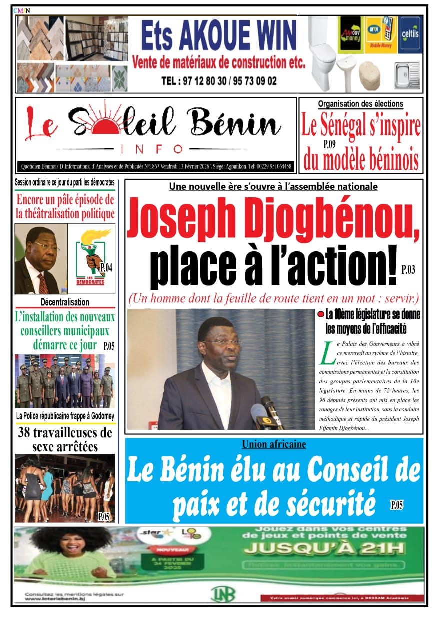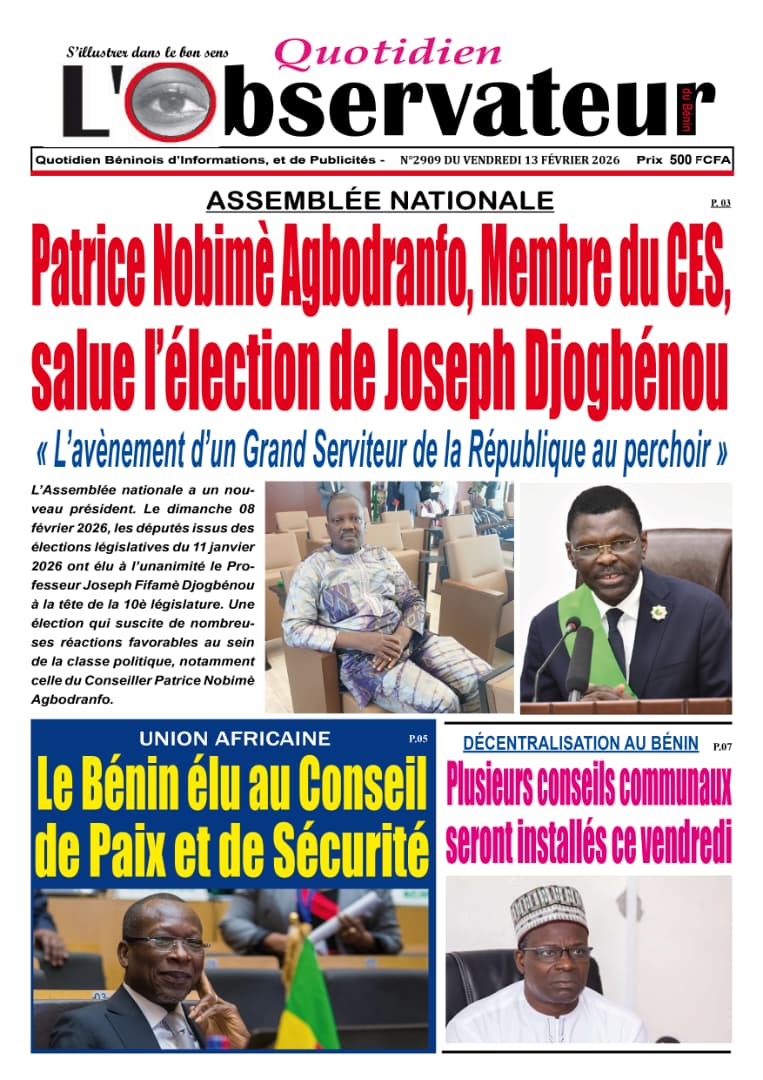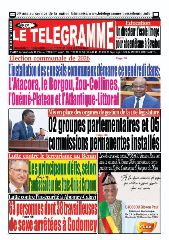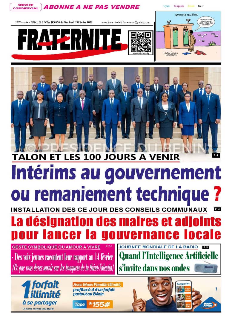 Photos. Les journaux béninois du vendredi 13 février 2026