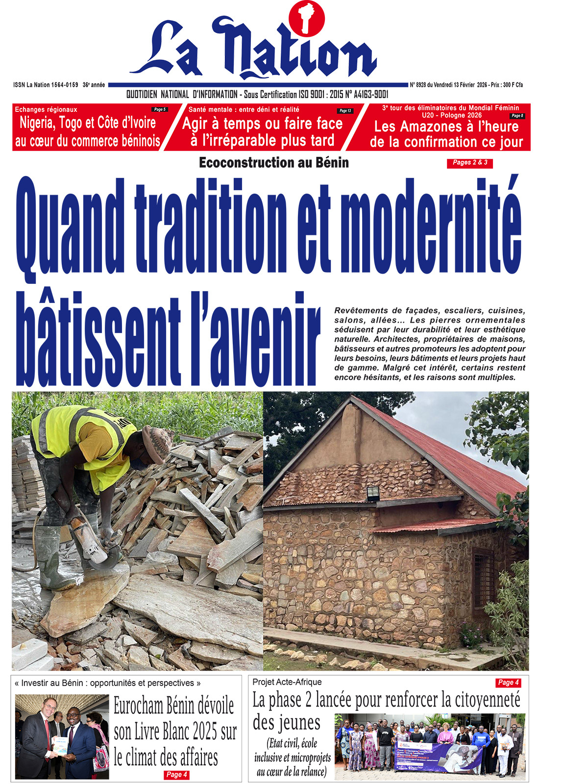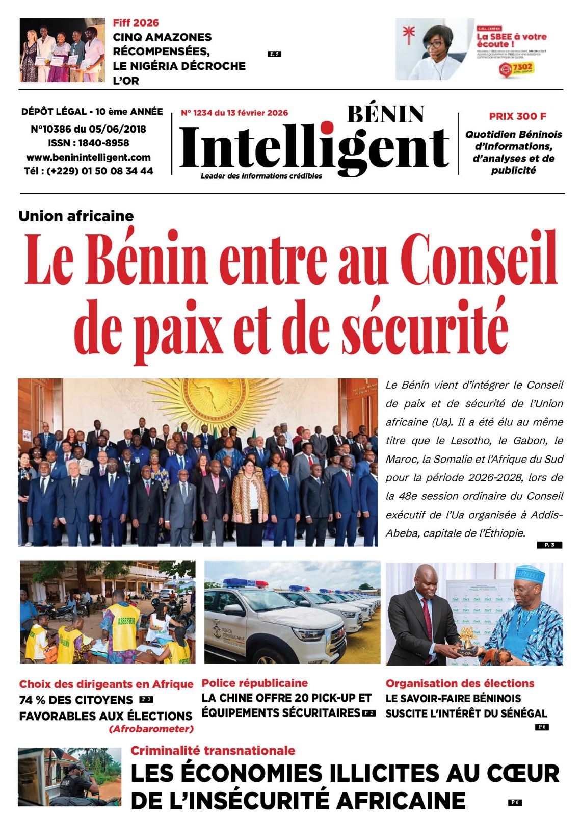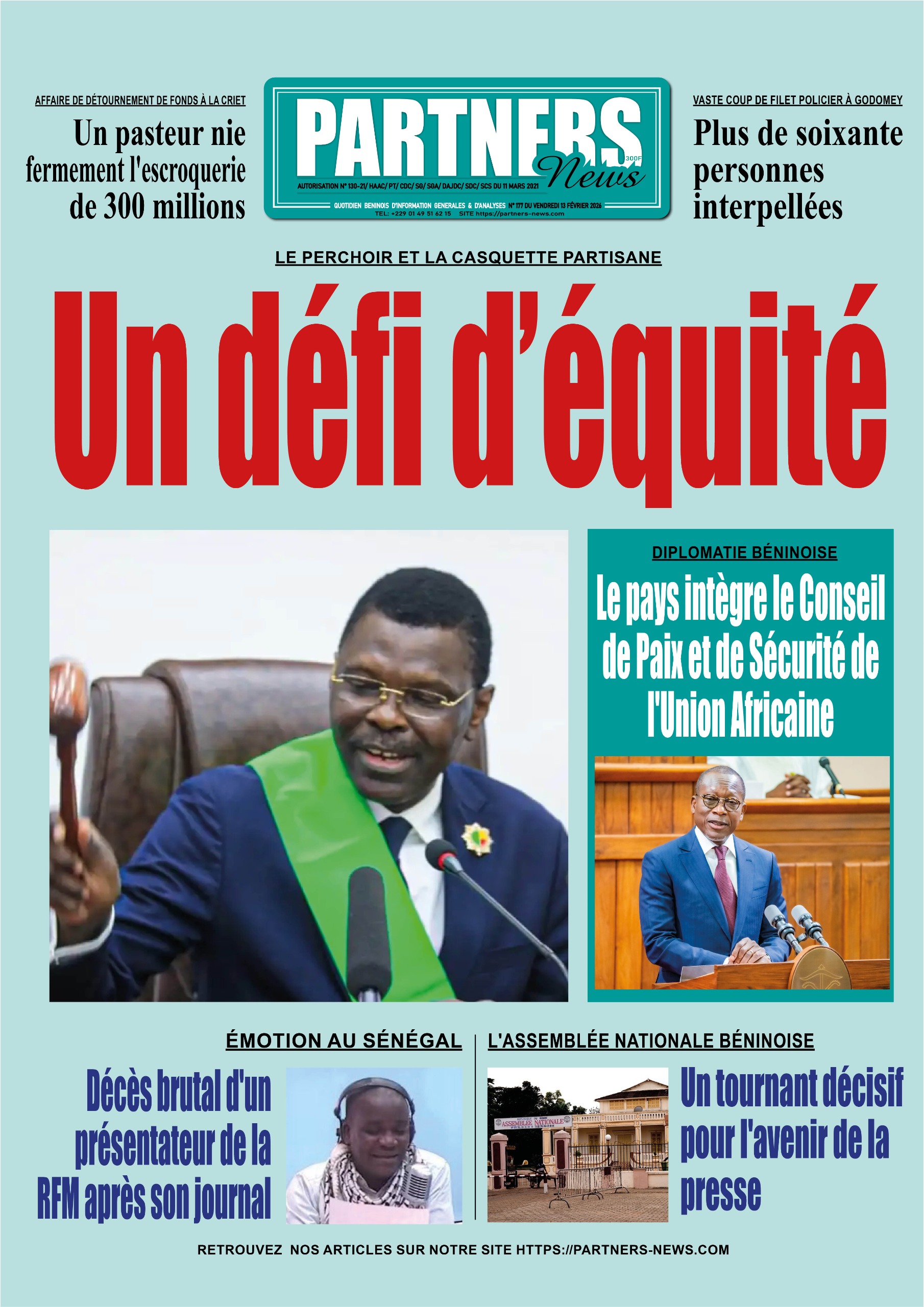 Photos. Les journaux béninois du vendredi 13 février 2026