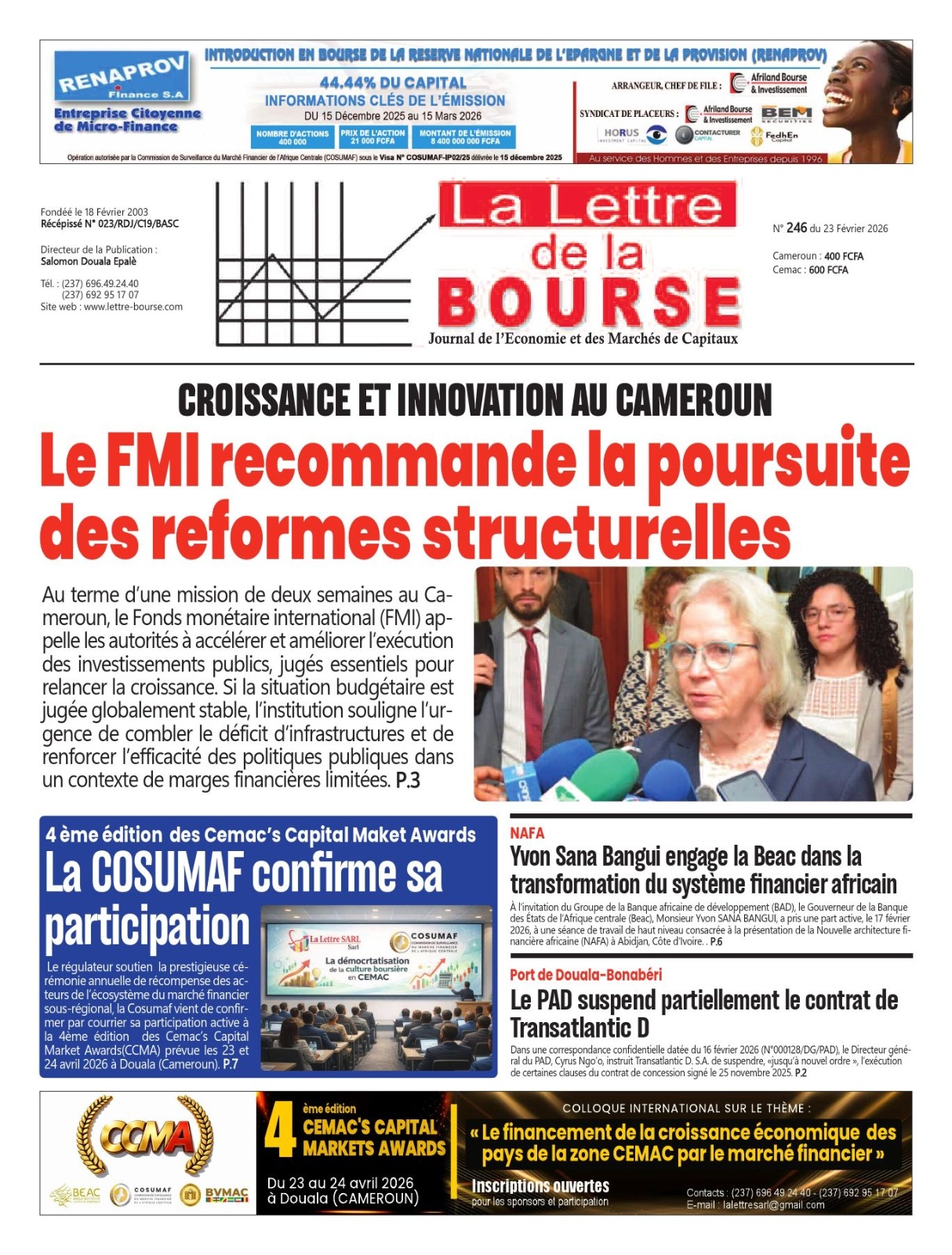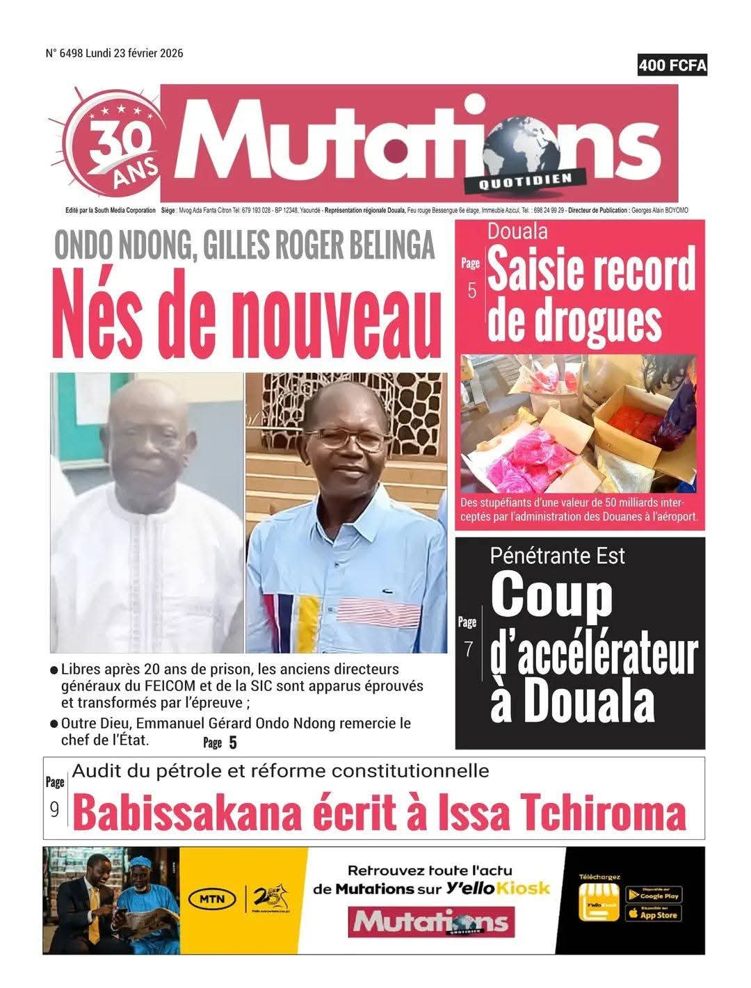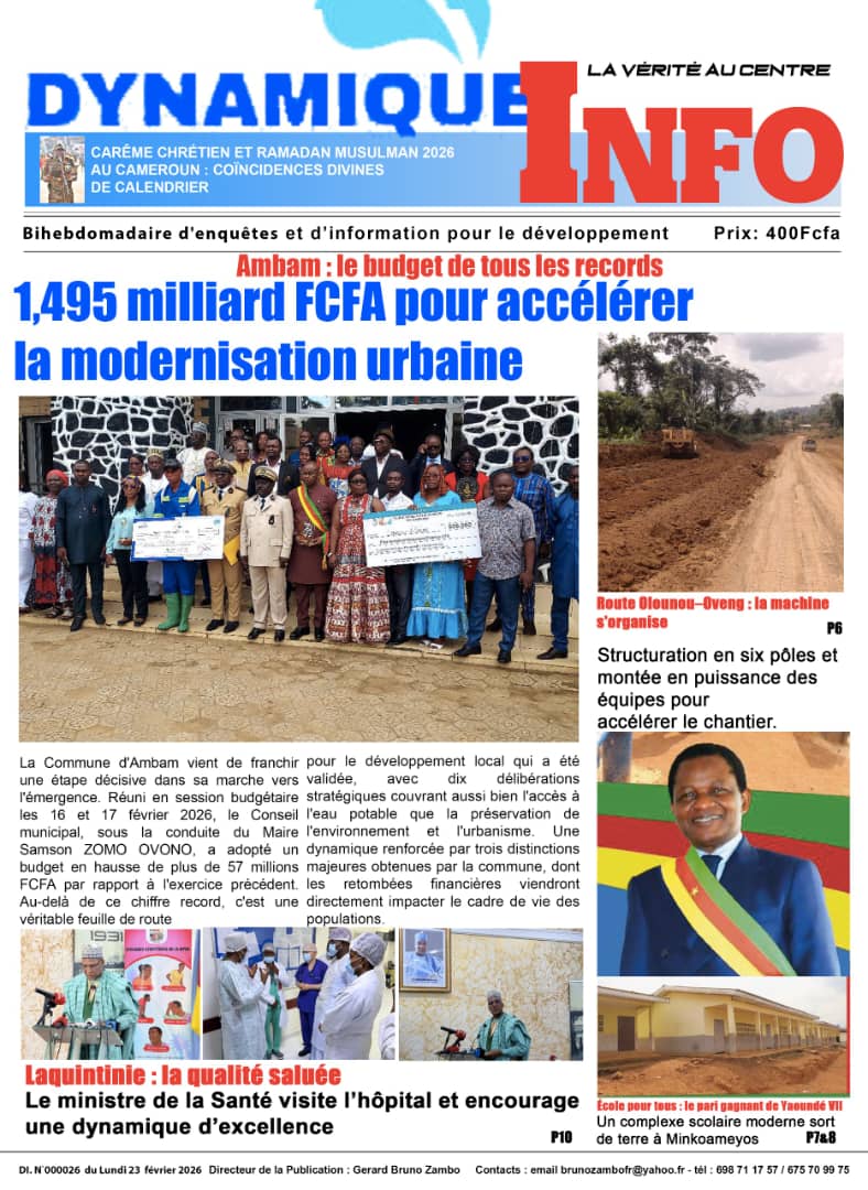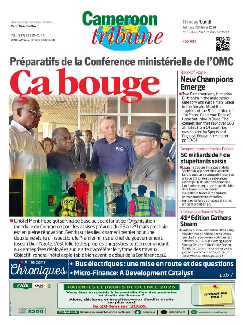 Cameroun : les journaux du lundi 23 février 2026 Lire les UNES du Cameroun