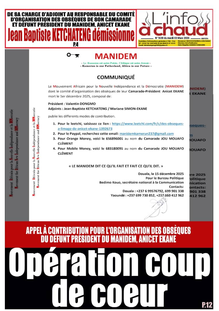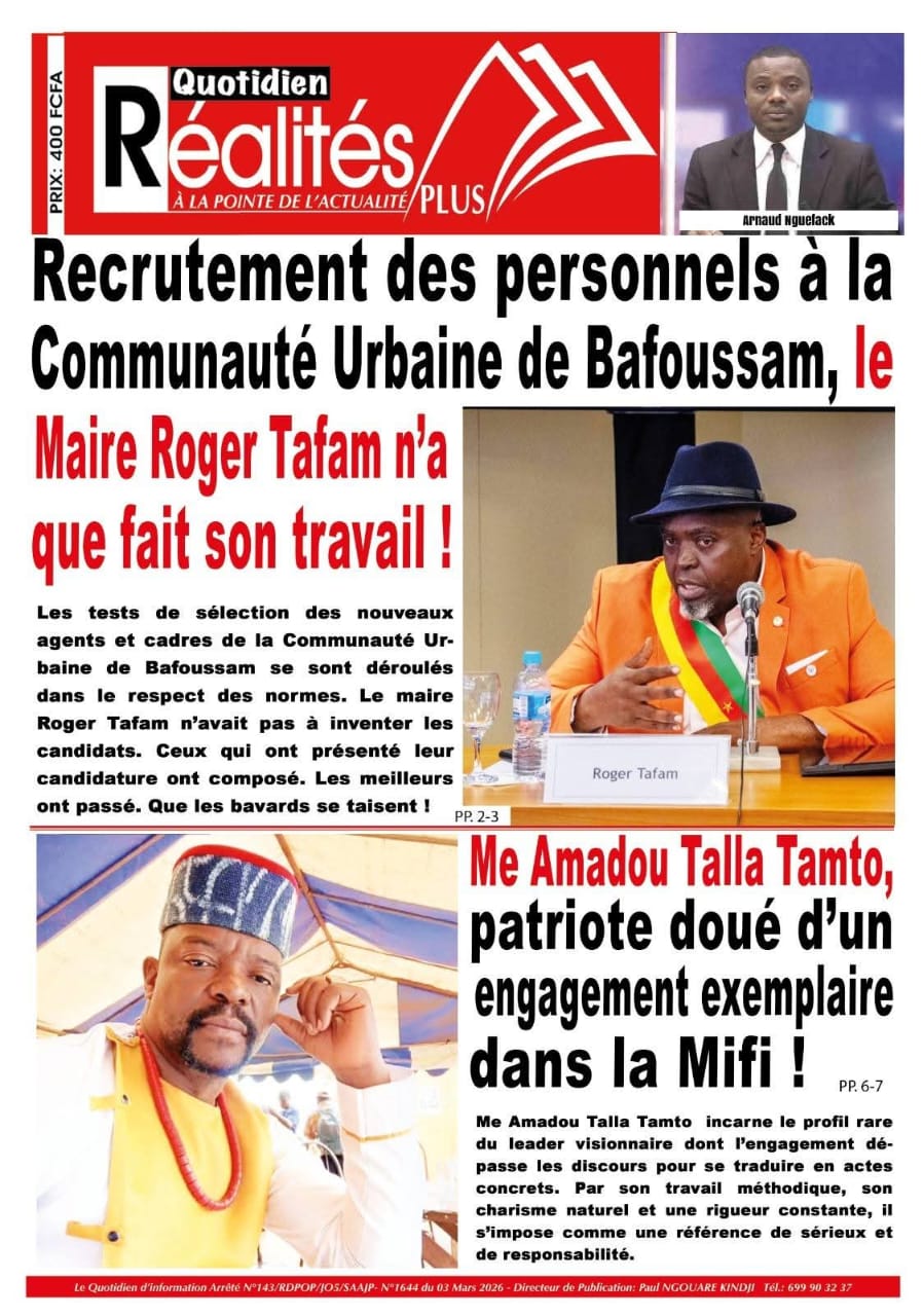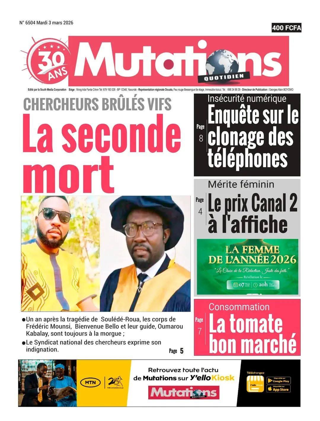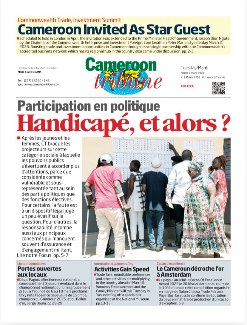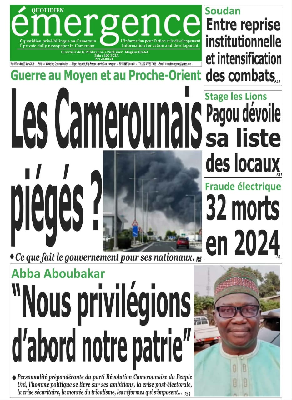 Cameroun : les journaux du mardi 03 mars 2026 Lire les UNES du Cameroun