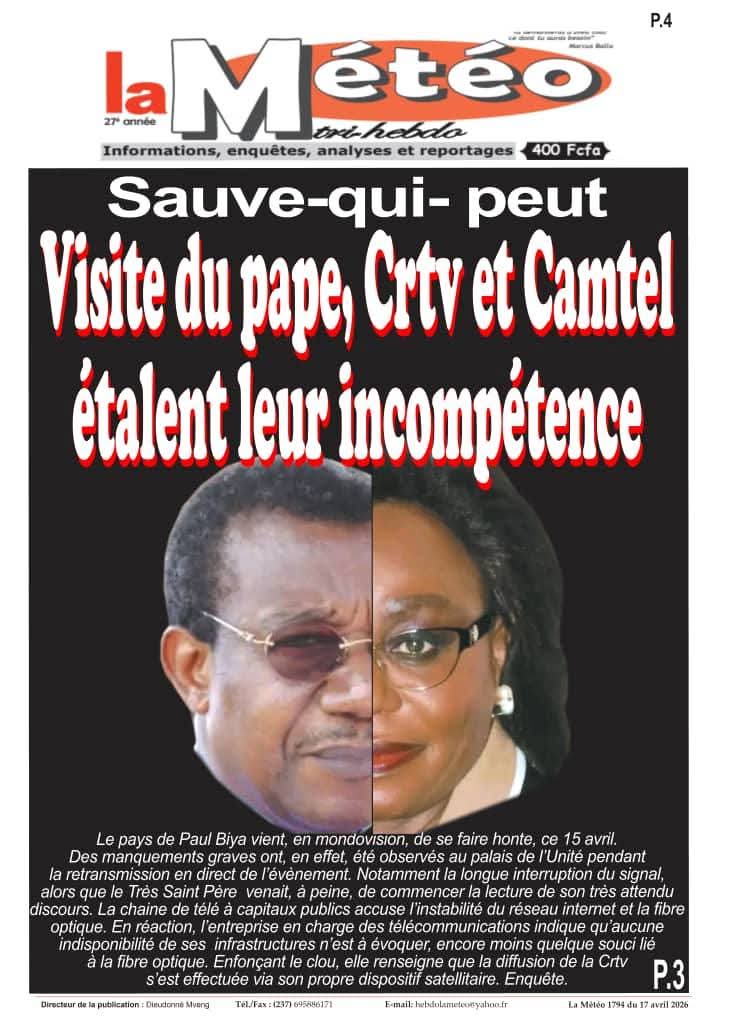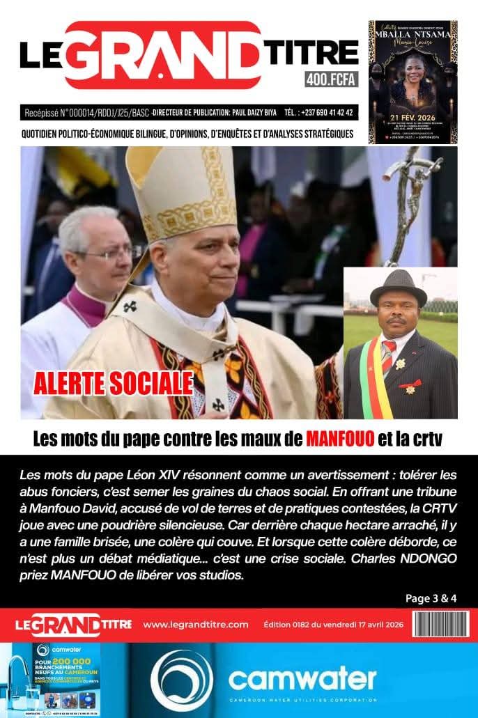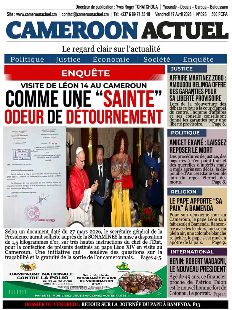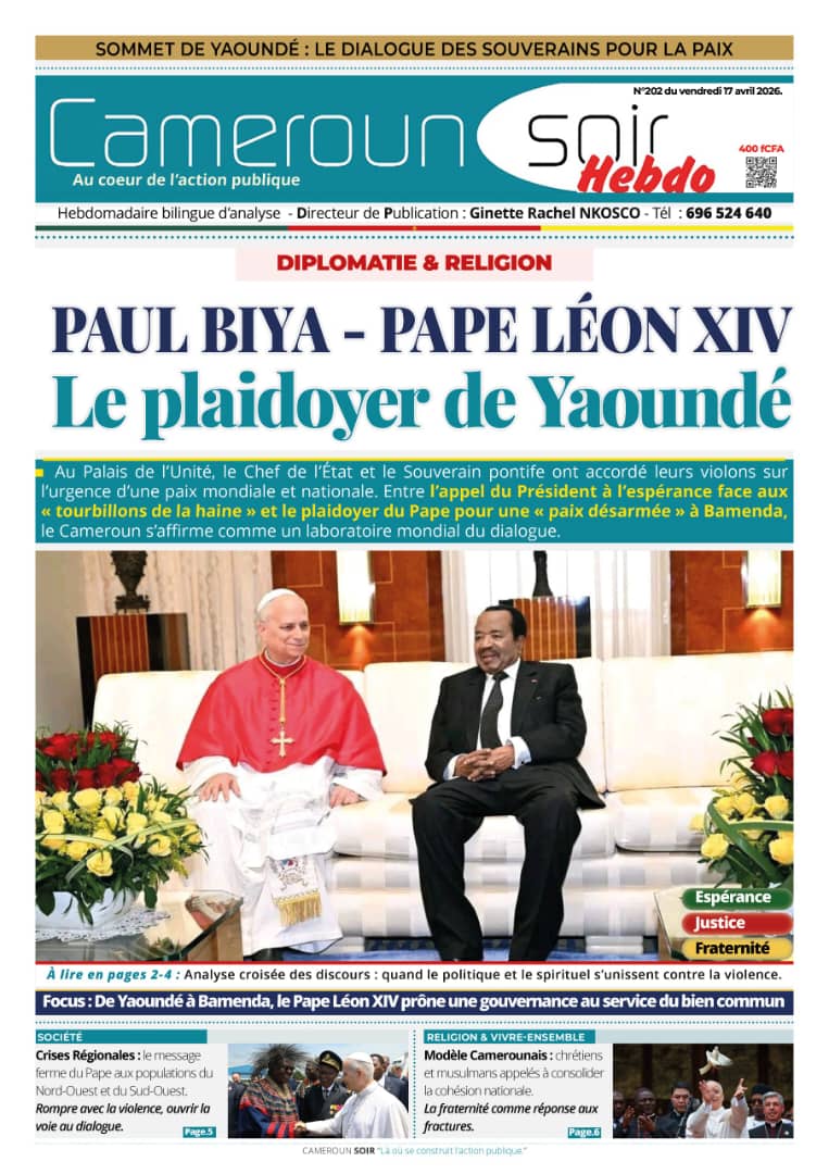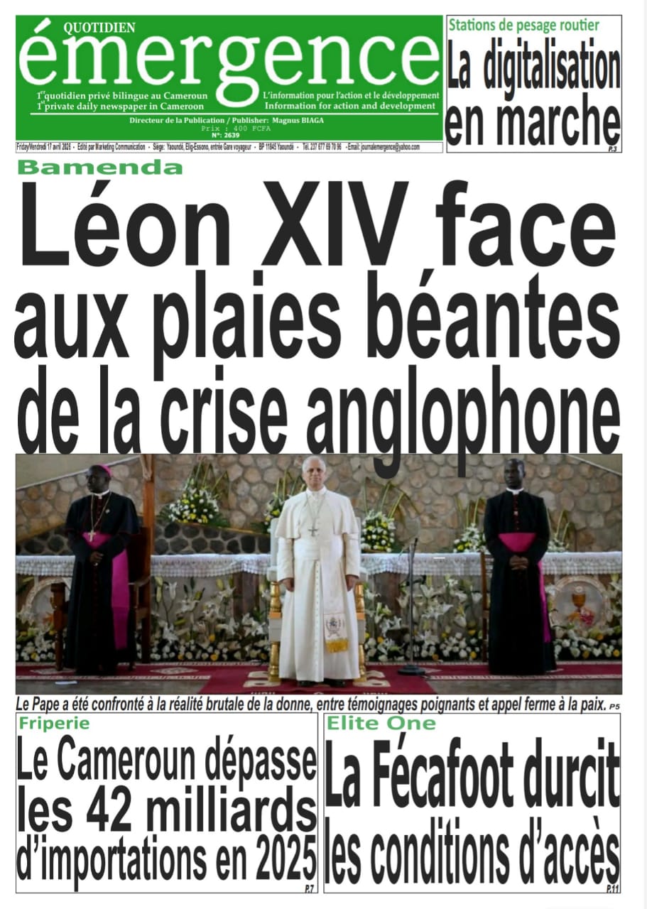 Cameroun : les journaux du vendredi 17 avril 2026 ont comme sujet principal la visite du Pape Léon XIV et notamment de l’étape de Bamenda, dans la partie anglophone du pays secouée par des revendications indépendantistes.