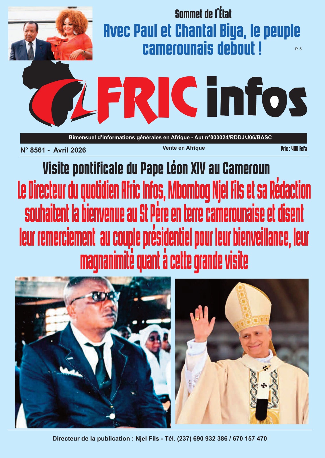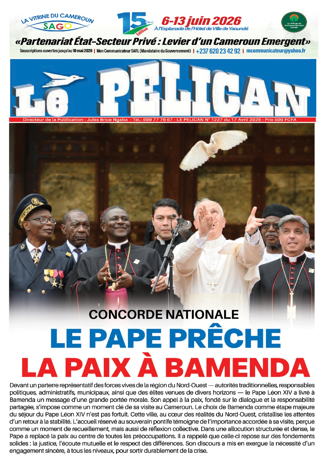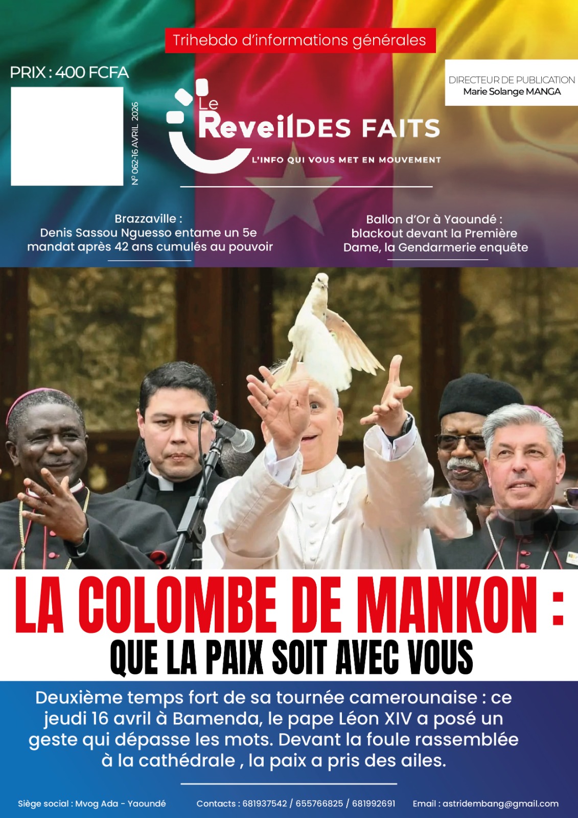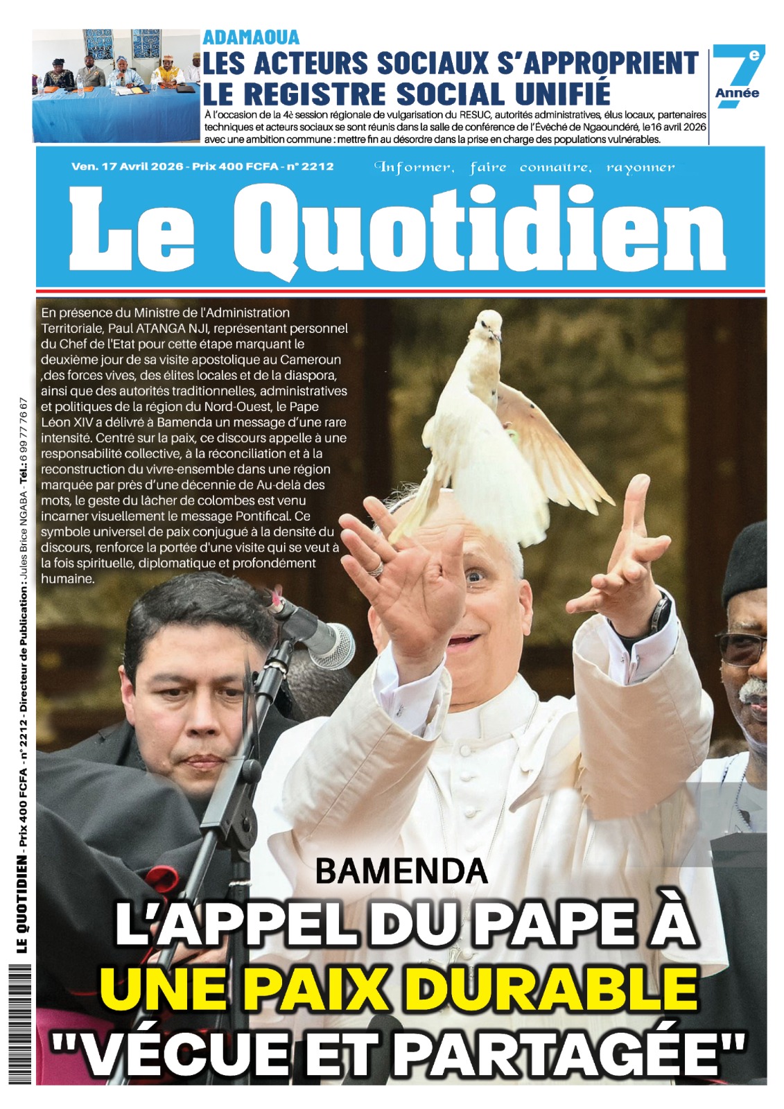 Cameroun : les journaux du vendredi 17 avril 2026 ont comme sujet principal la visite du Pape Léon XIV et notamment de l’étape de Bamenda, dans la partie anglophone du pays secouée par des revendications indépendantistes.