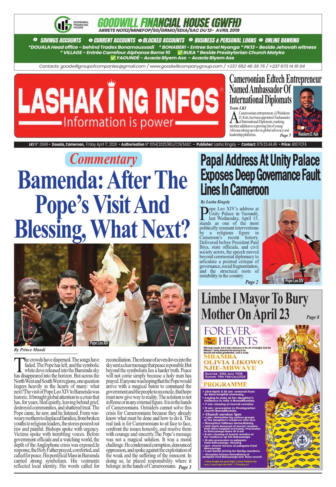 Les journaux camerounais du vendredi 17 avril 2026