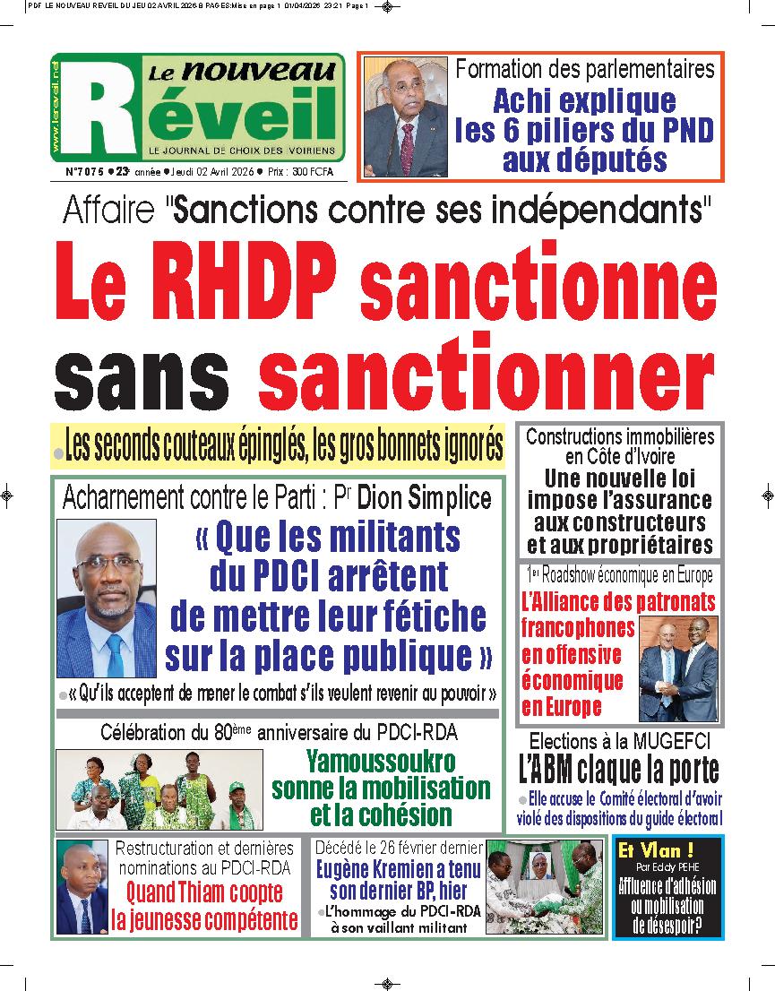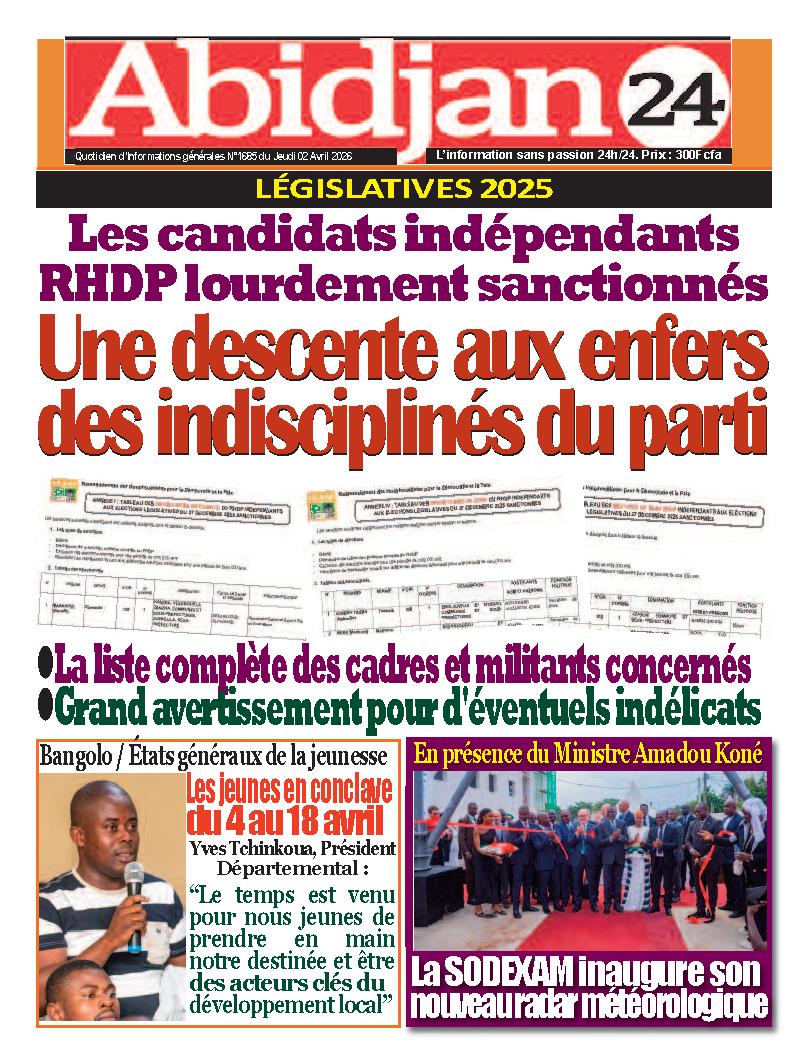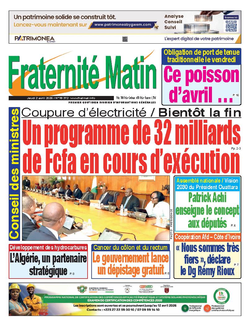 Côte d'Ivoire : les journaux du jeudi 02 avril 2026 Lire les UNES ivoiriennes