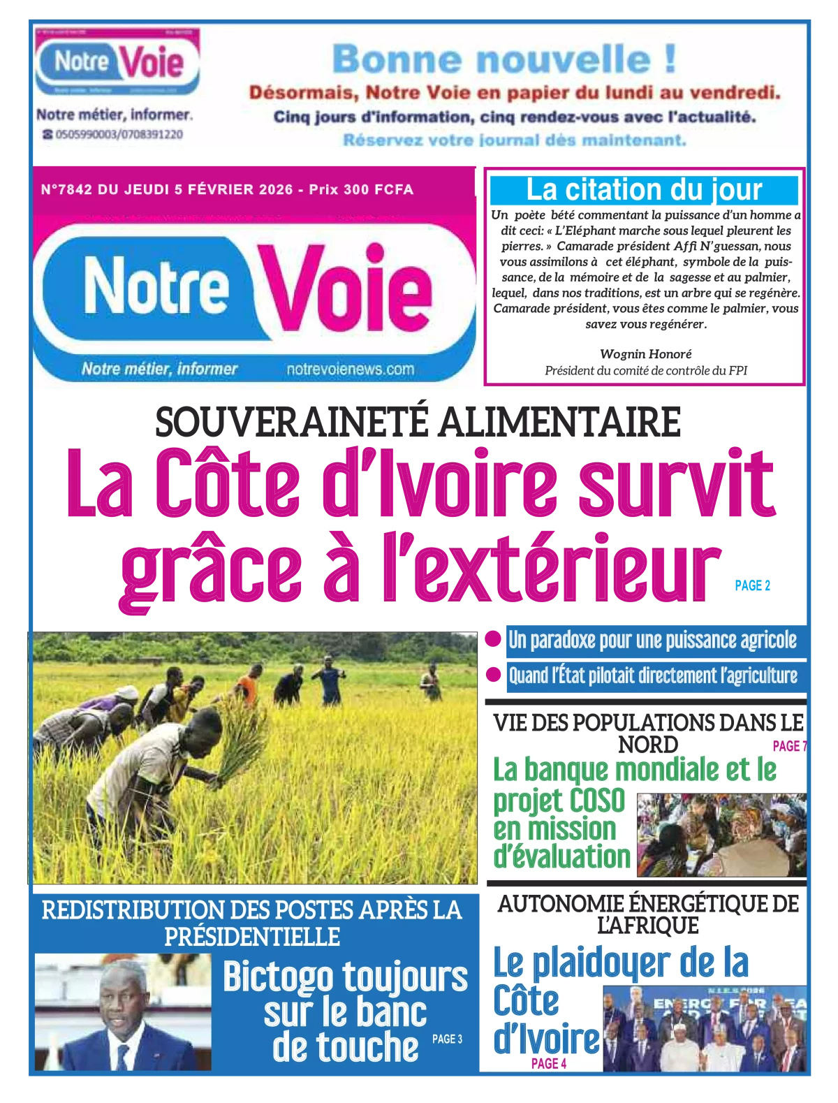 Côte d'Ivoire : les journaux du jeudi 05 février 2026 Lire les journaux de Côte d'Ivoire