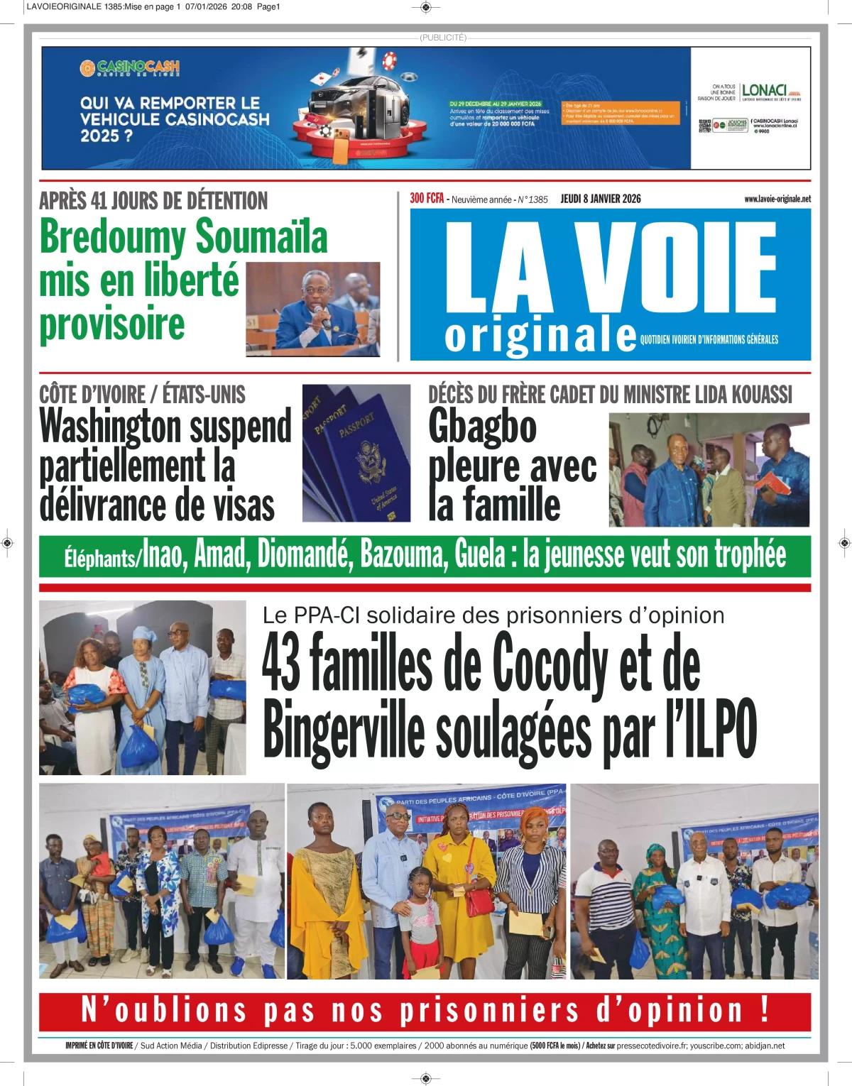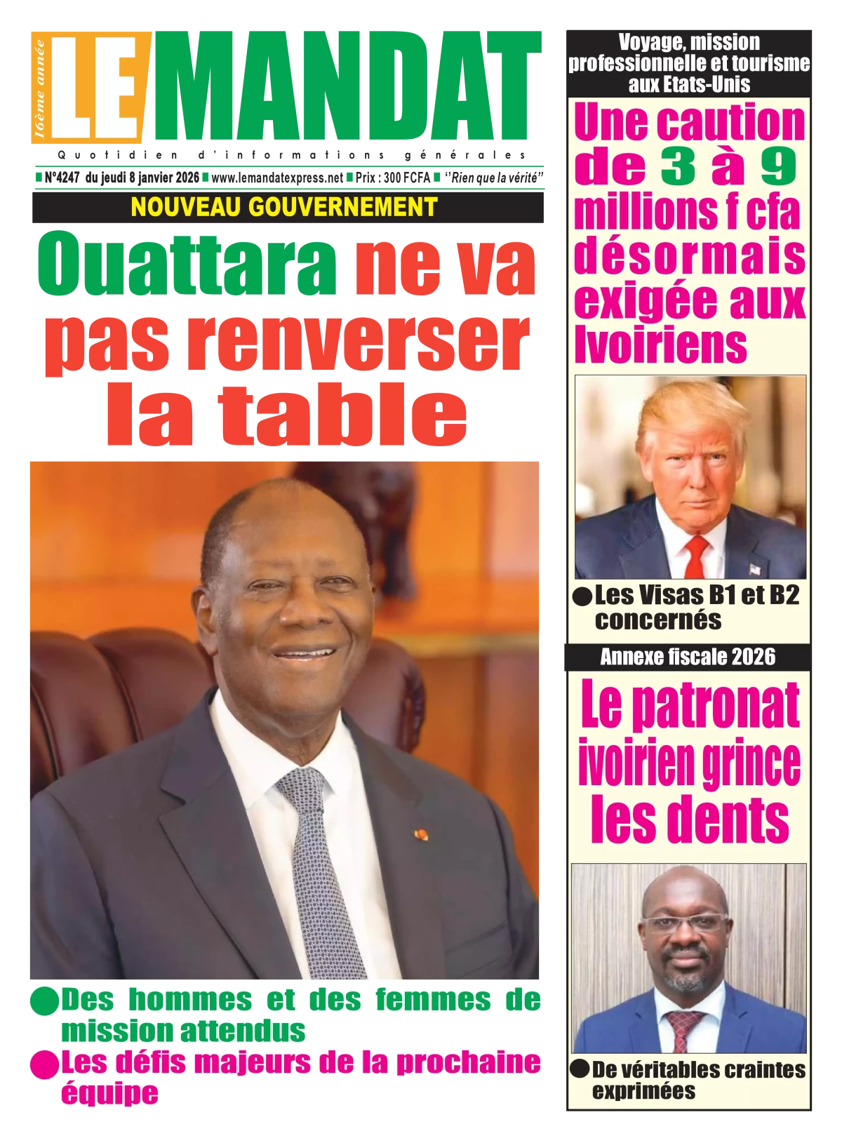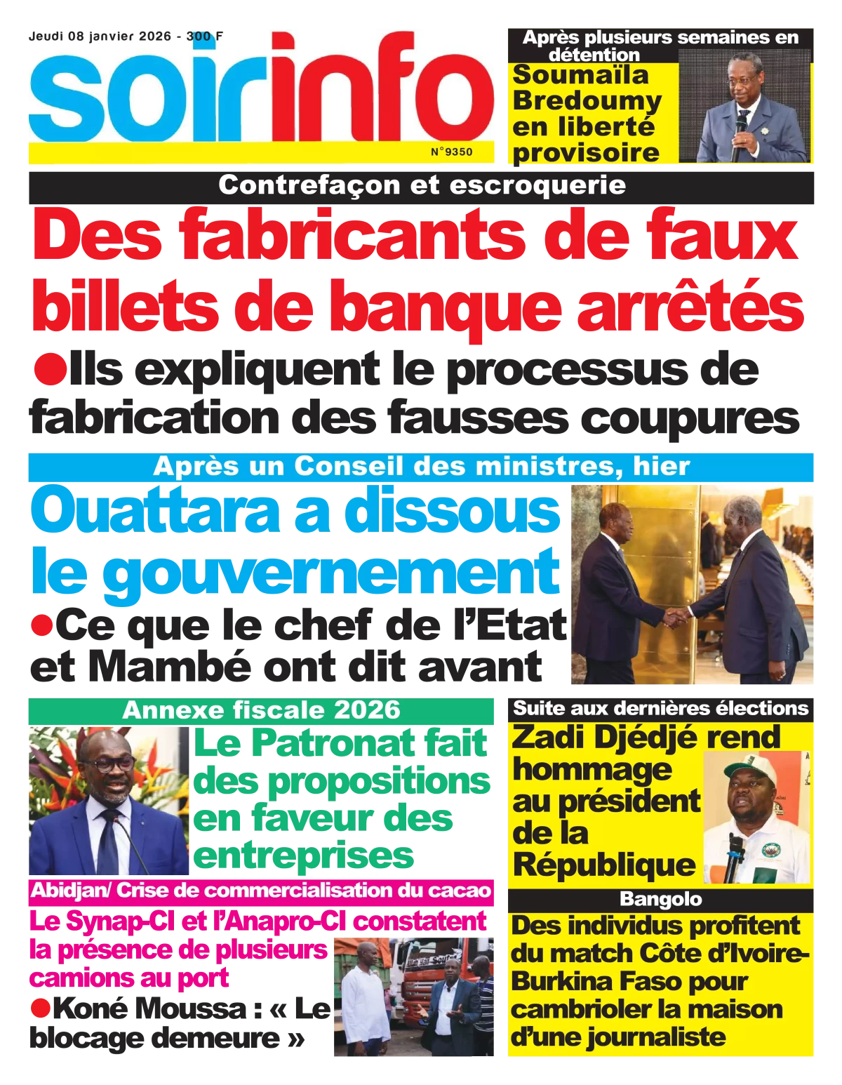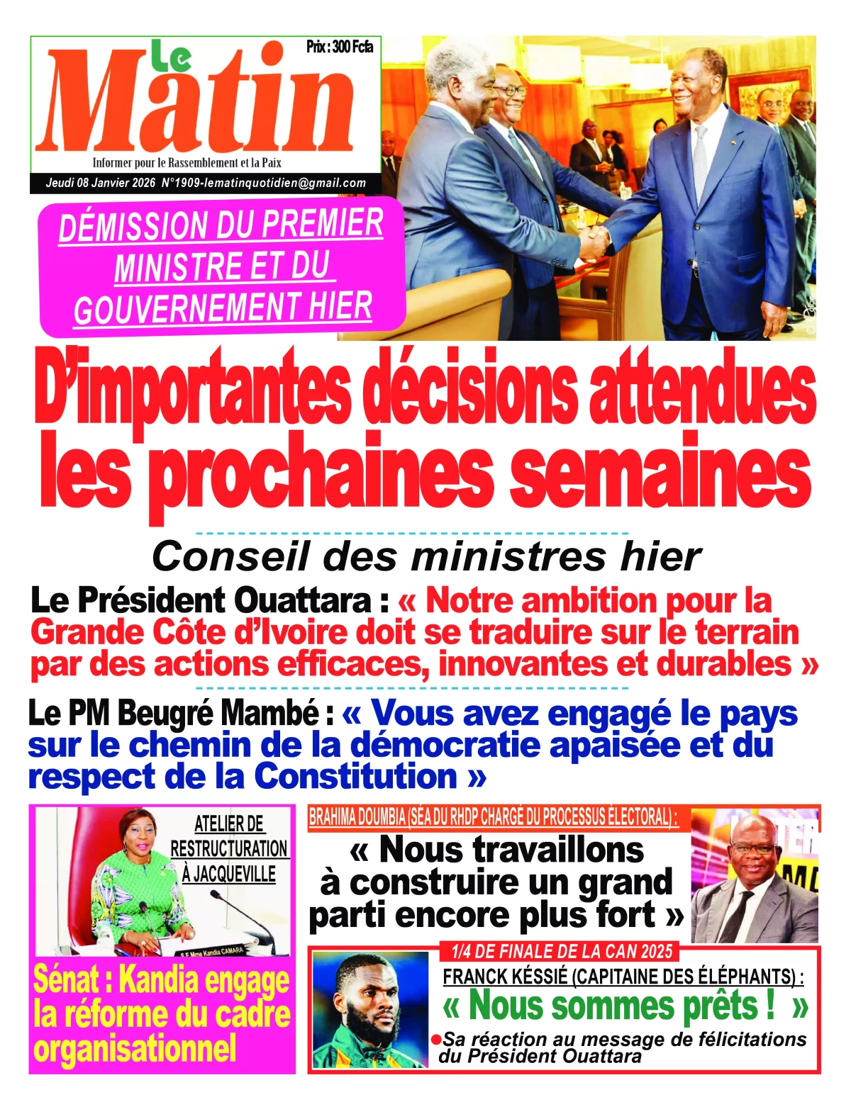 Côte d'Ivoire : les journaux du jeudi 08 janvier 2026