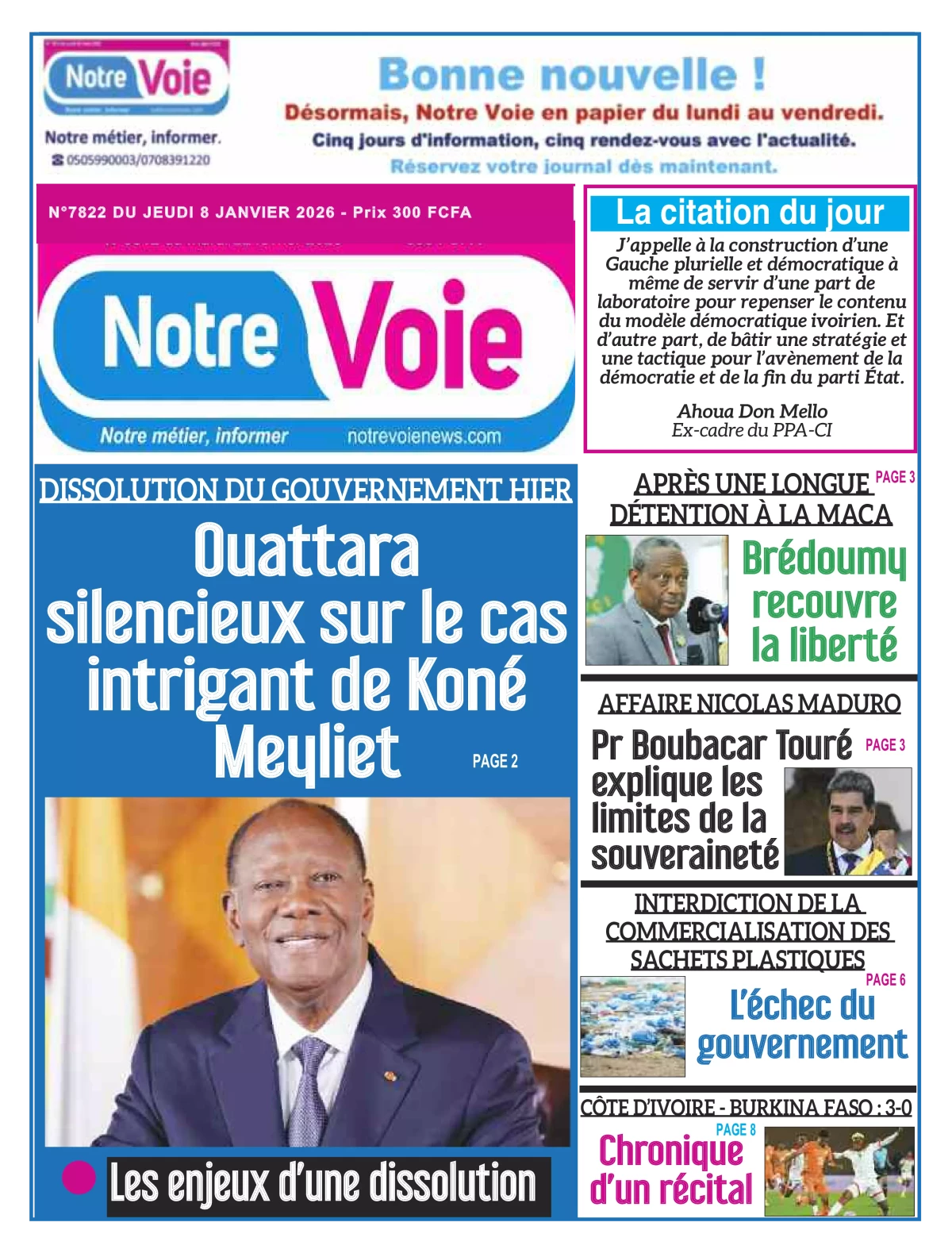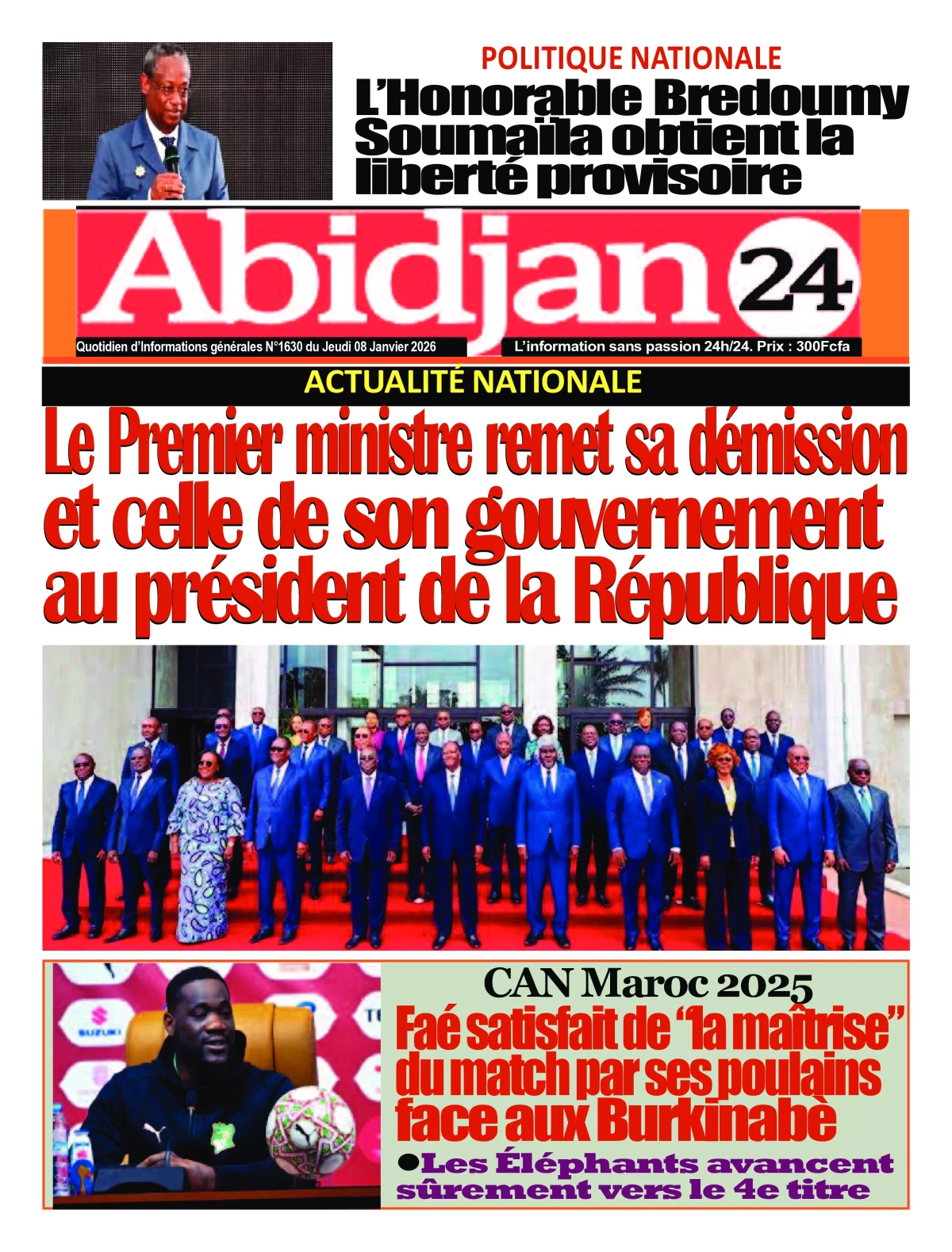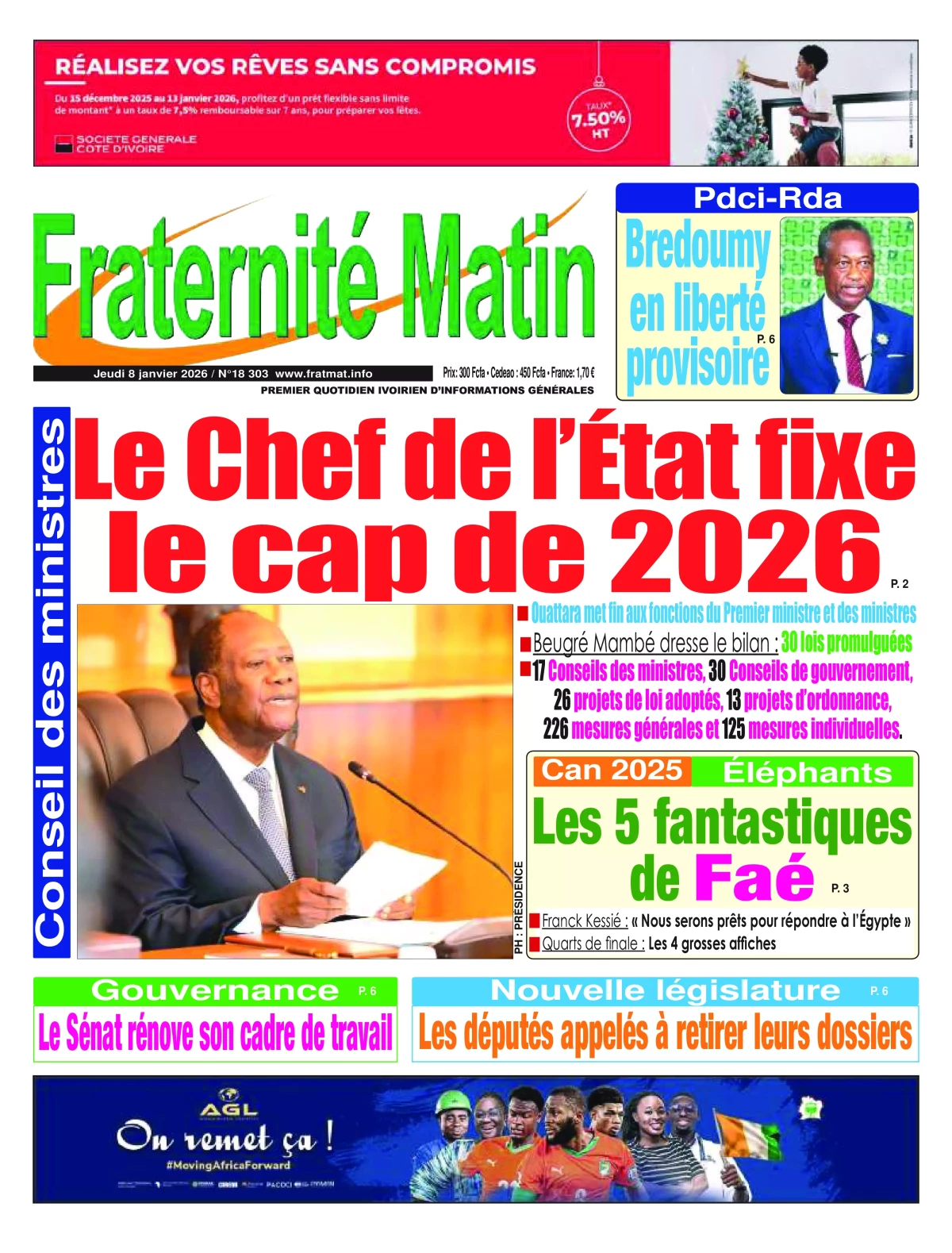 Photos. Les journaux de Côte d’Ivoire du jeudi 08 janvier 2026