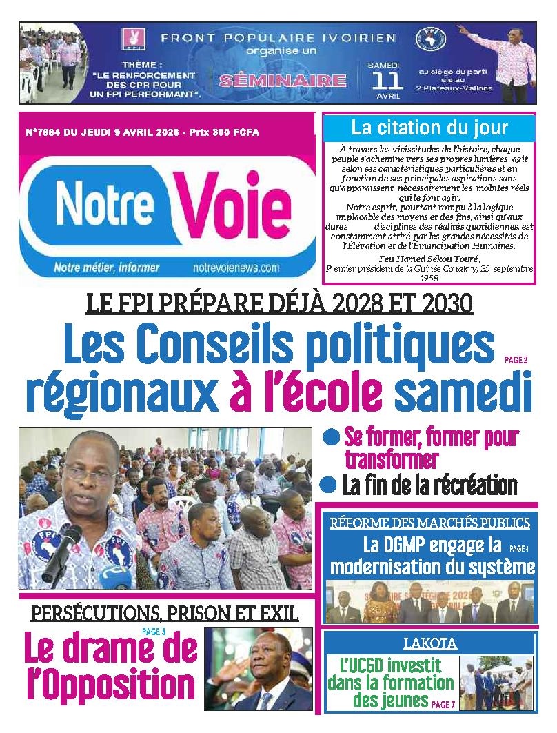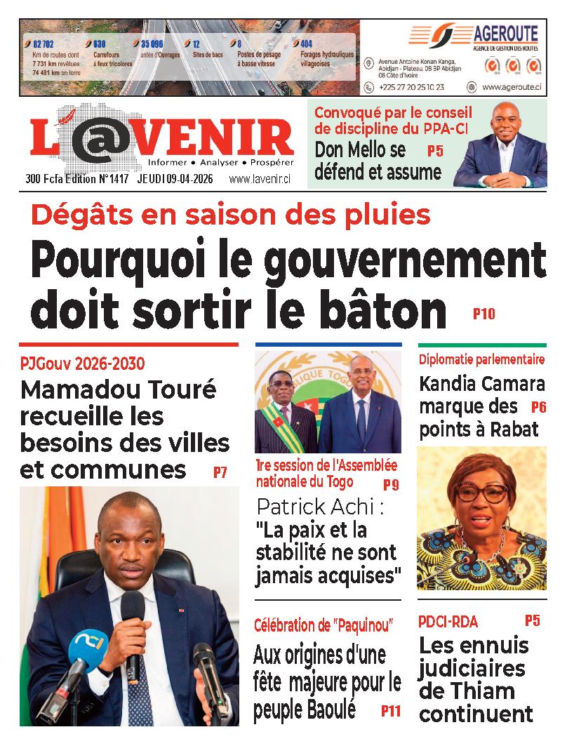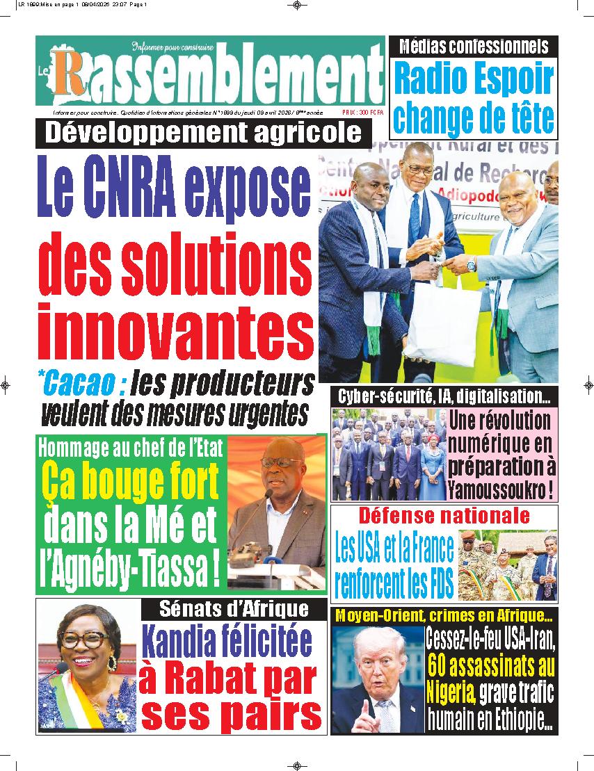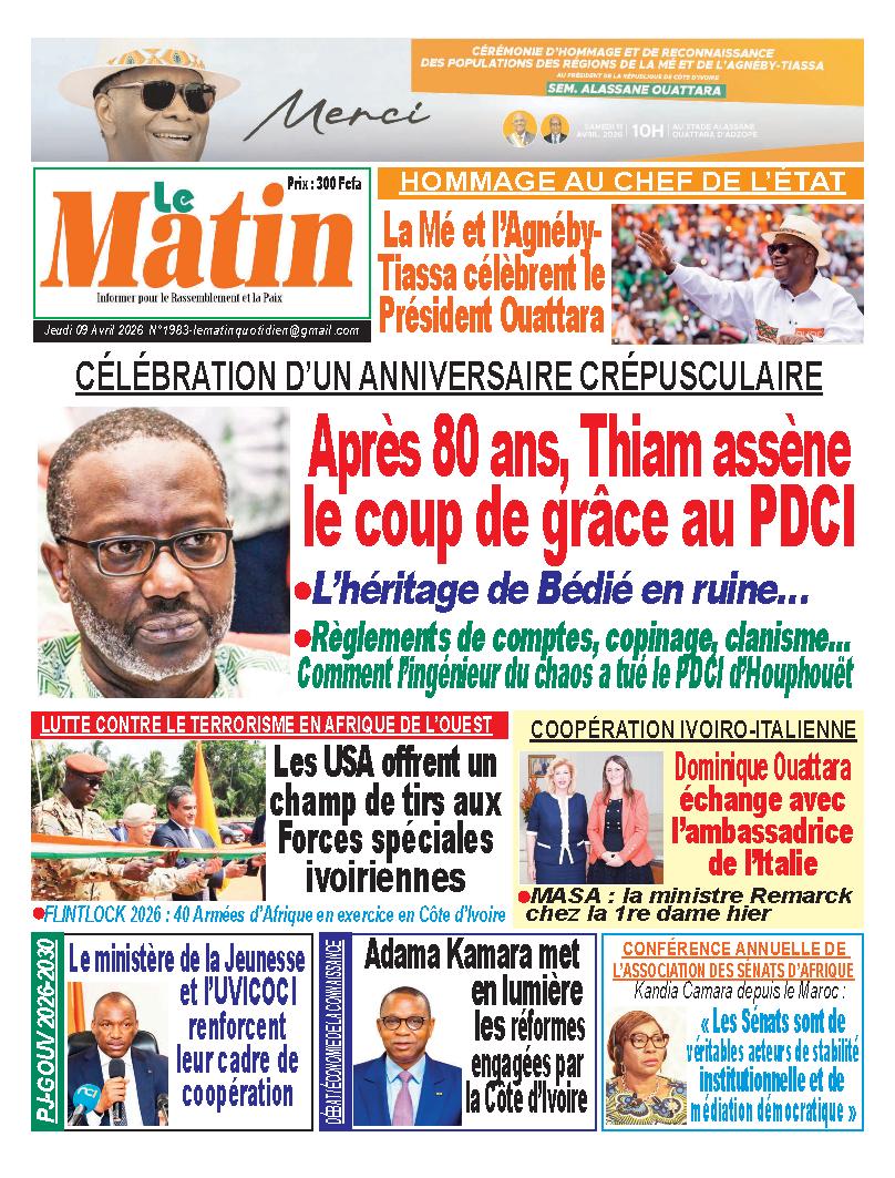 Côte d'Ivoire : les journaux du jeudi 09 avril 2026 Lire les UNES ivoiriennes