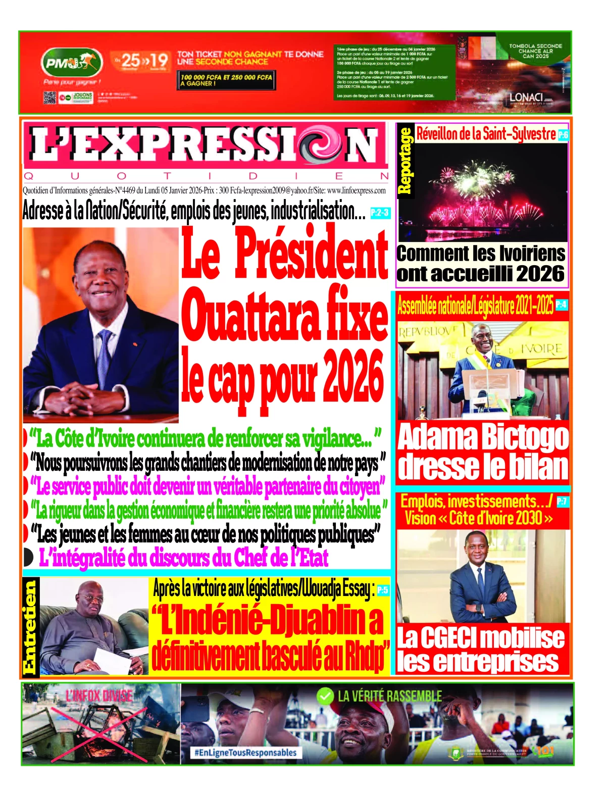 Photos. Les journaux de Côte d’Ivoire du lundi 05 janvier 2026