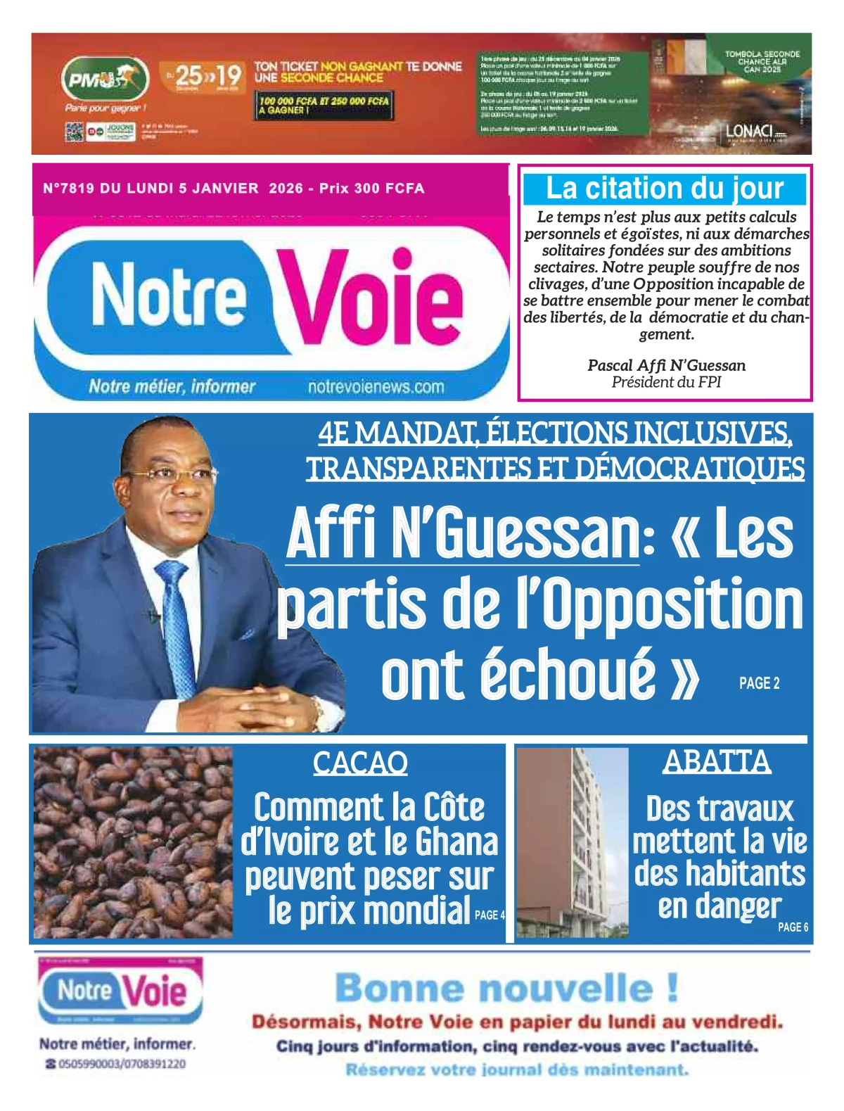 Côte d'Ivoire : les journaux du lundi 05 janvier 2026
