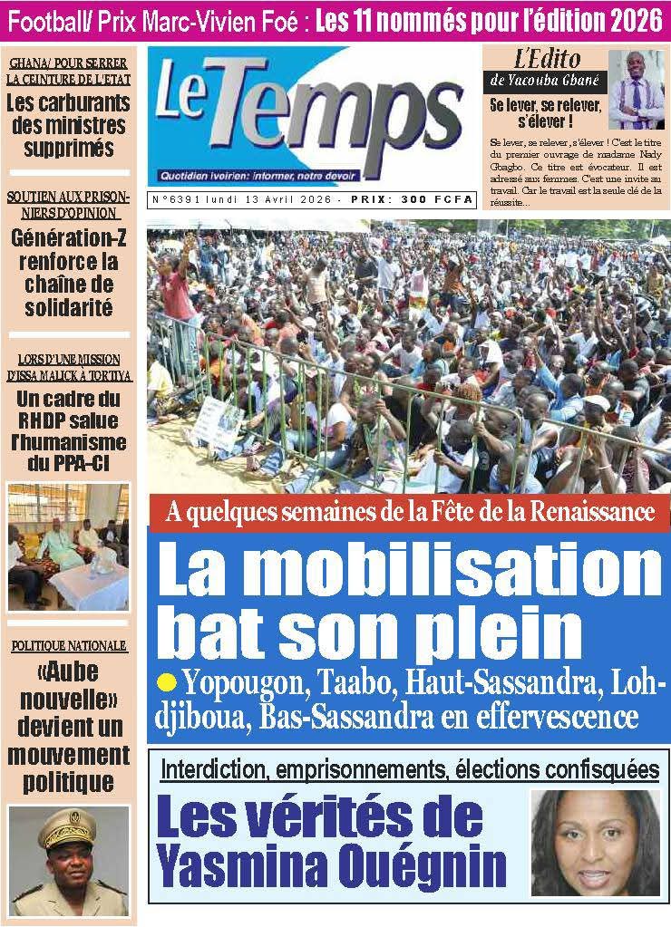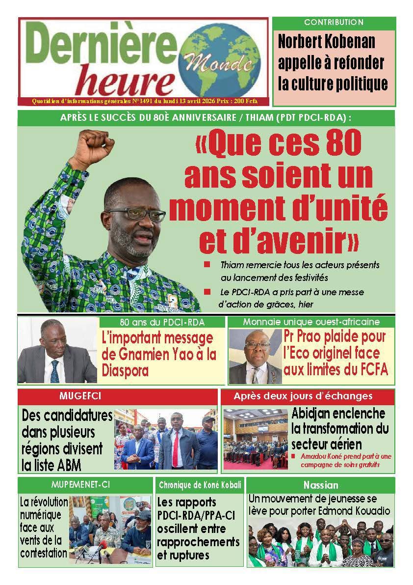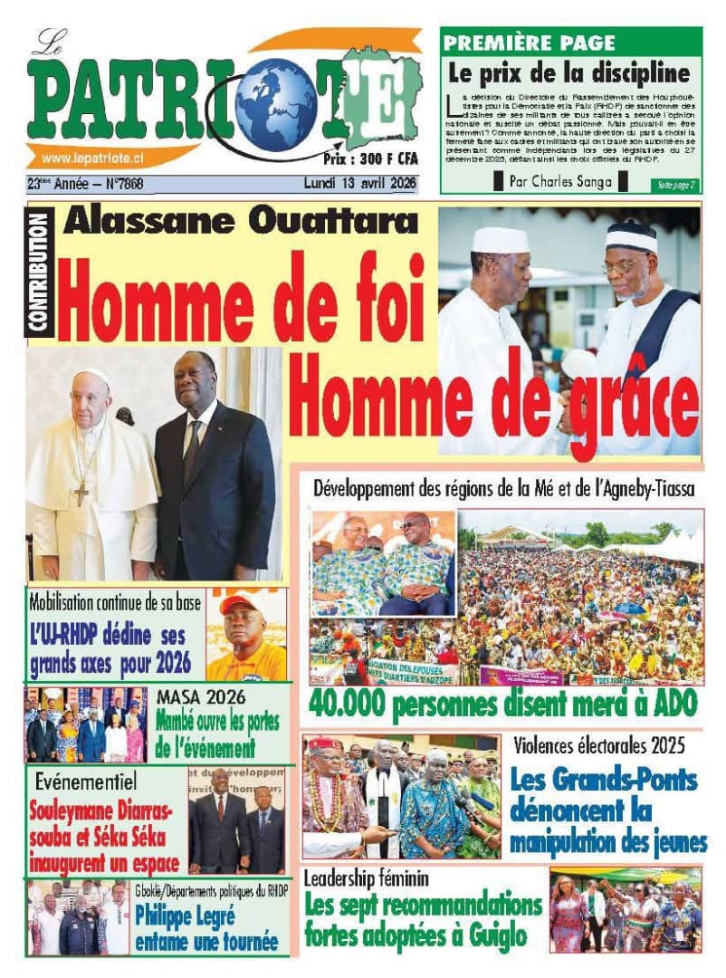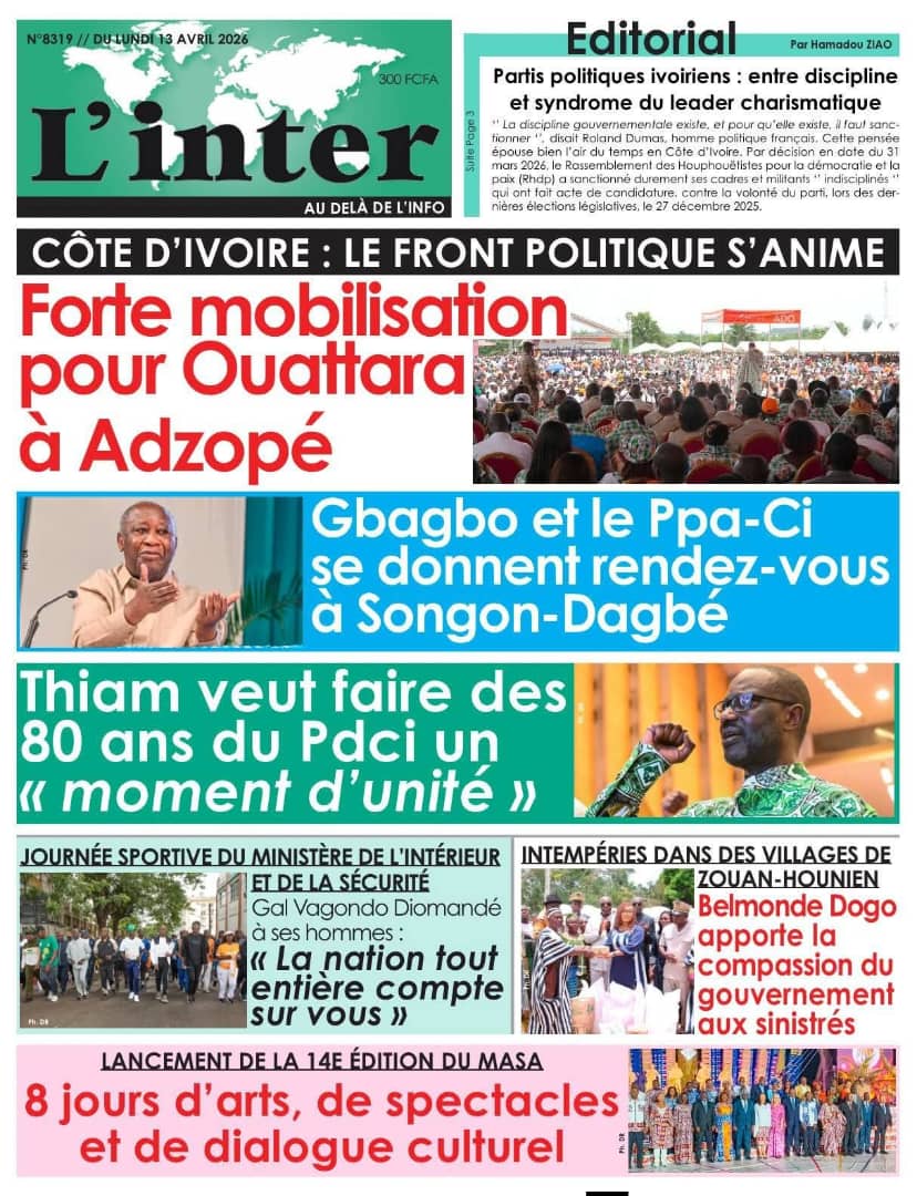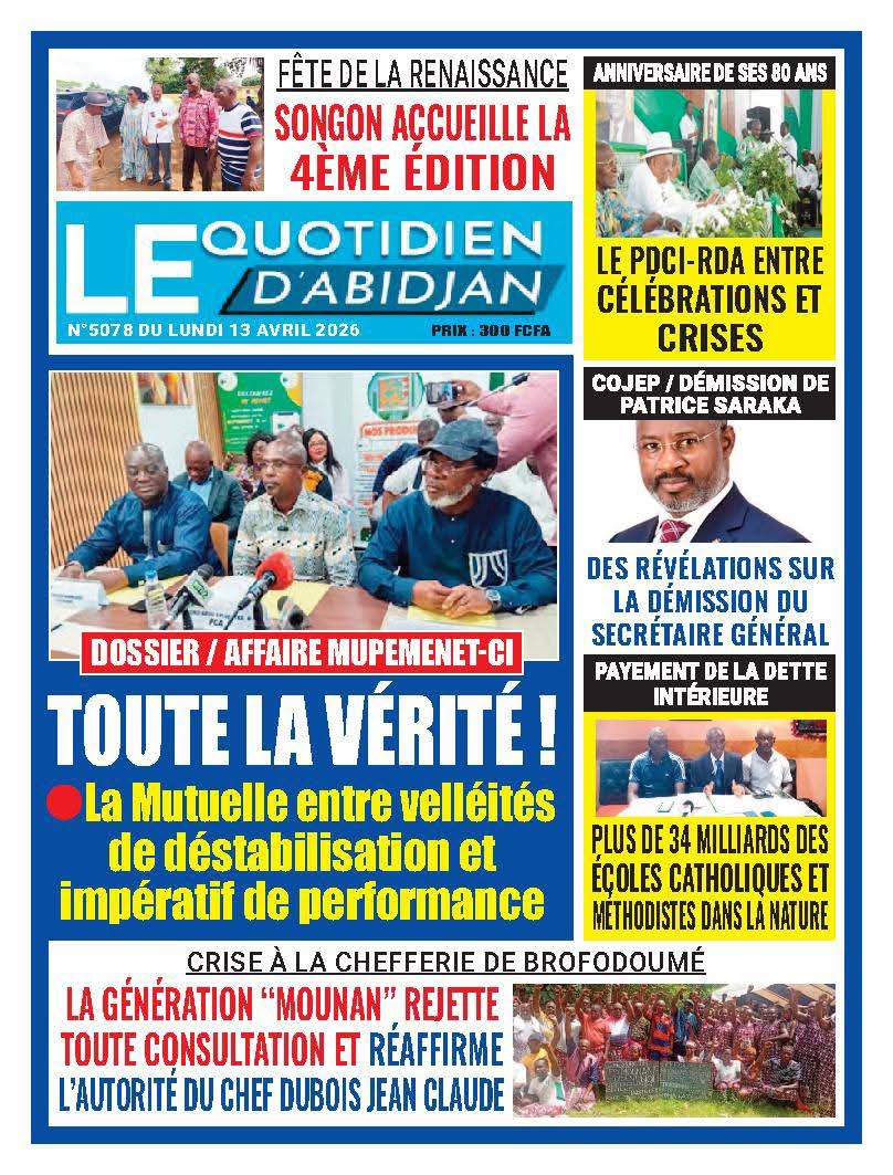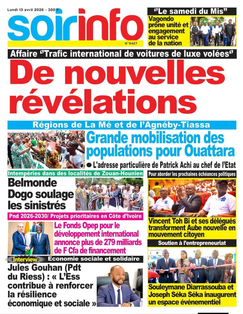 Côte d'Ivoire : les journaux du lundi 13 avril 2026 Lire les UNES ivoiriennes