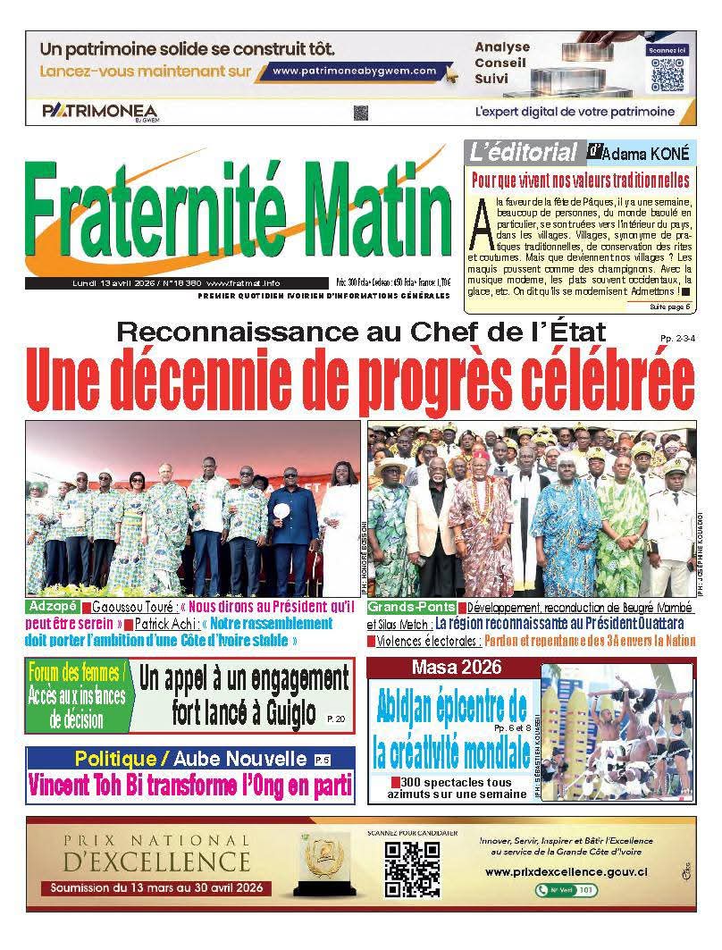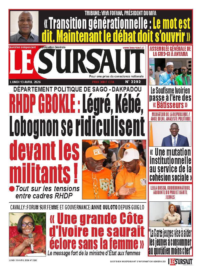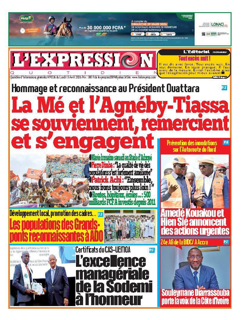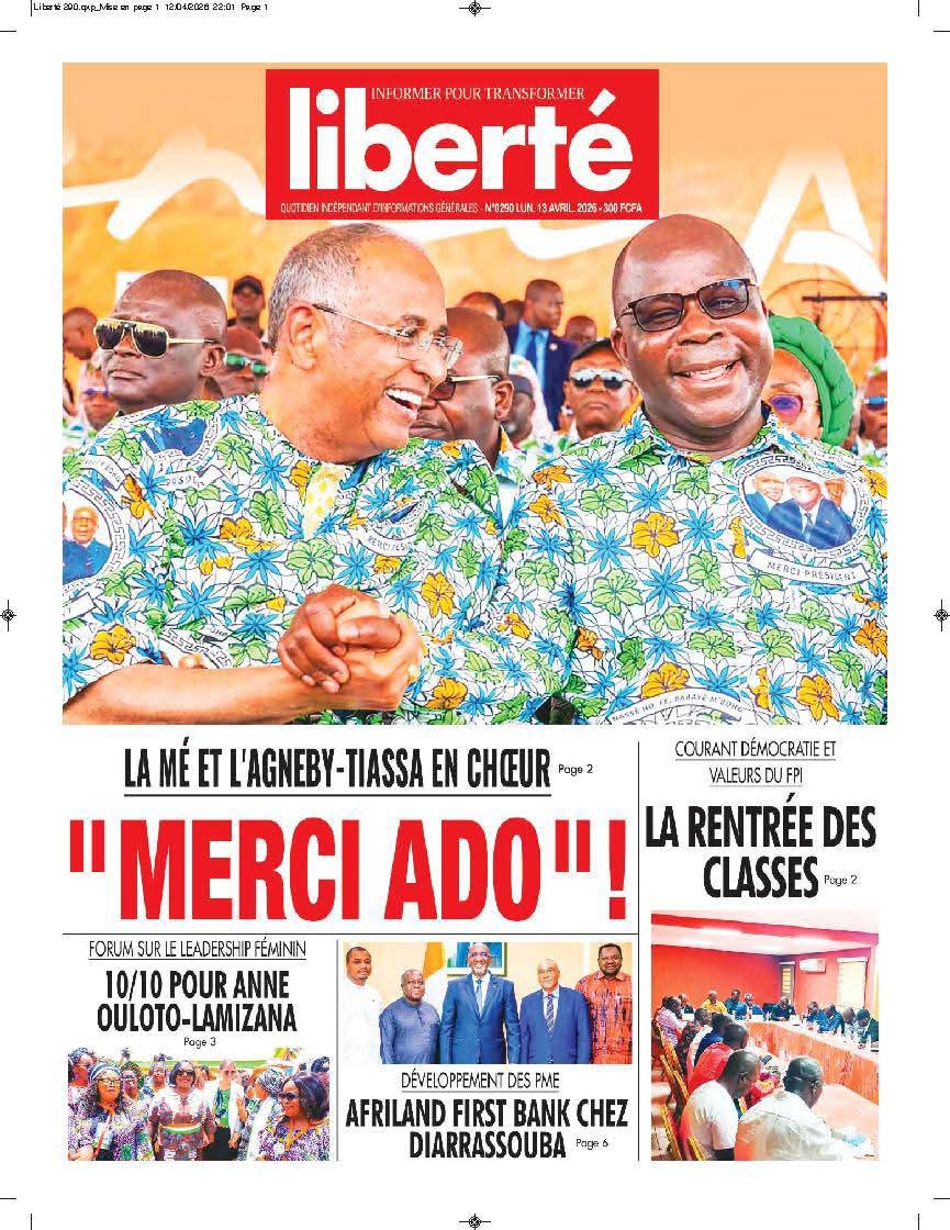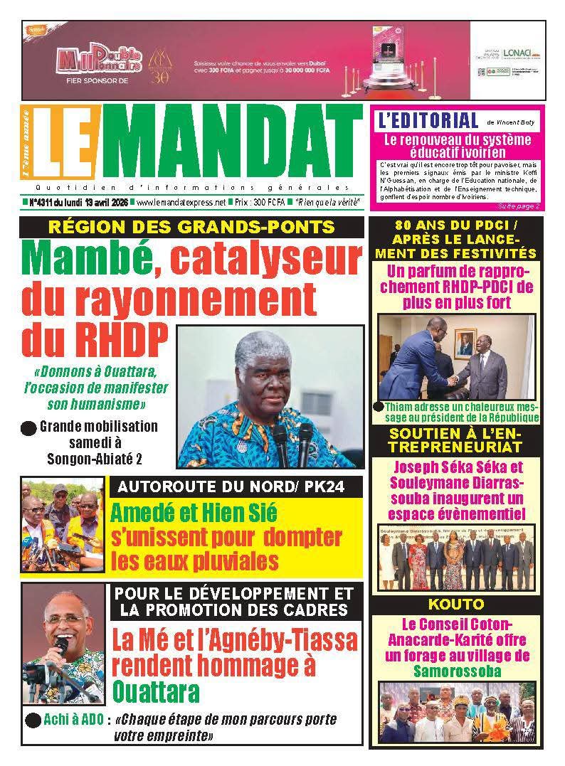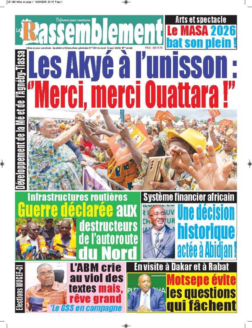 Côte d'Ivoire : les journaux du lundi 13 avril 2026 Lire les UNES ivoiriennes