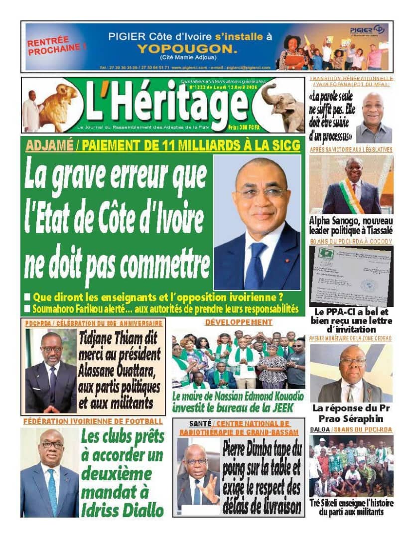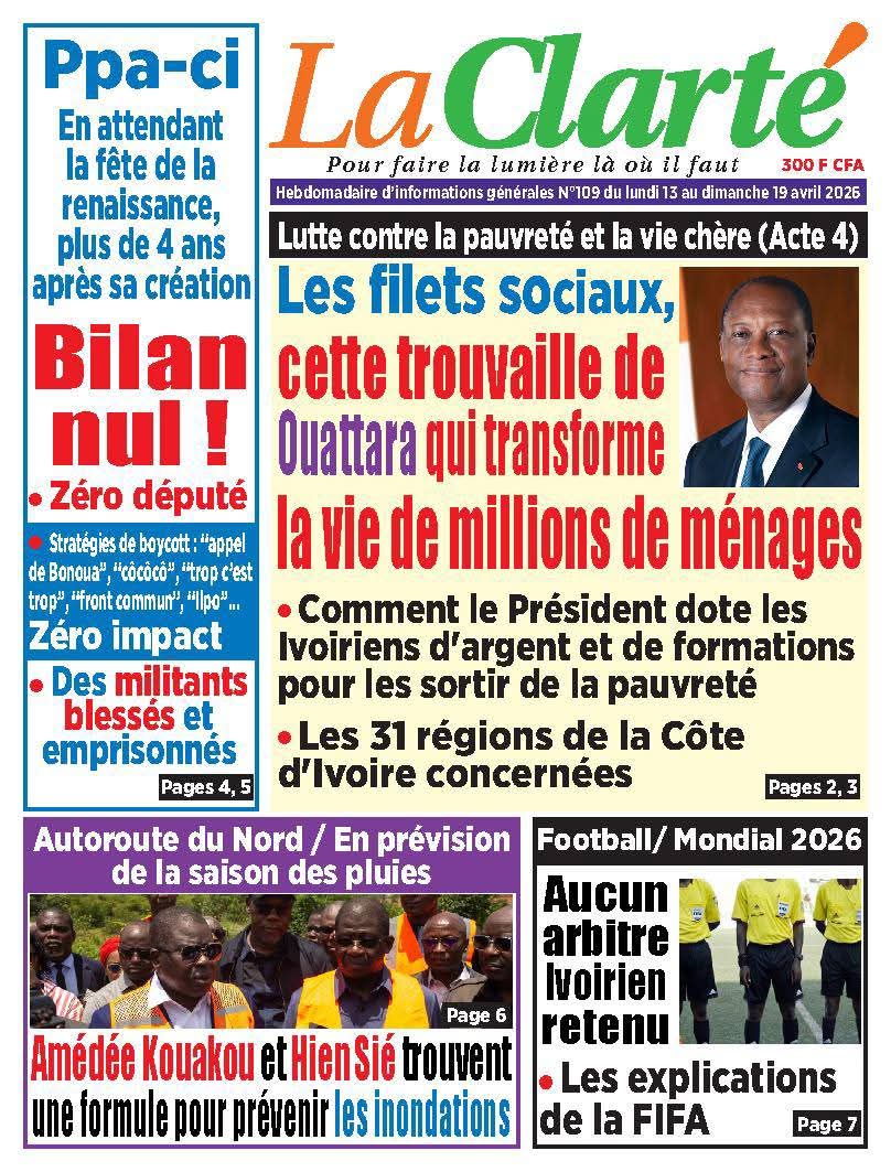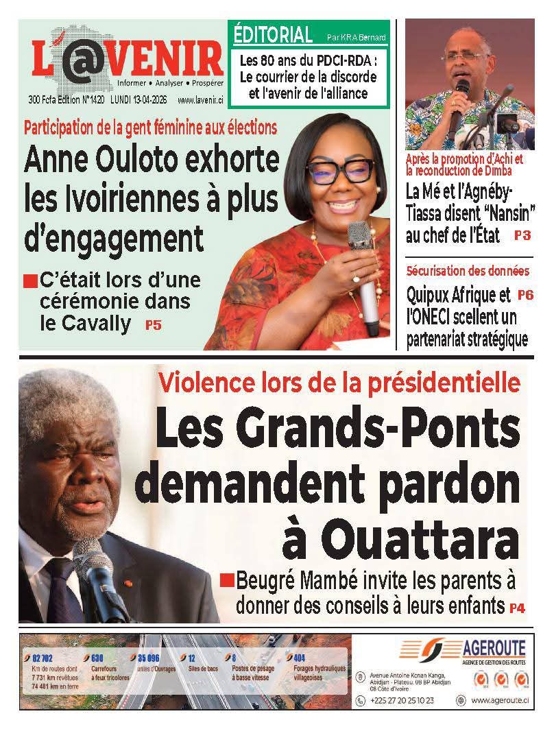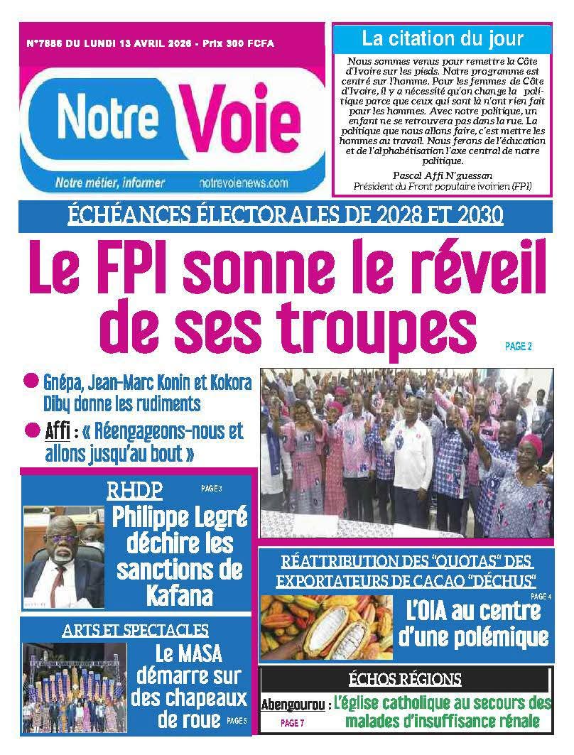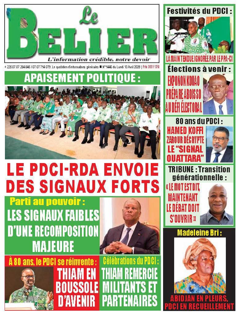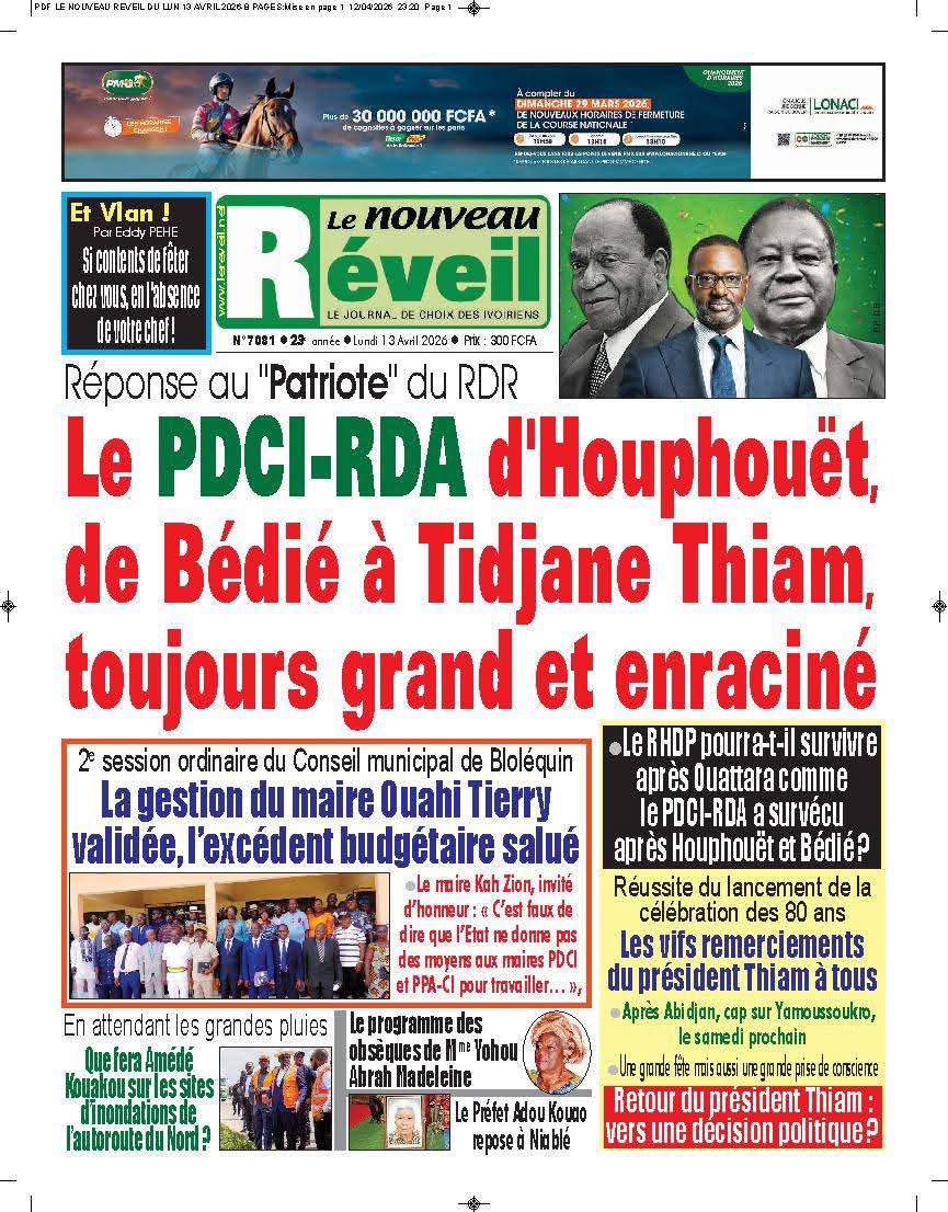 Côte d'Ivoire : les journaux du lundi 13 avril 2026 Lire les UNES ivoiriennes