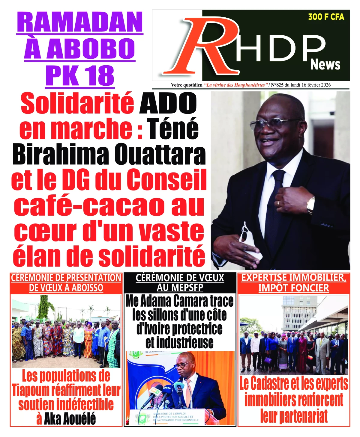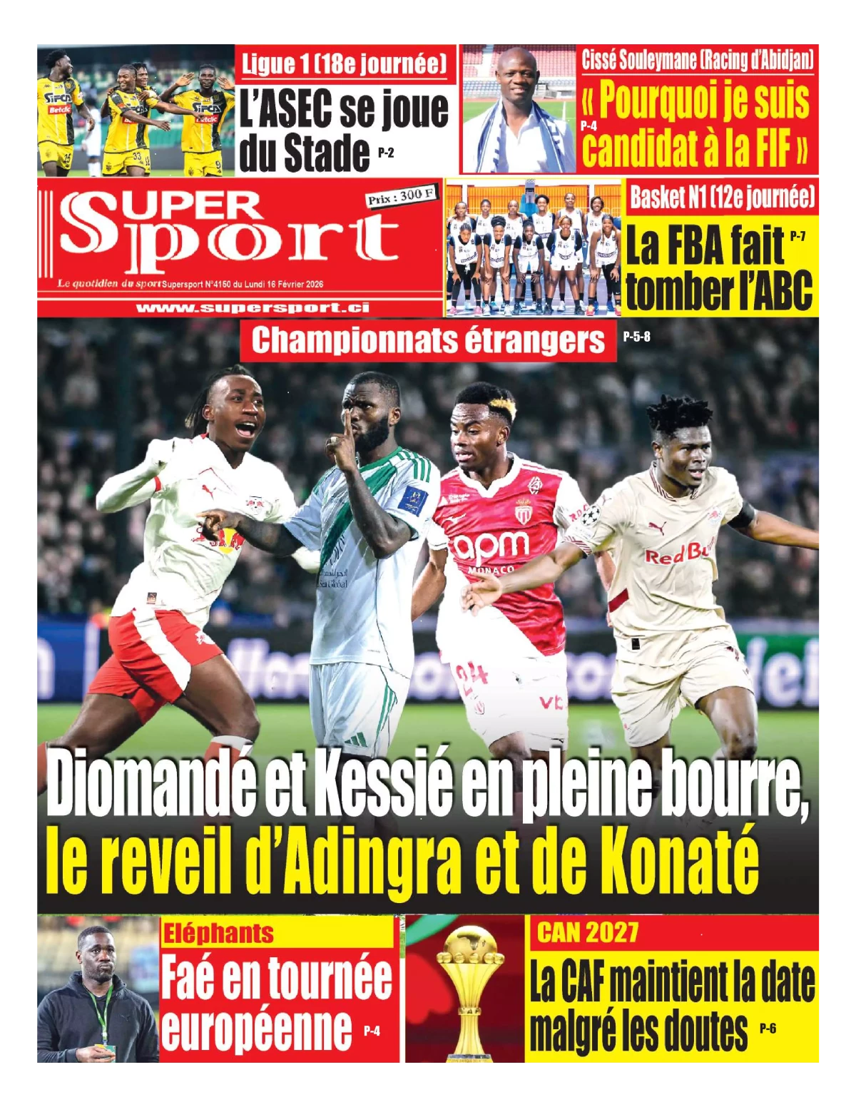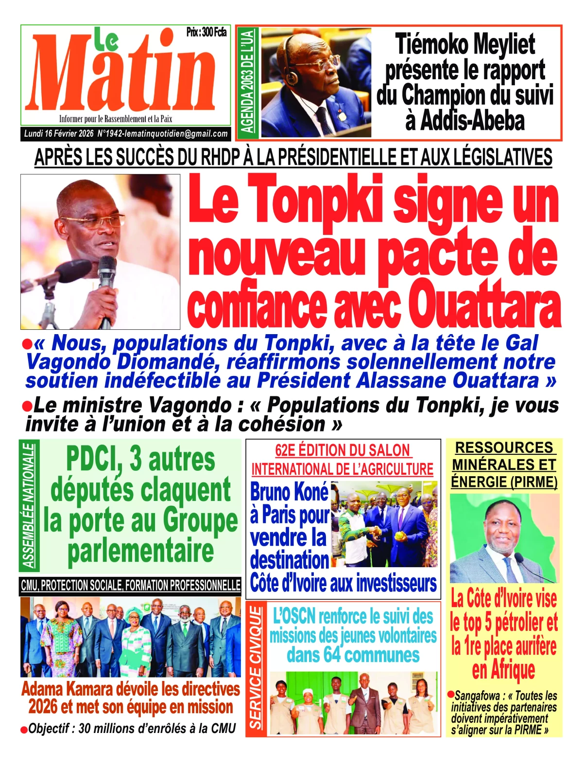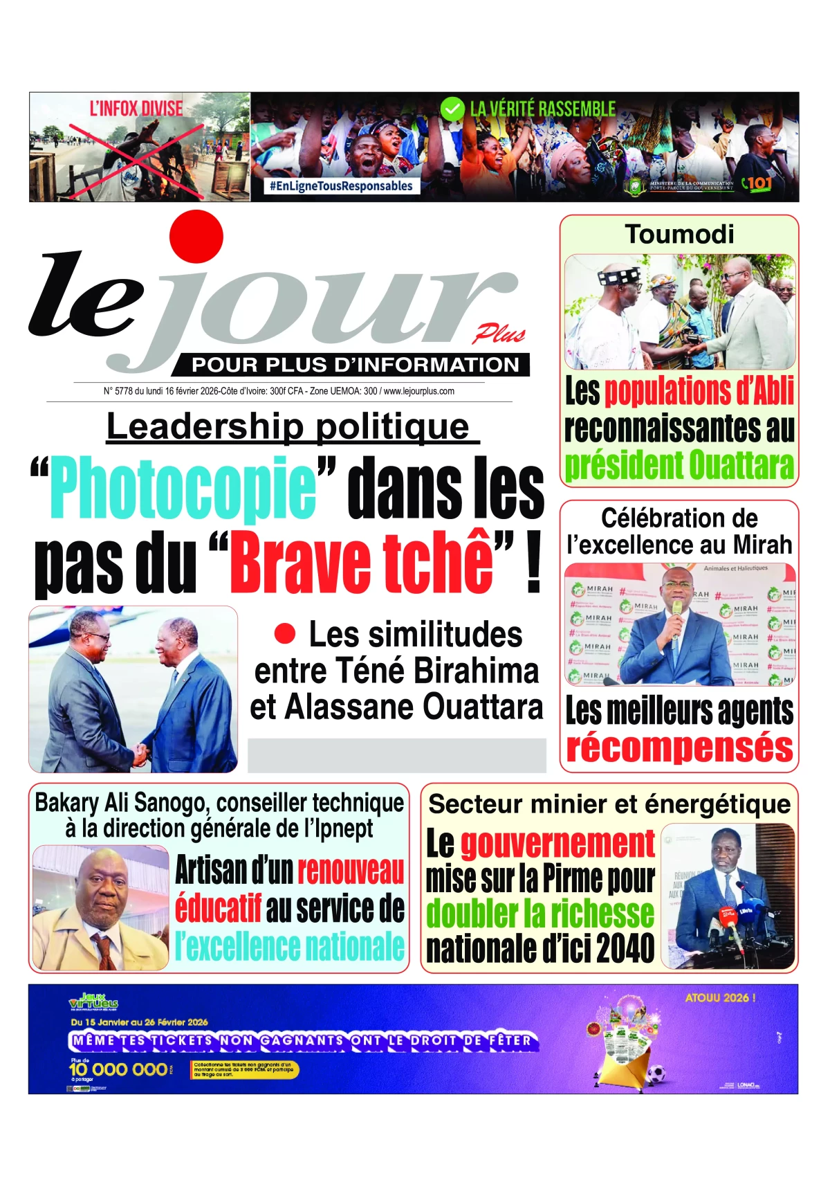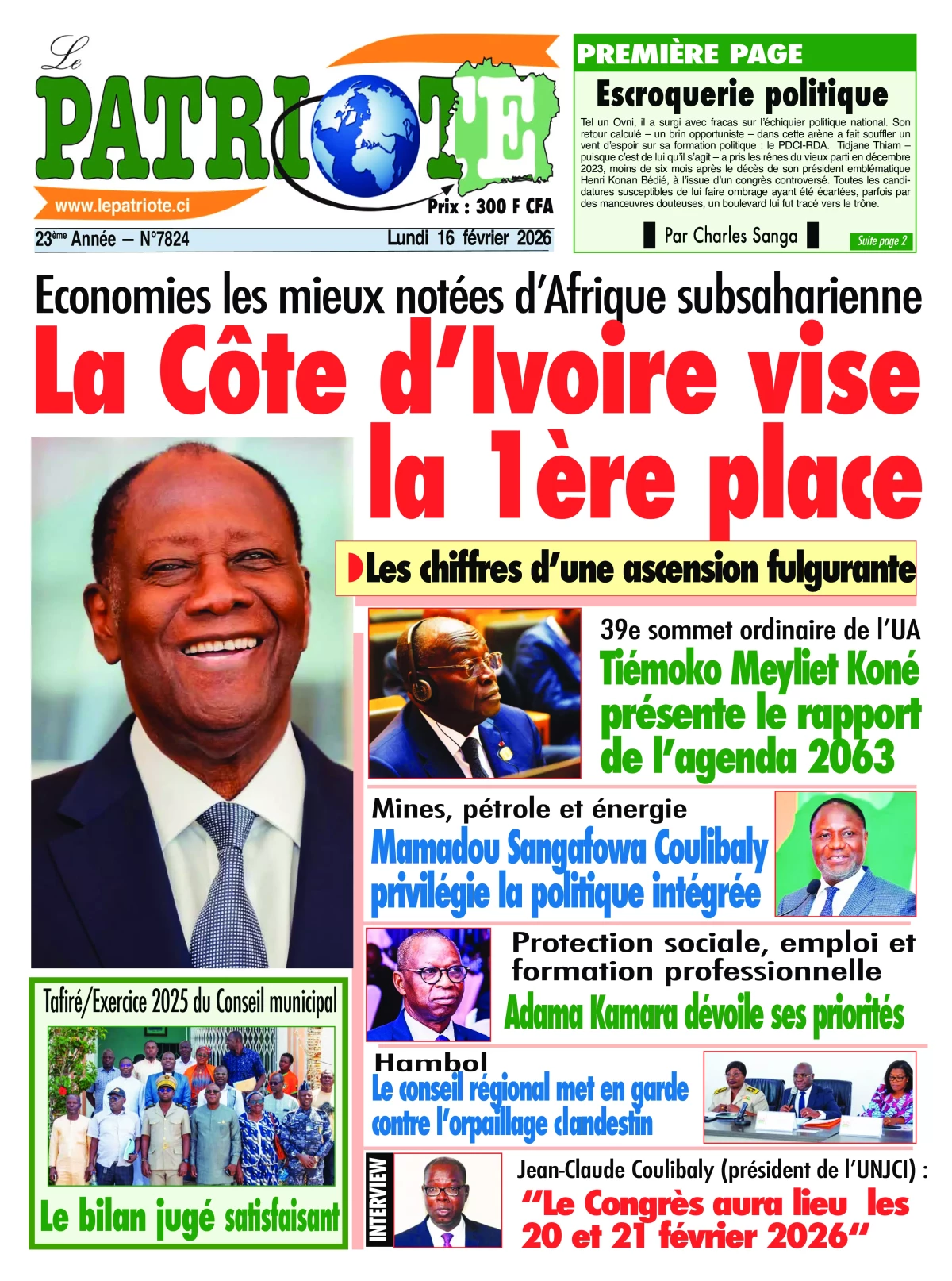 Côte d'Ivoire : les journaux du lundi 16 février 2026 Lire les UNES de Côte d'Ivoire