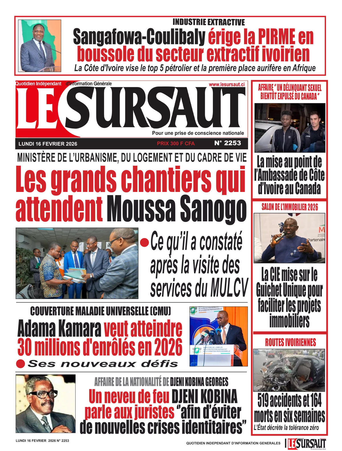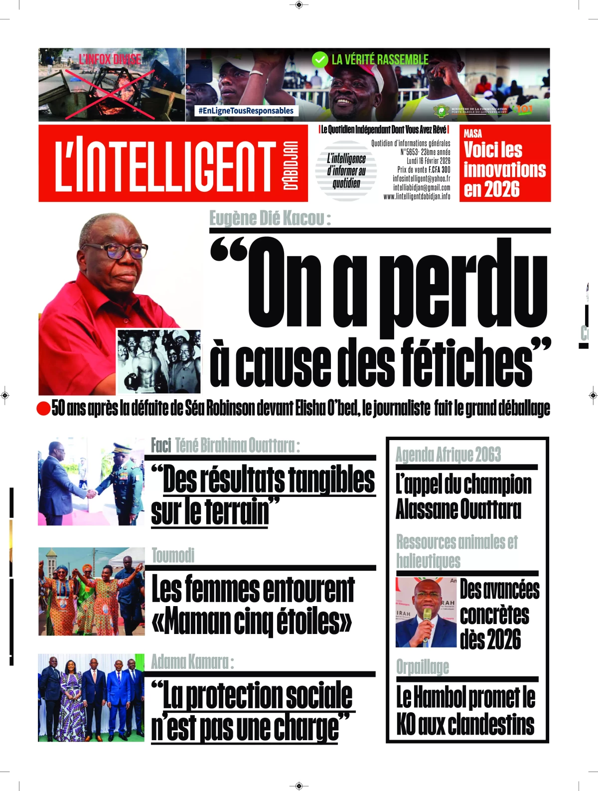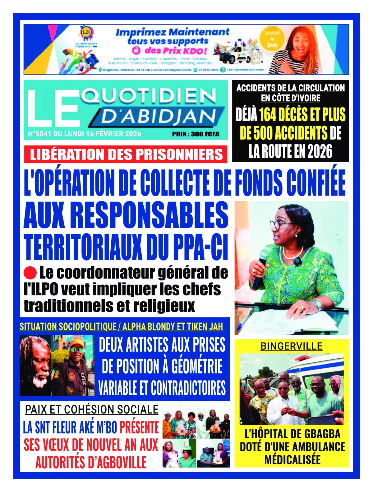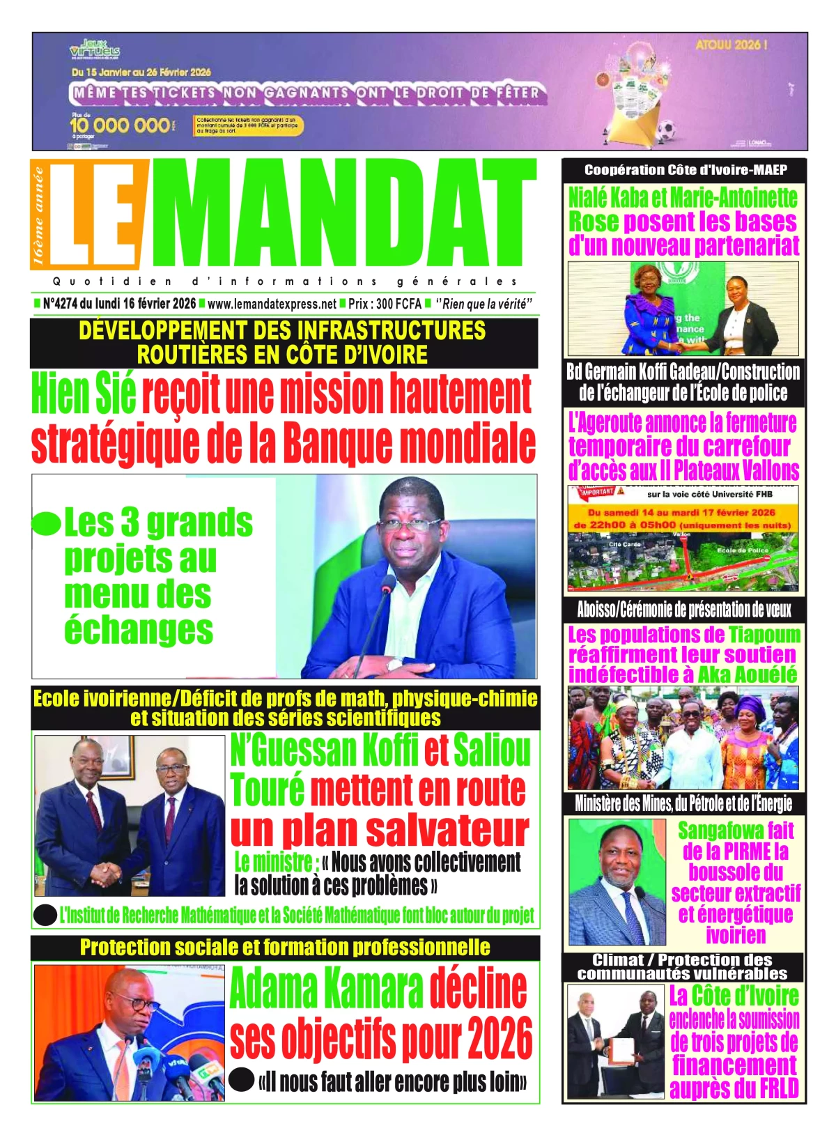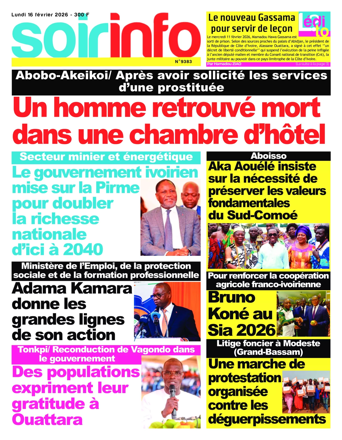 Côte d'Ivoire : les journaux du lundi 16 février 2026 Lire les UNES de Côte d'Ivoire