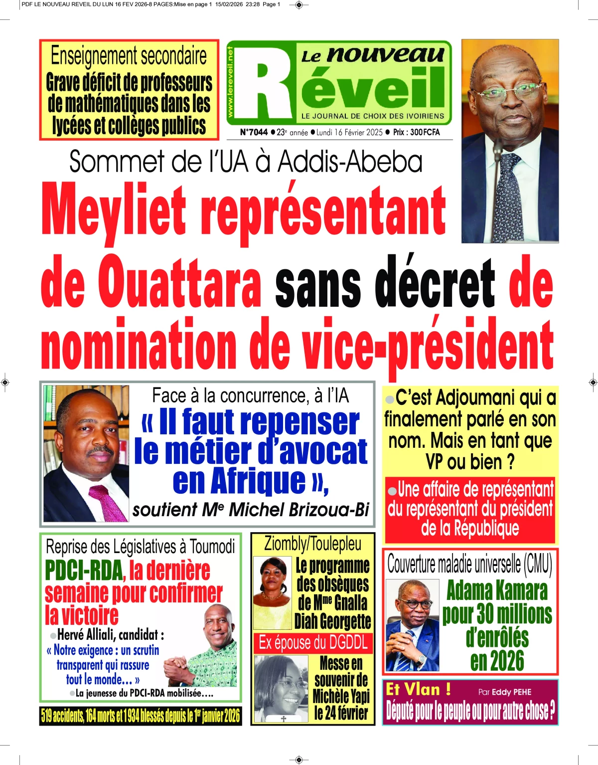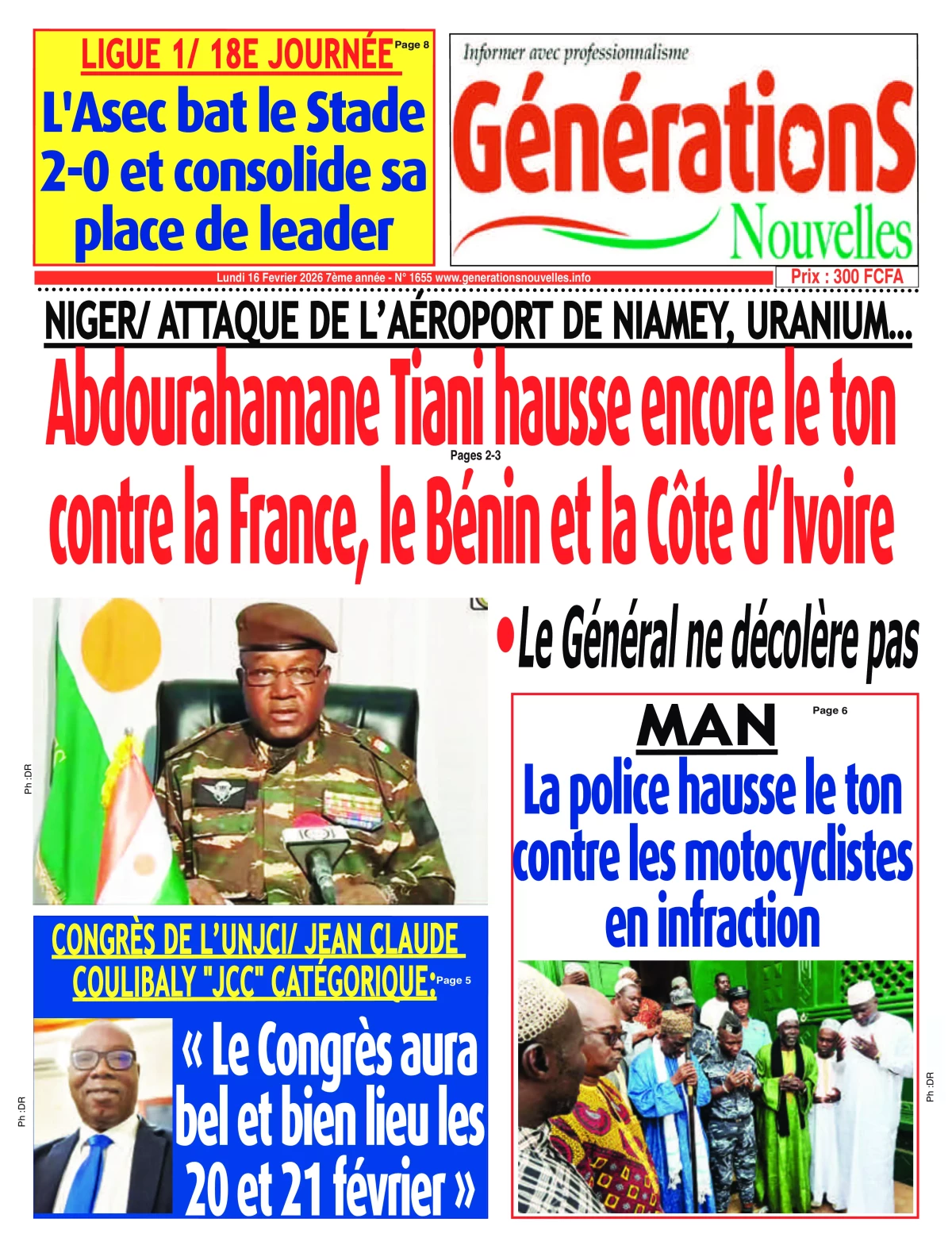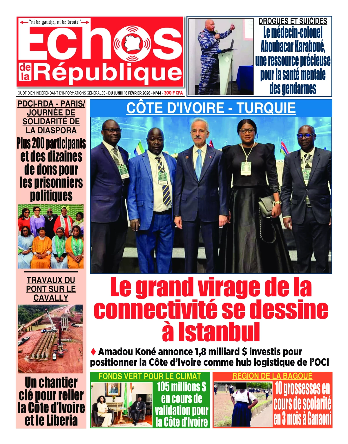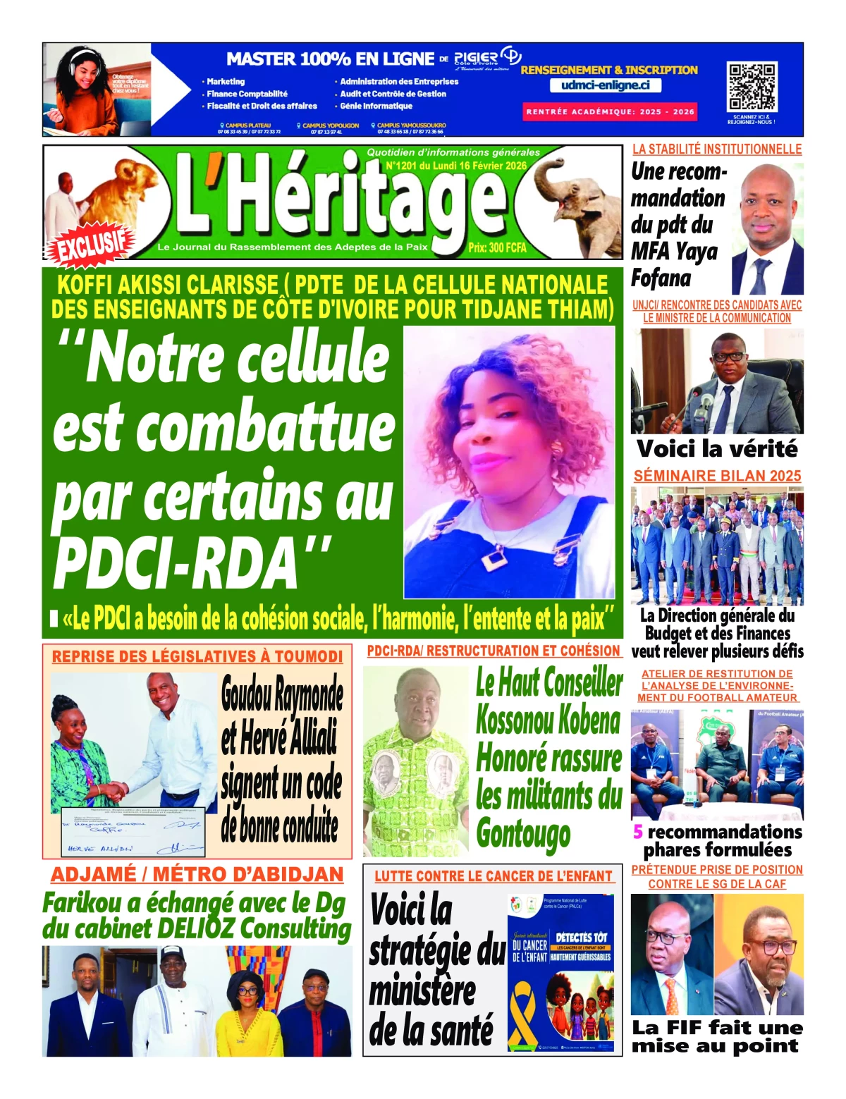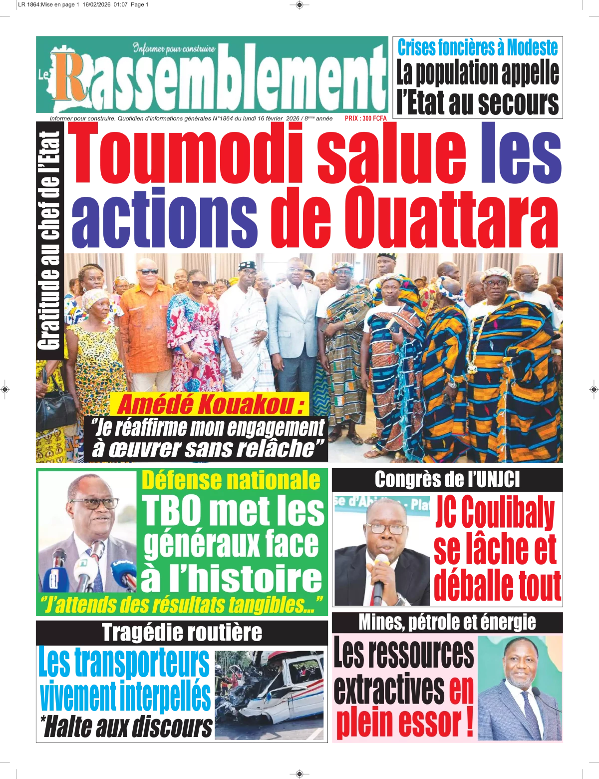 Côte d'Ivoire : les journaux du lundi 16 février 2026 Lire les UNES de Côte d'Ivoire