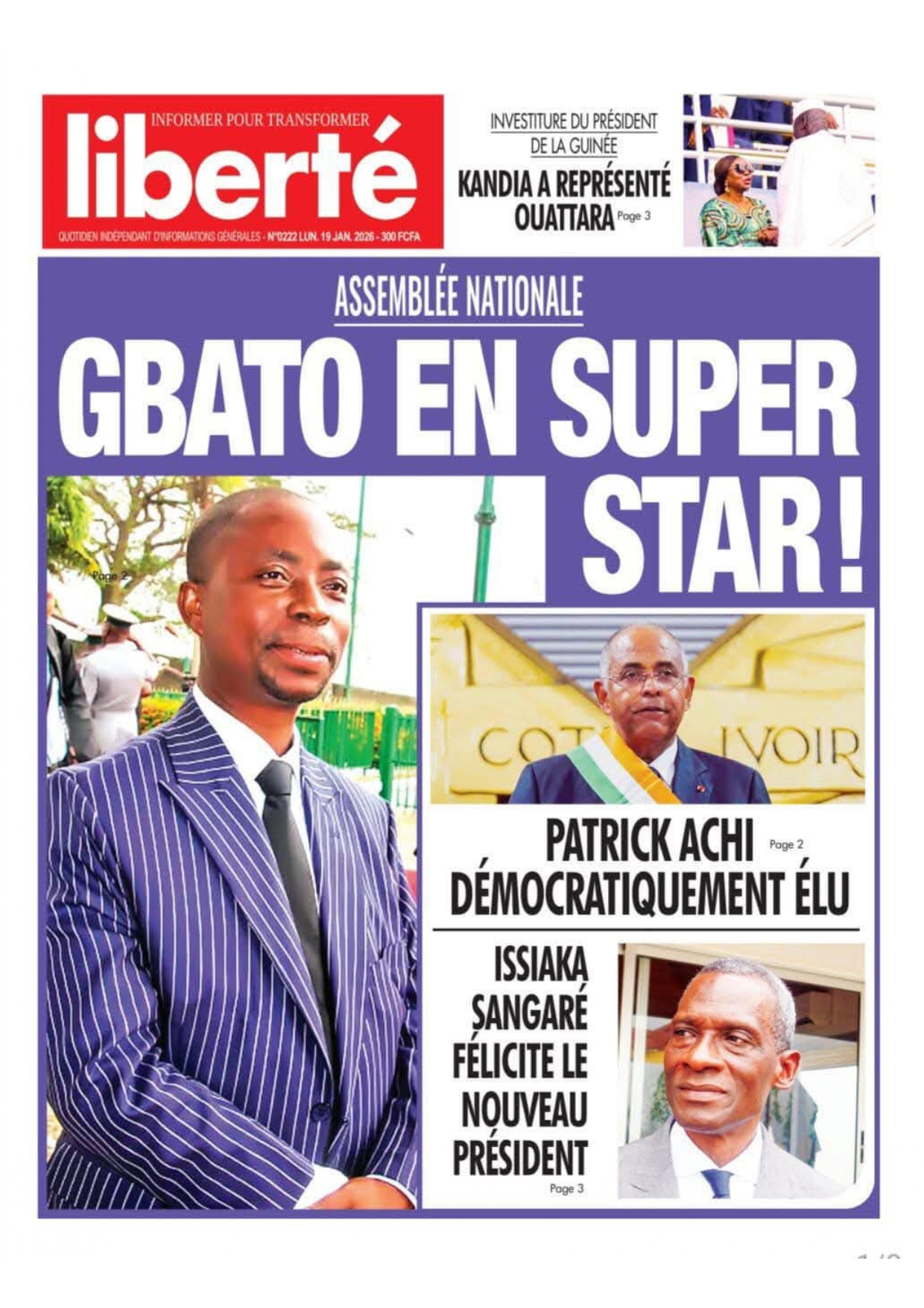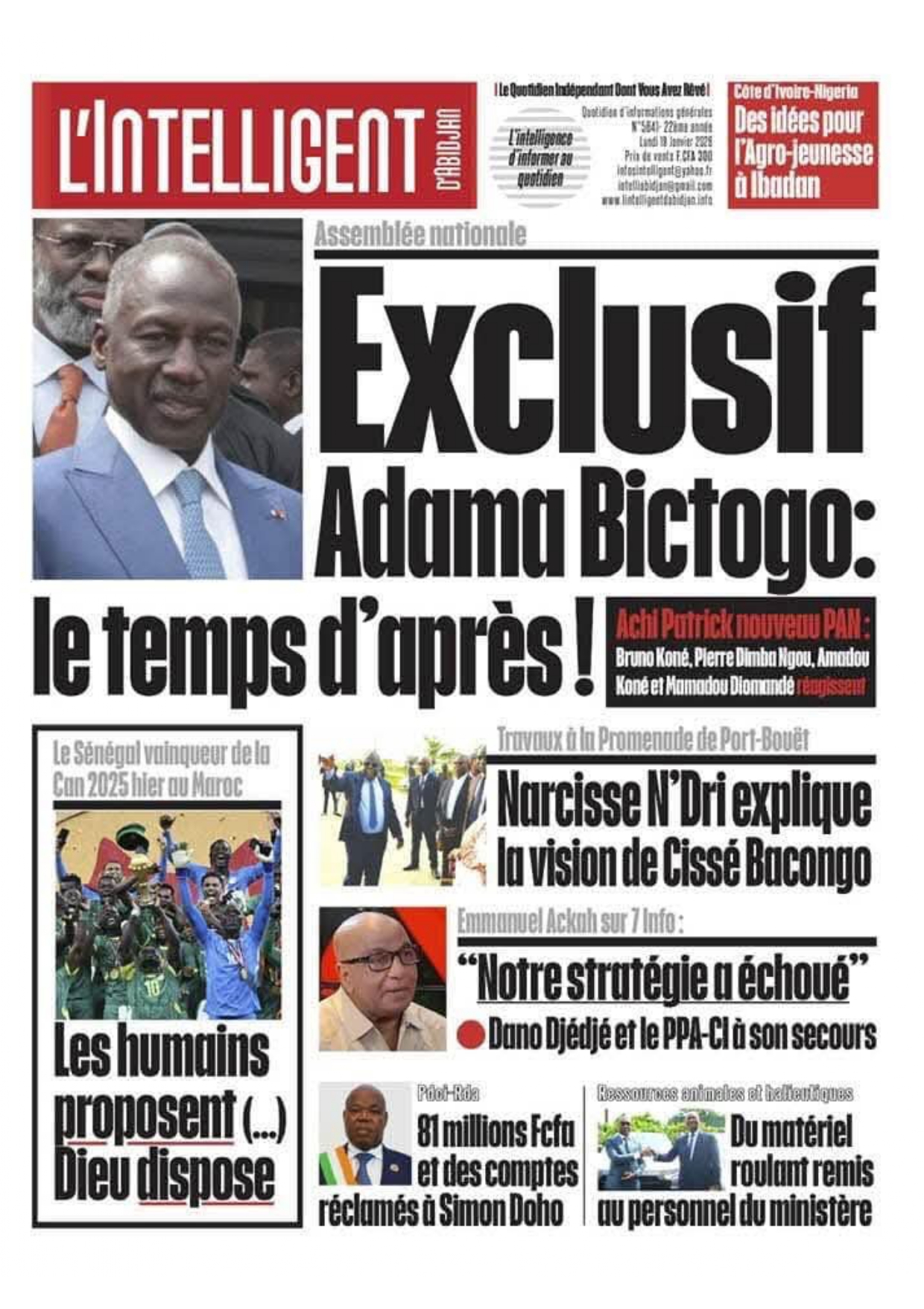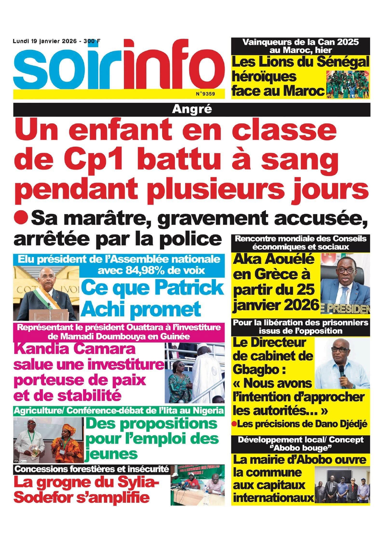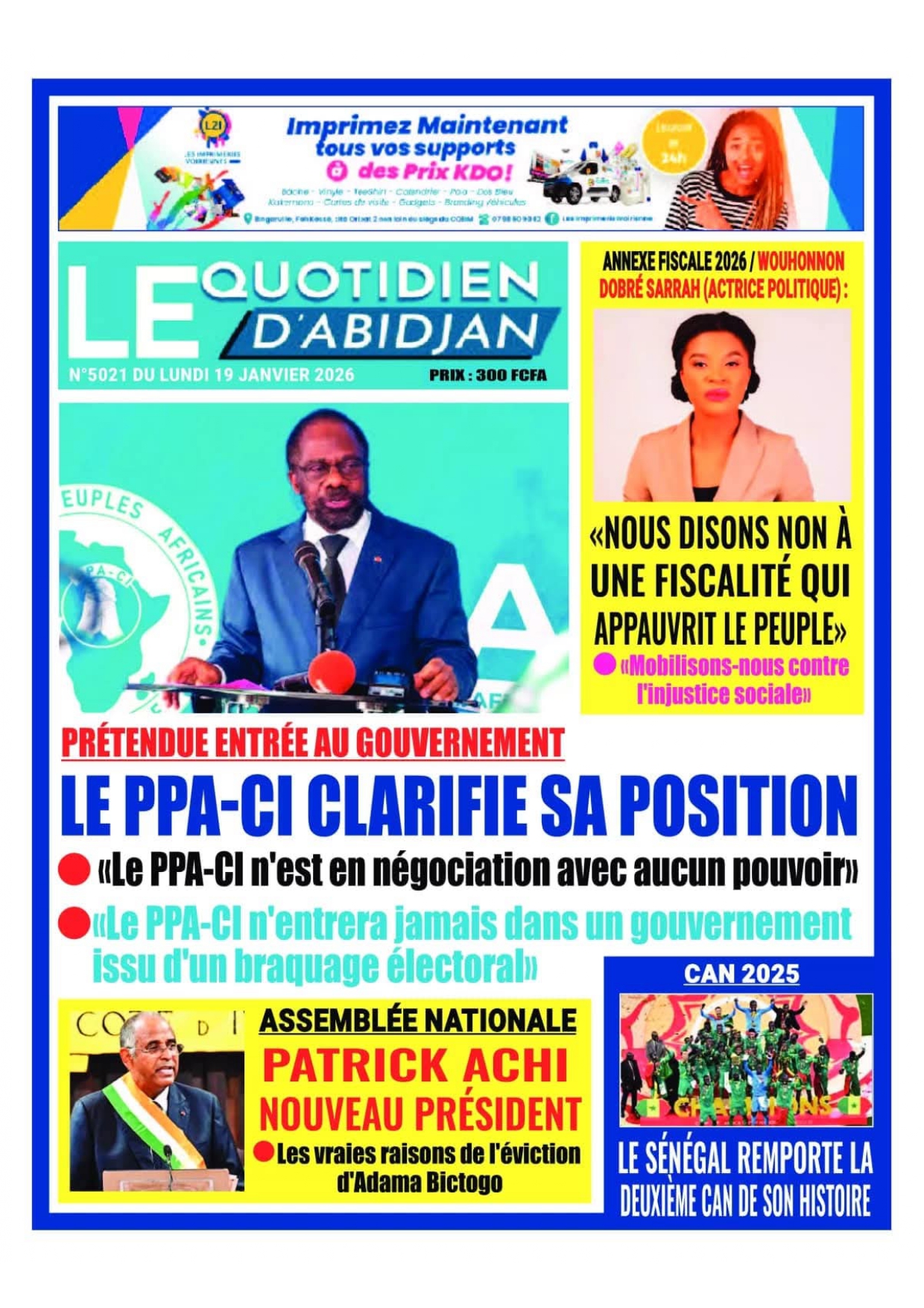 Photos. Les journaux de Côte d’Ivoire du lundi 19 janvier 2026